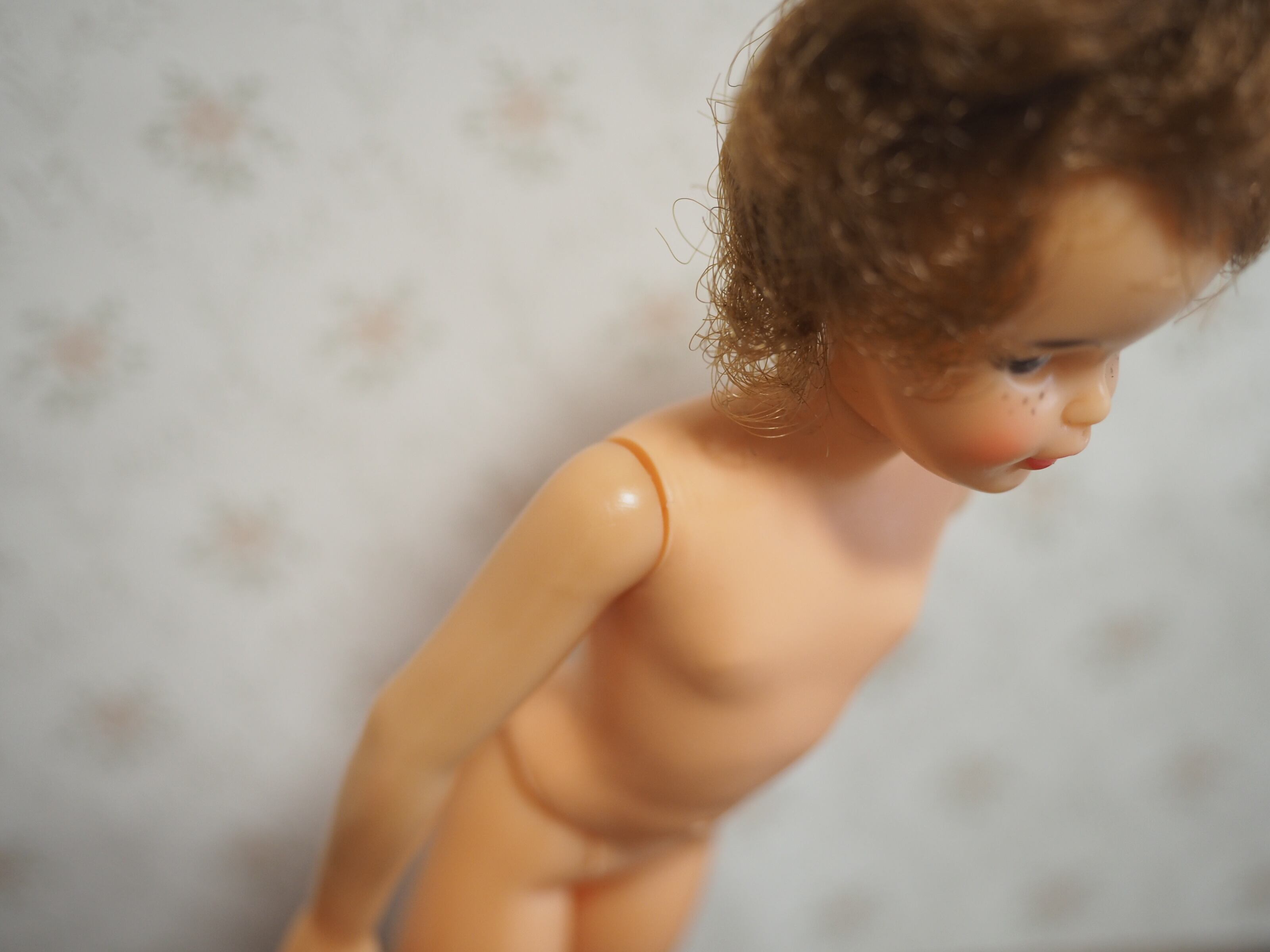 ボディは50年以上前のお人形とは思えないほどきれいです。関節緩みなく、両腕・両脚が連動します。
