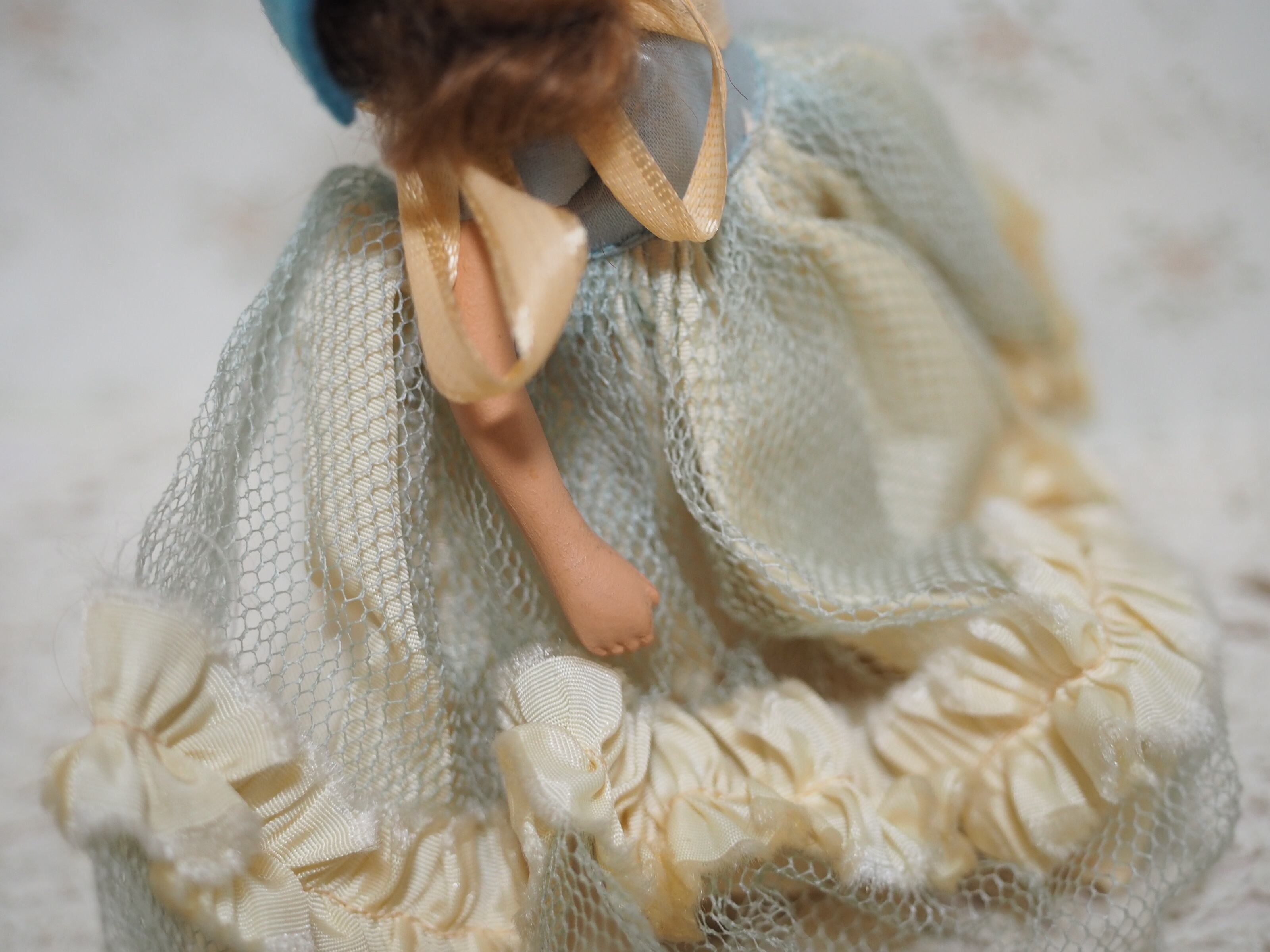 こちらのナンシーアンはドレスが安全ピンで留められており、スナップボタンの子よりも古いタイプです。