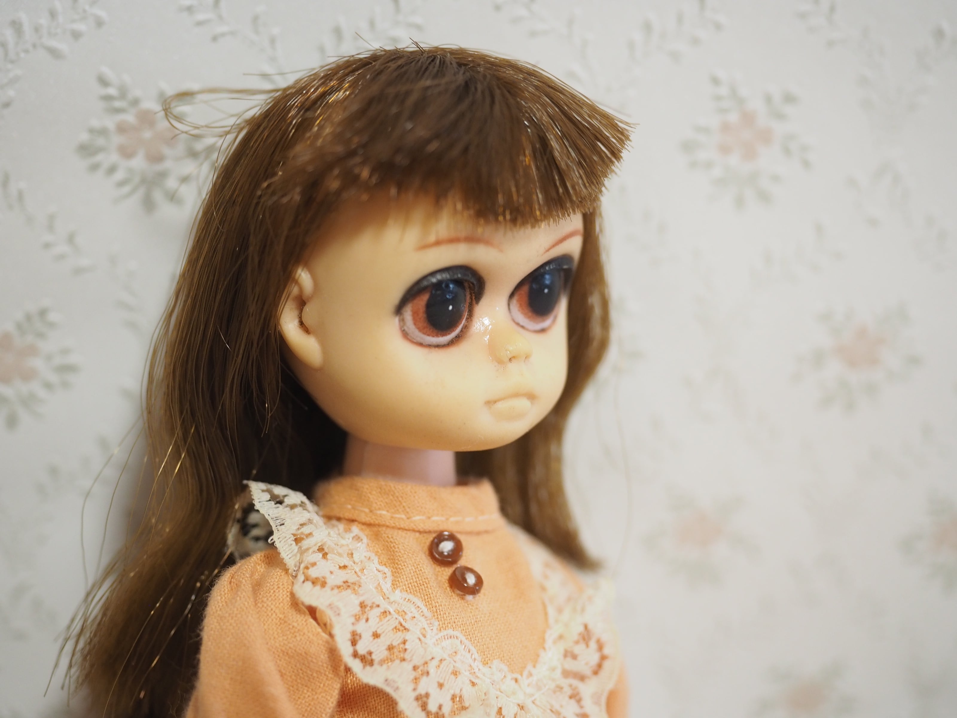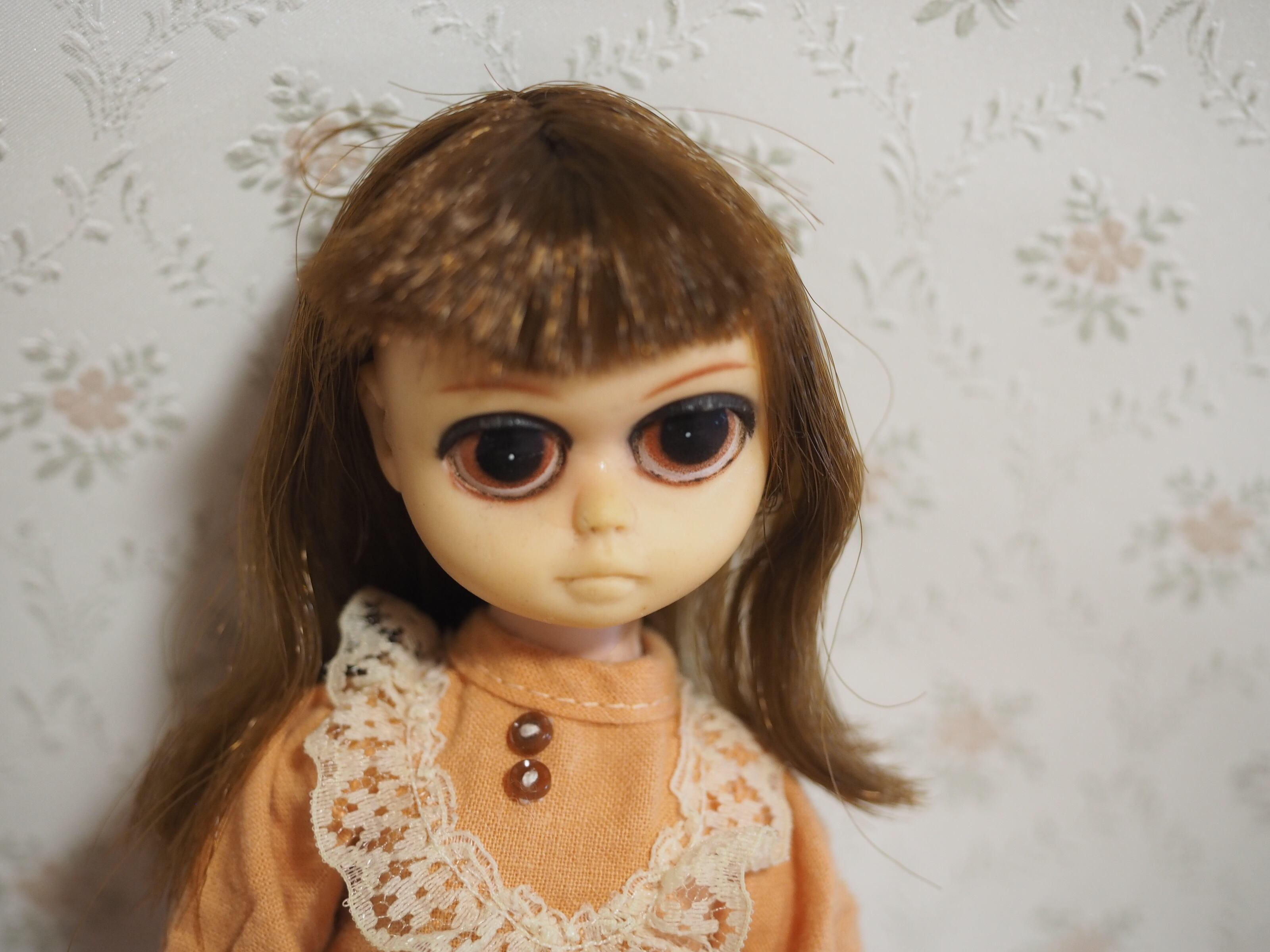 悲しい目をしたお人形といわれますが、とても印象的な瞳のお人形です。