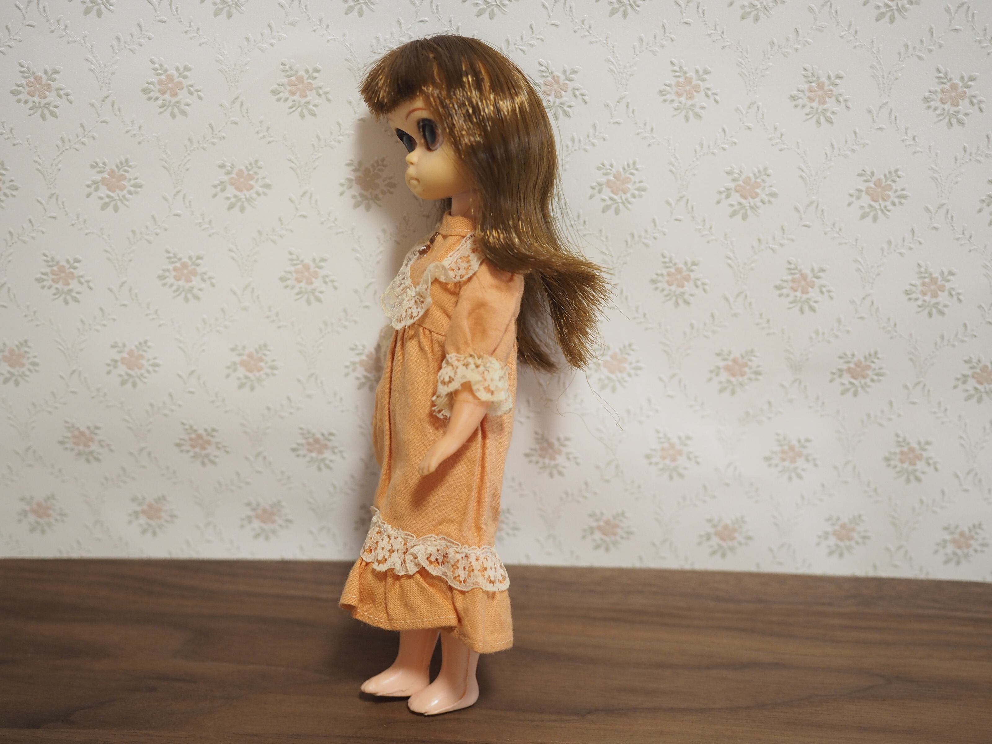 スージーにお似合いのワンピースも50年ほど前のもので、縫い目取れ、スナップの金属変質がありおまけとお考えください。