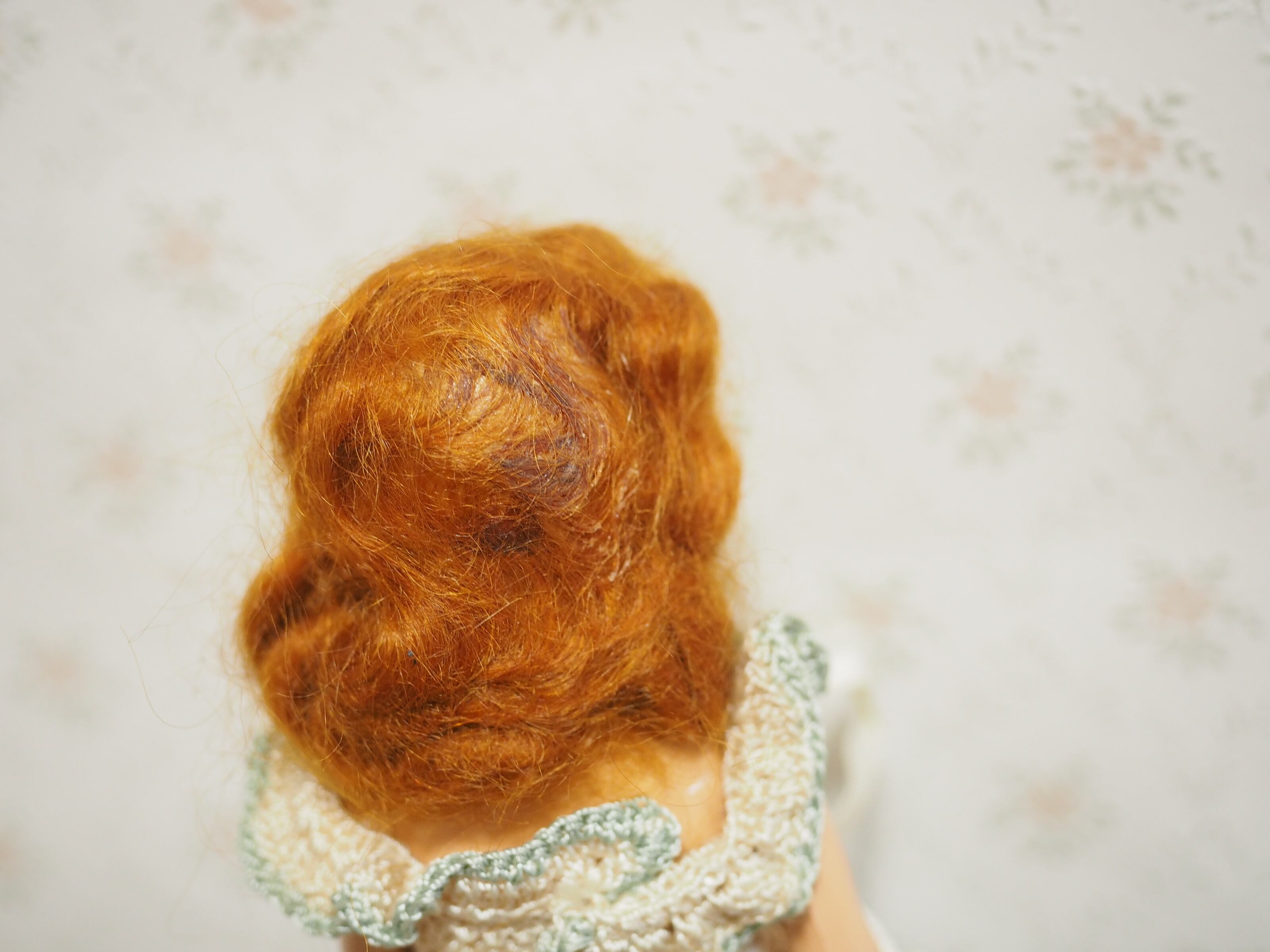 ヘアはモヘアで接着されています。後ろ側が薄くなって地肌の透けがございます。