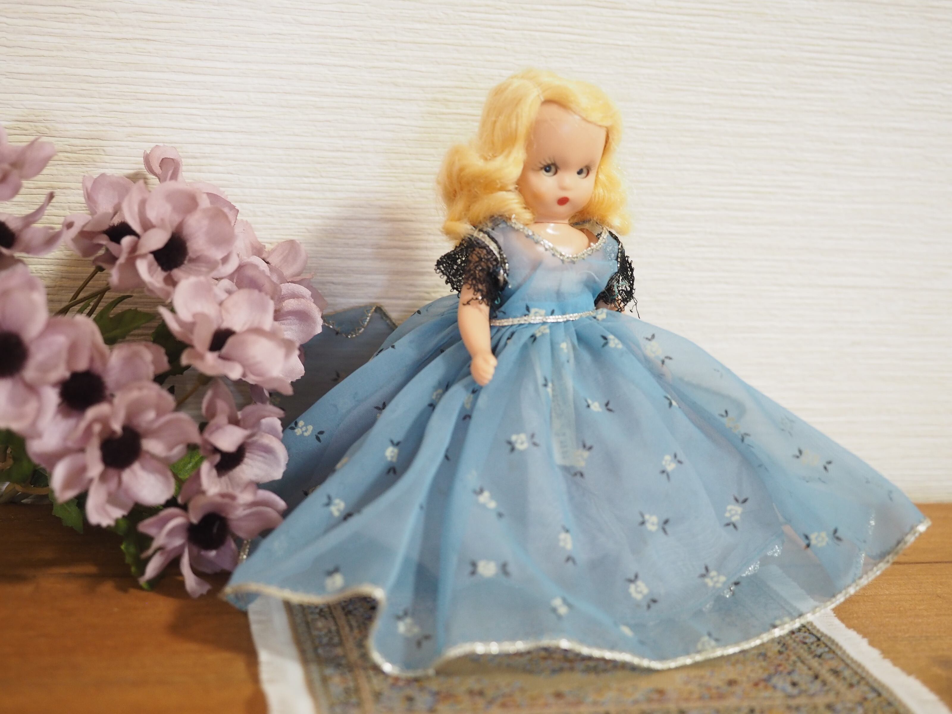 ナンシー・アン 「ストーリーブックドール」プラスティック ブルー花柄黒レース
