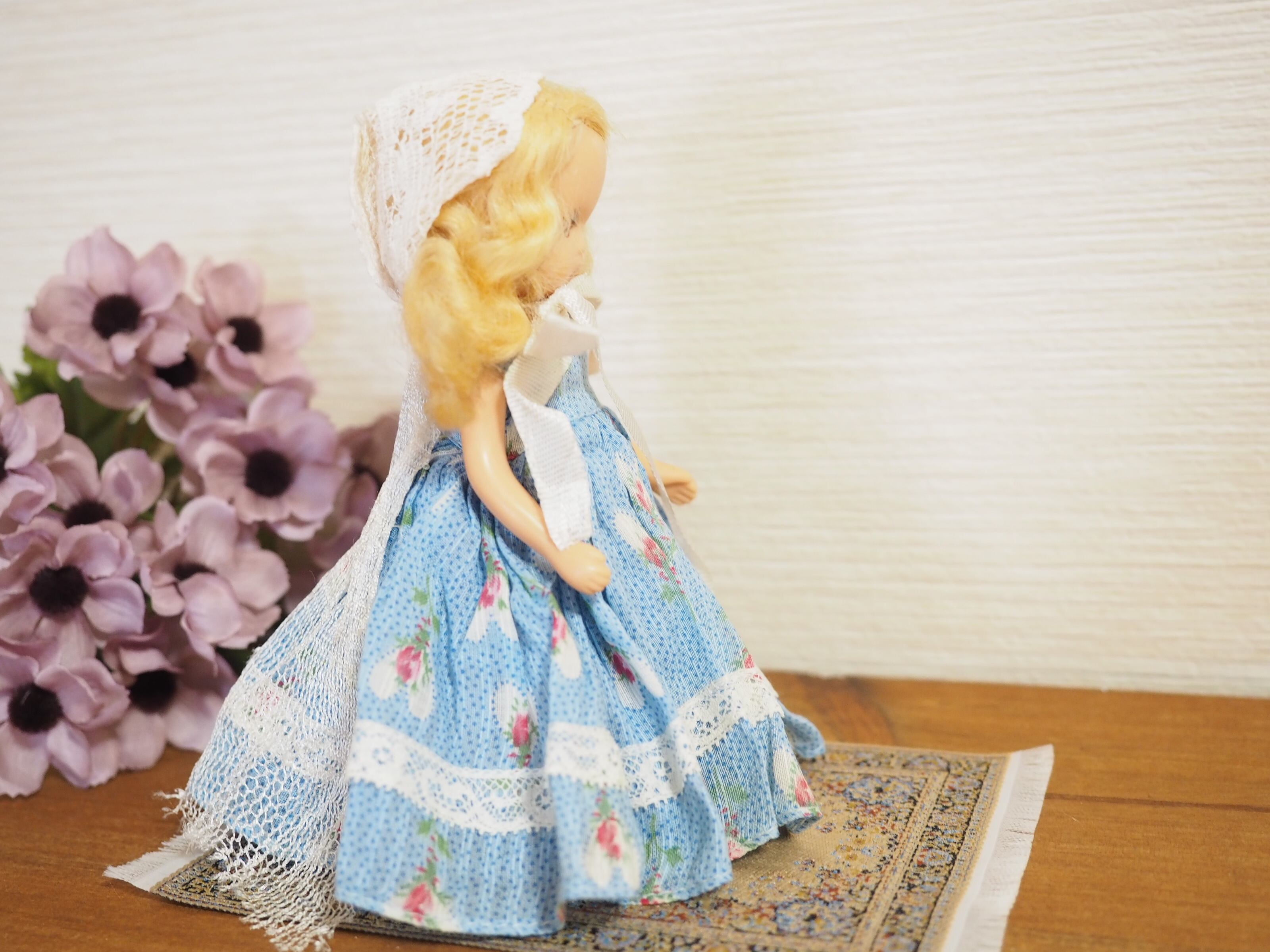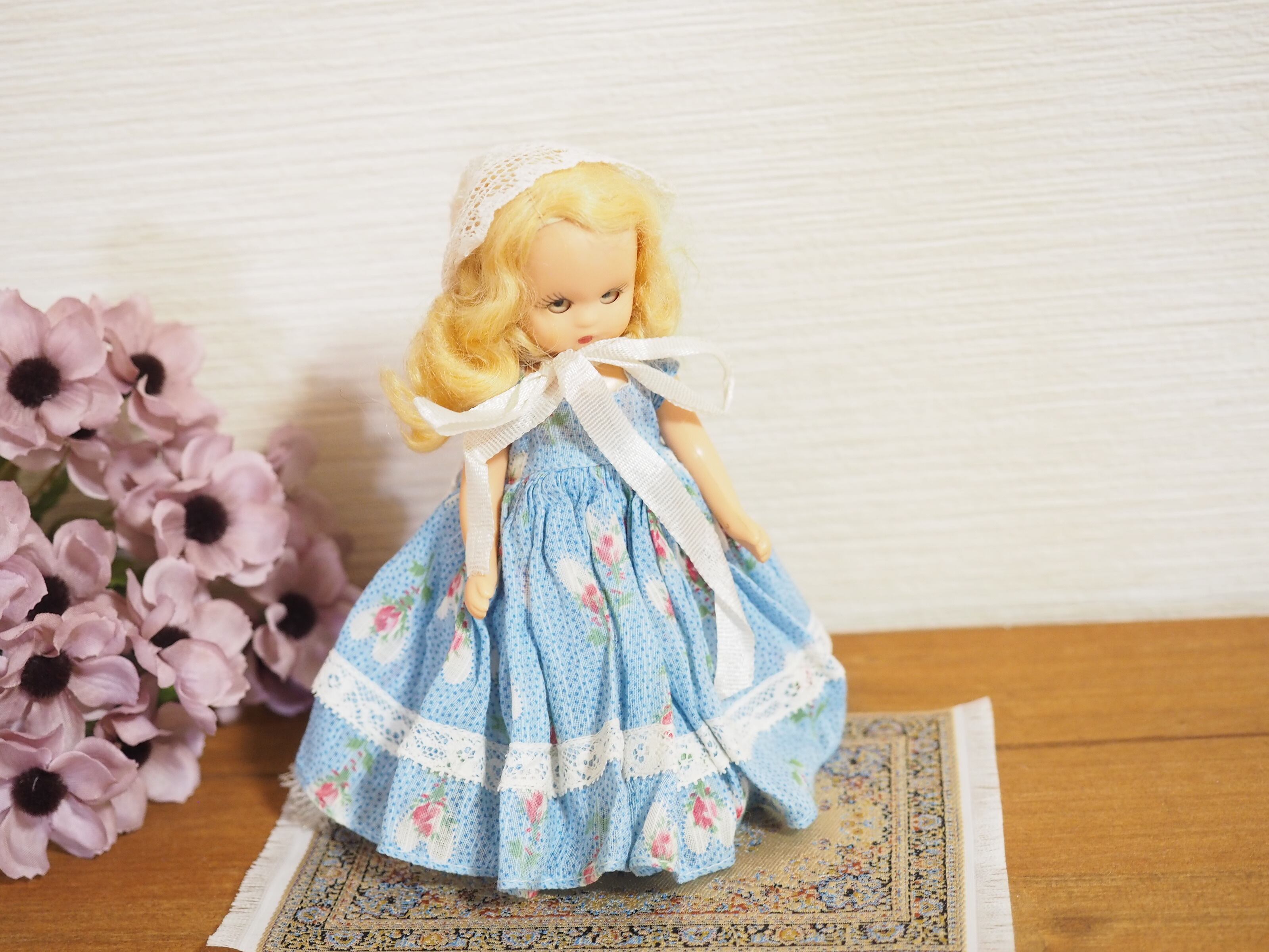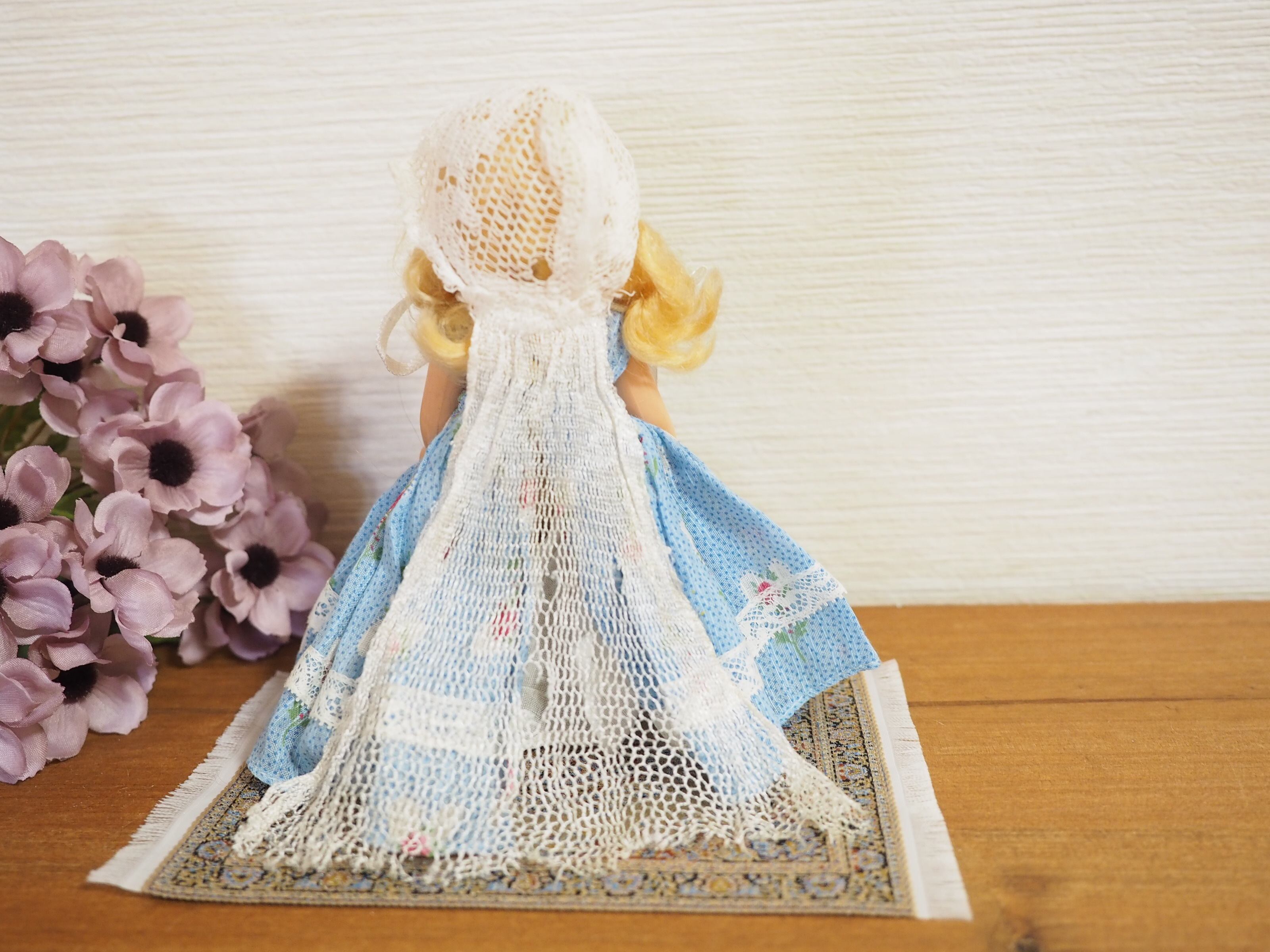 ナンシー・アン 「ストーリーブックドール」プラスティック ブルー花柄レース頭巾