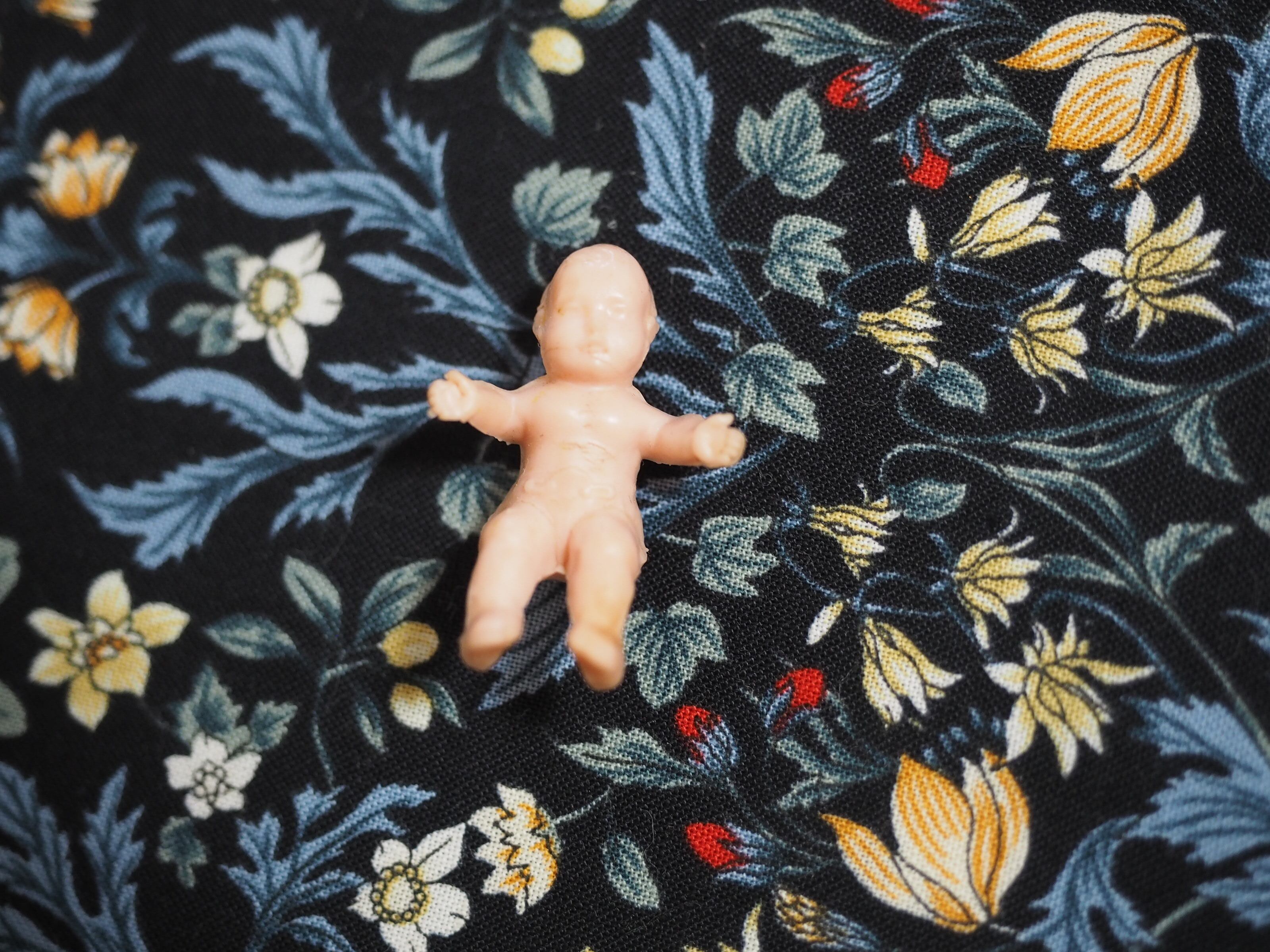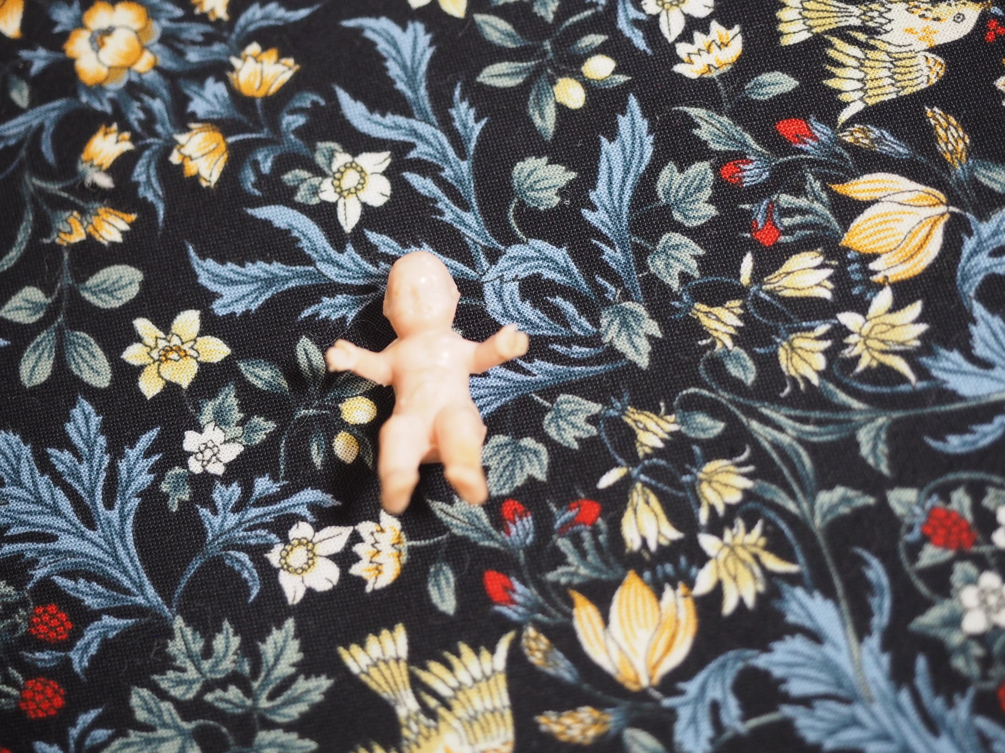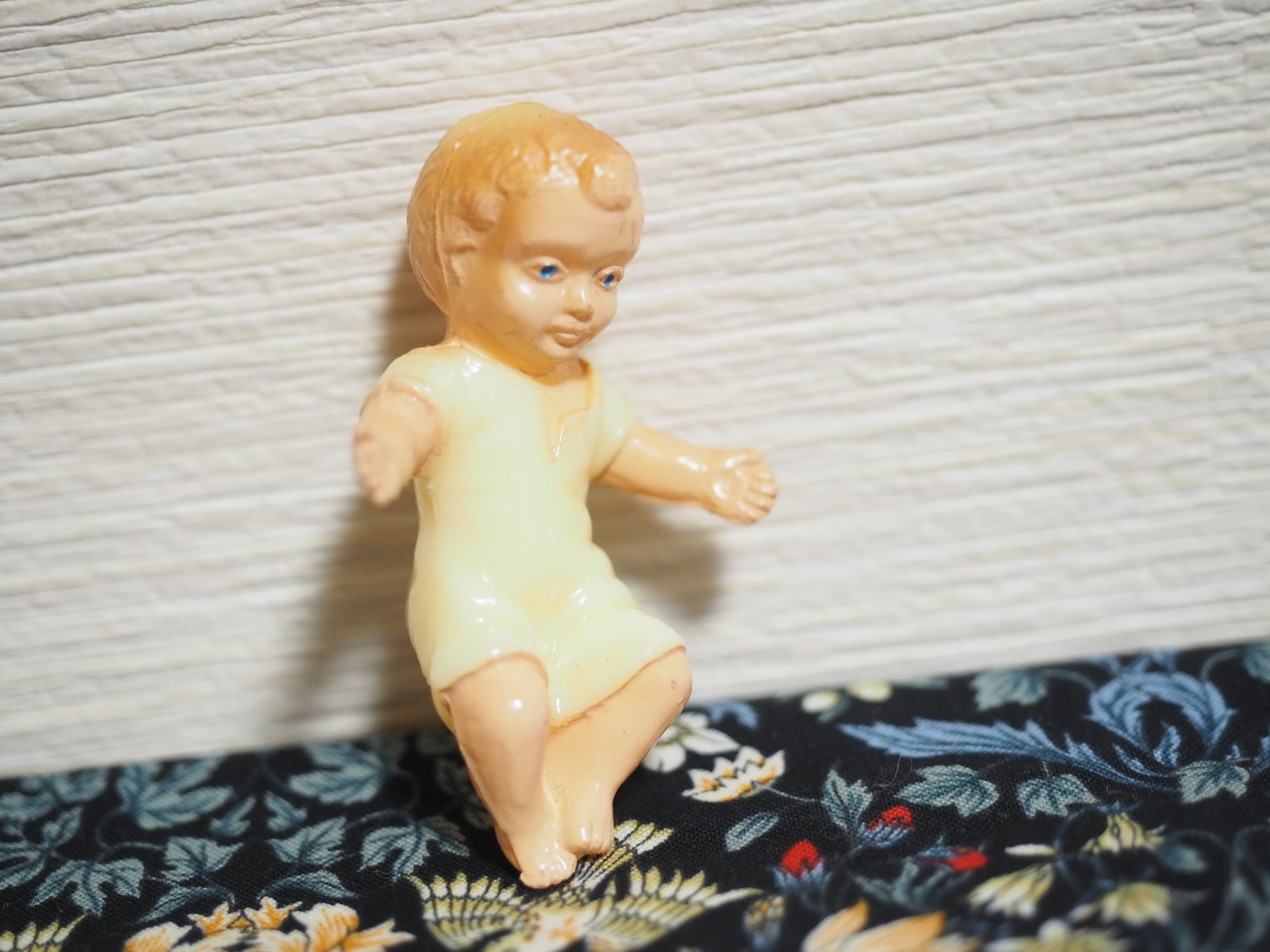ゴムの小さなベビードールも見えにくいのですがお顔の表情があります。お顔に細い線、お腹と脚付け根にゴムのひび割れがございます。