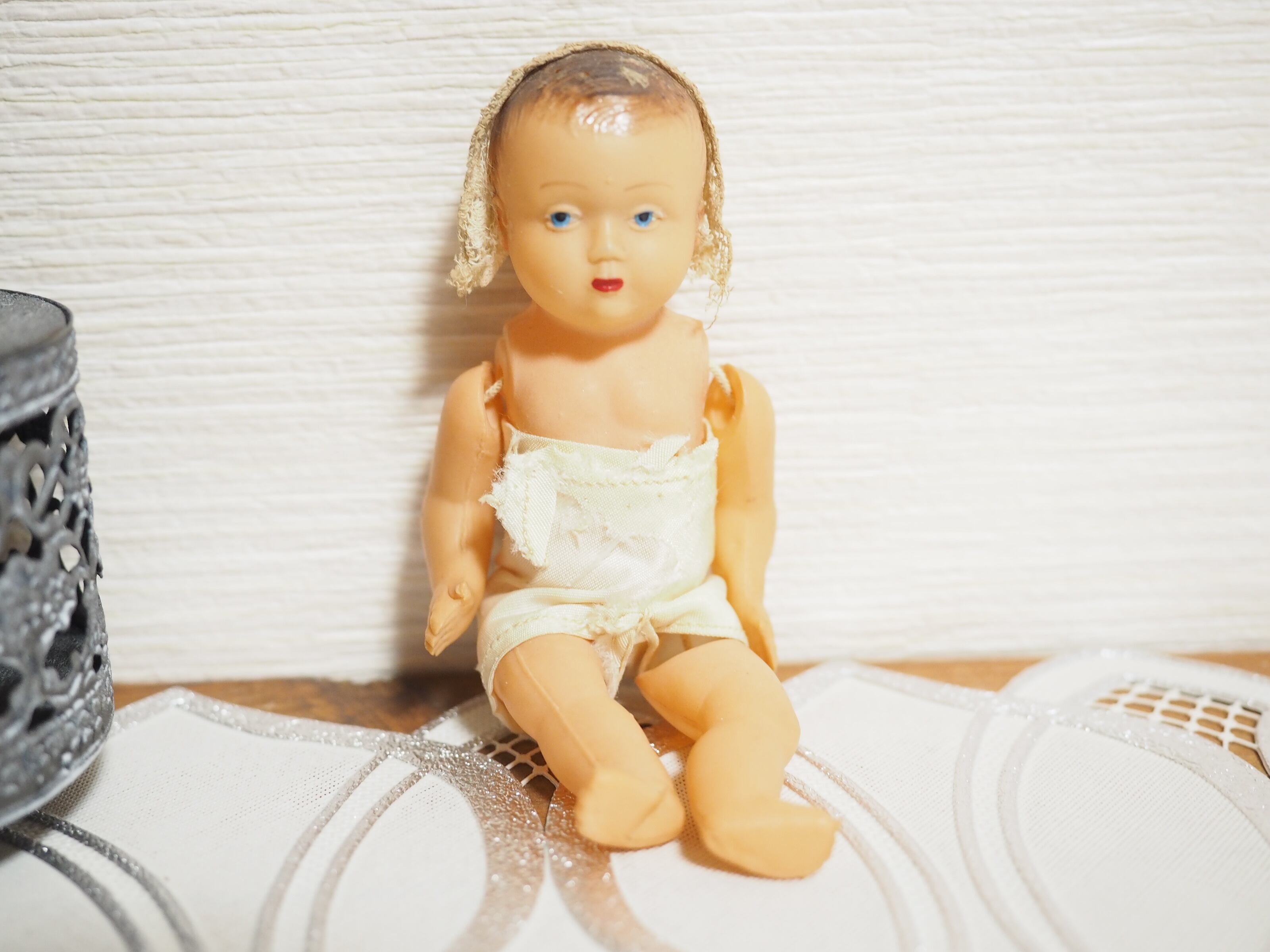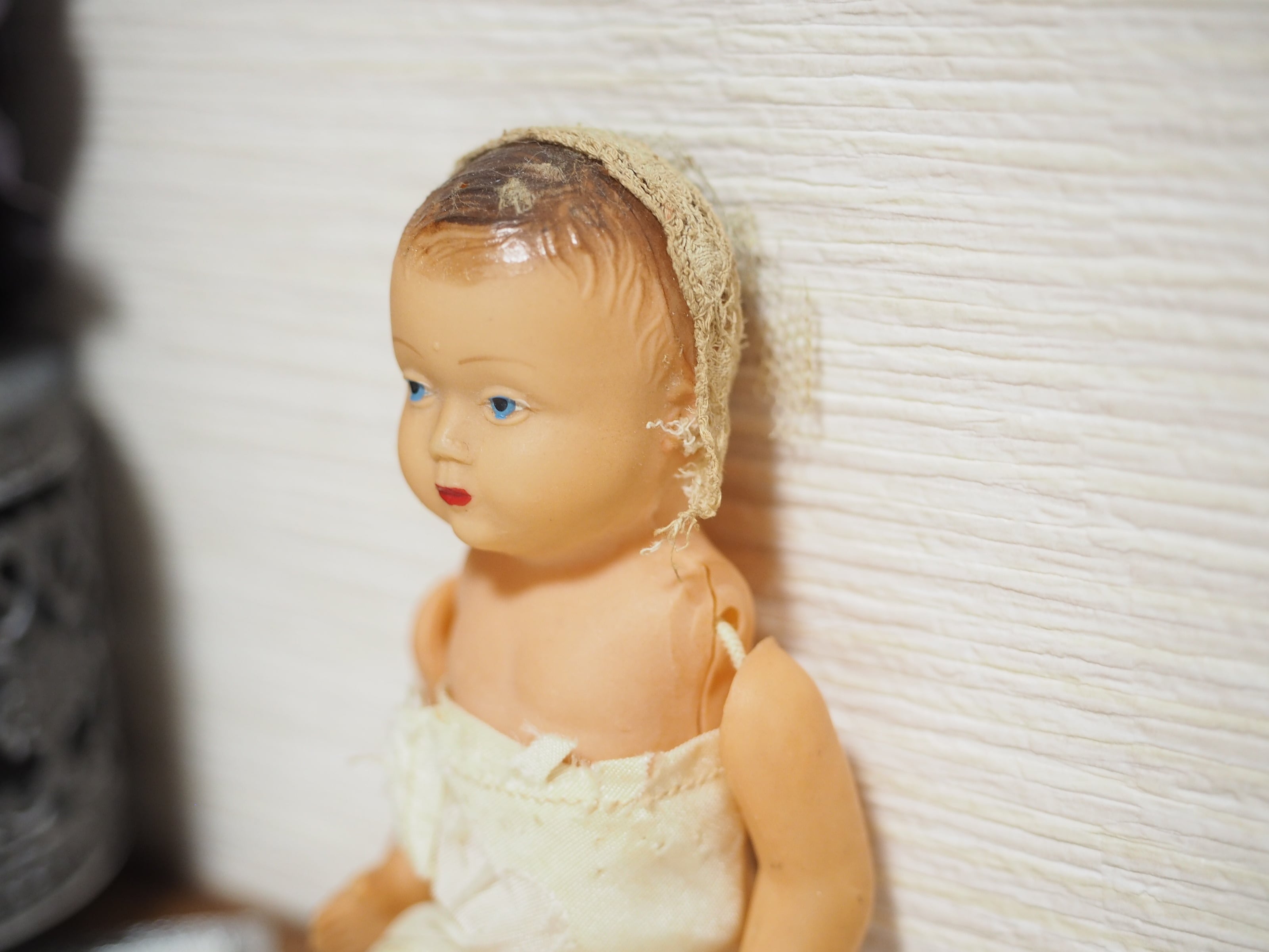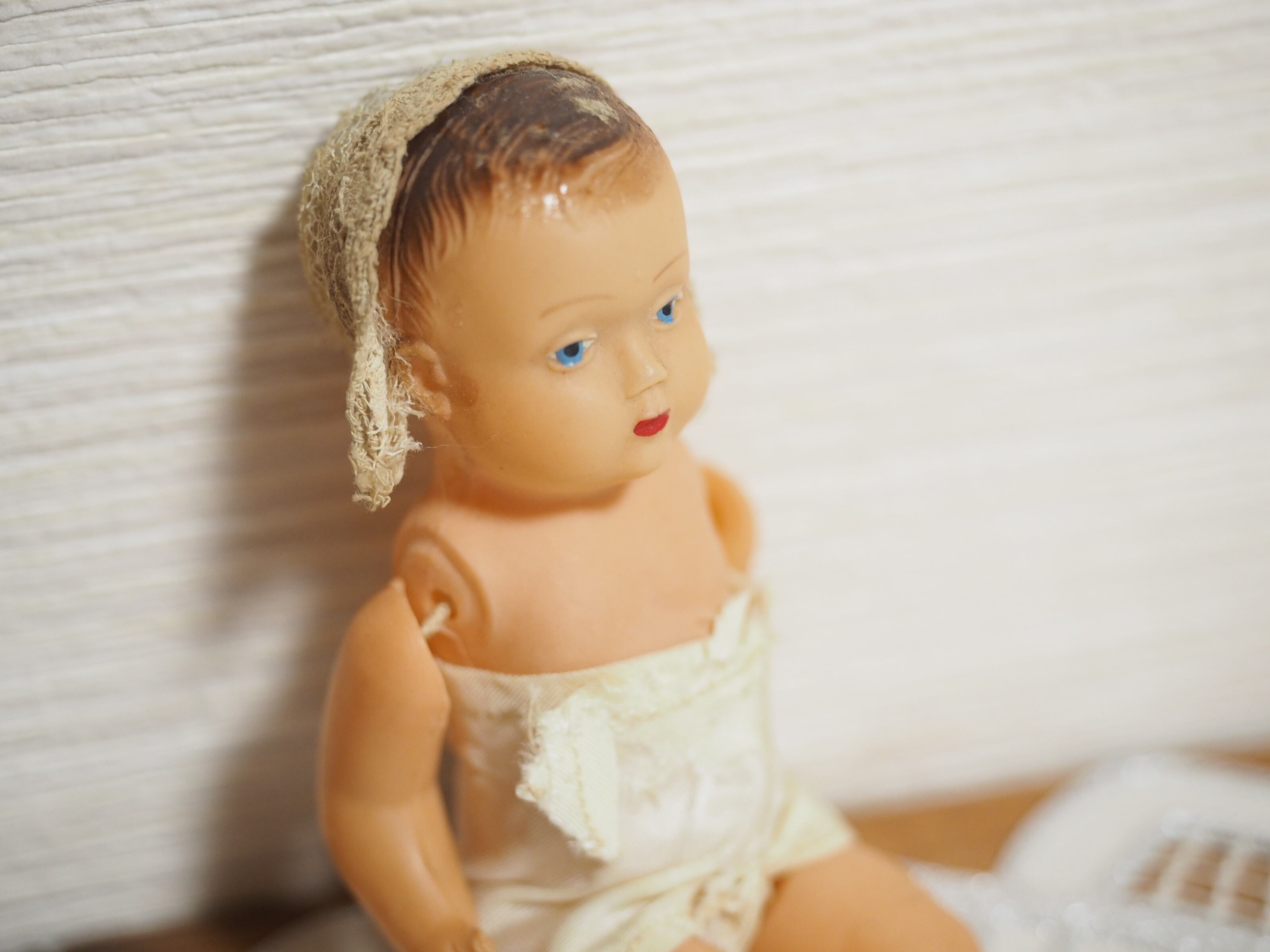 レースのボネ、おむつはかなり劣化がありますがアンティークな雰囲気。