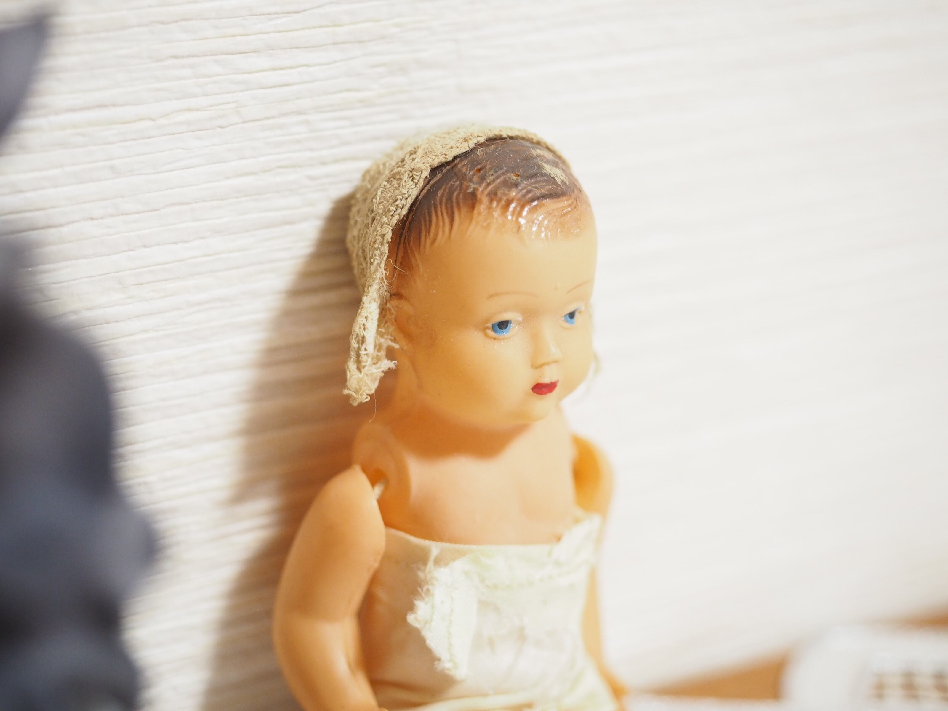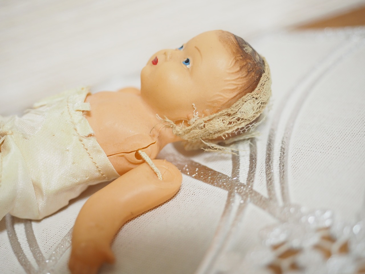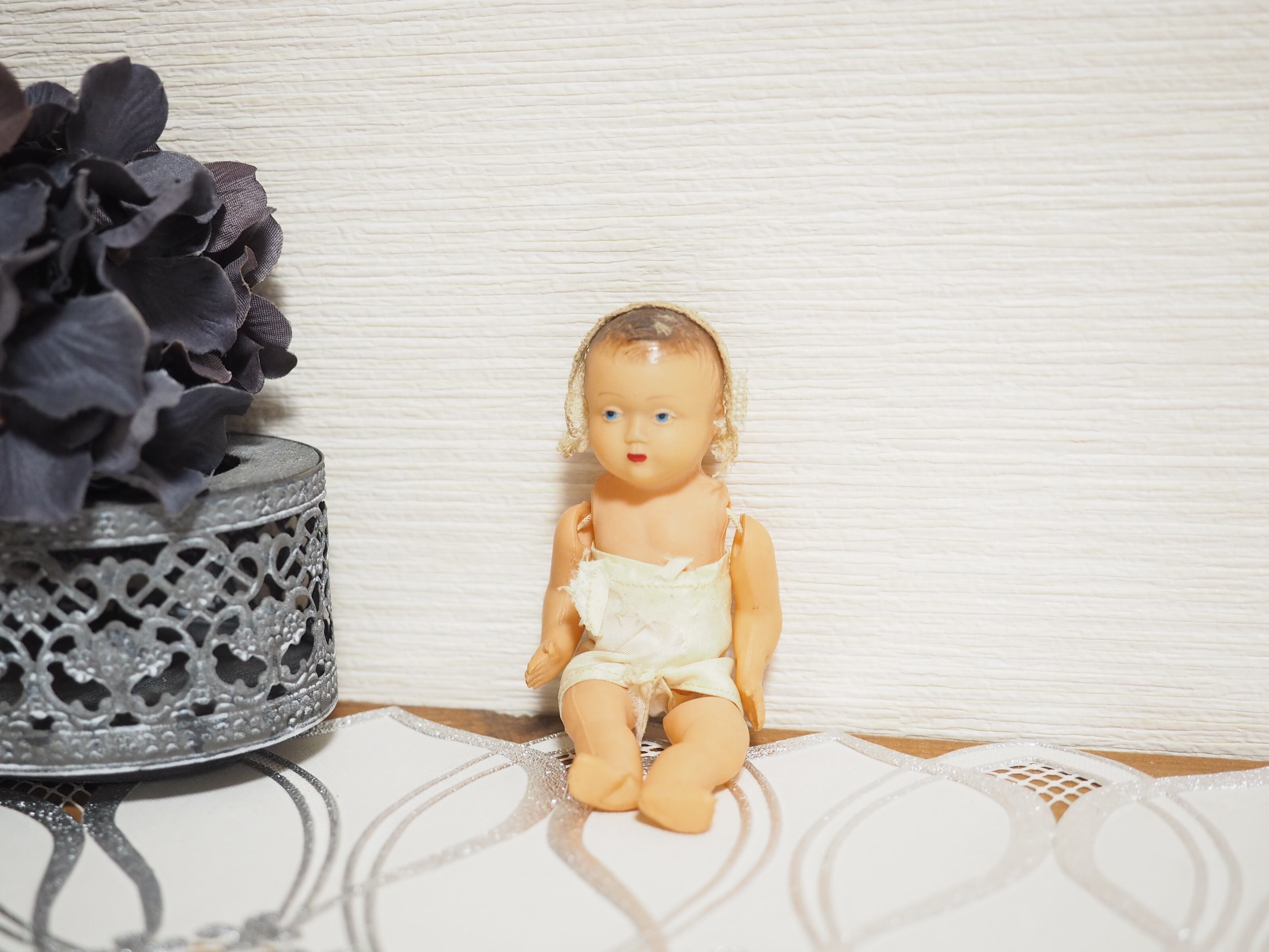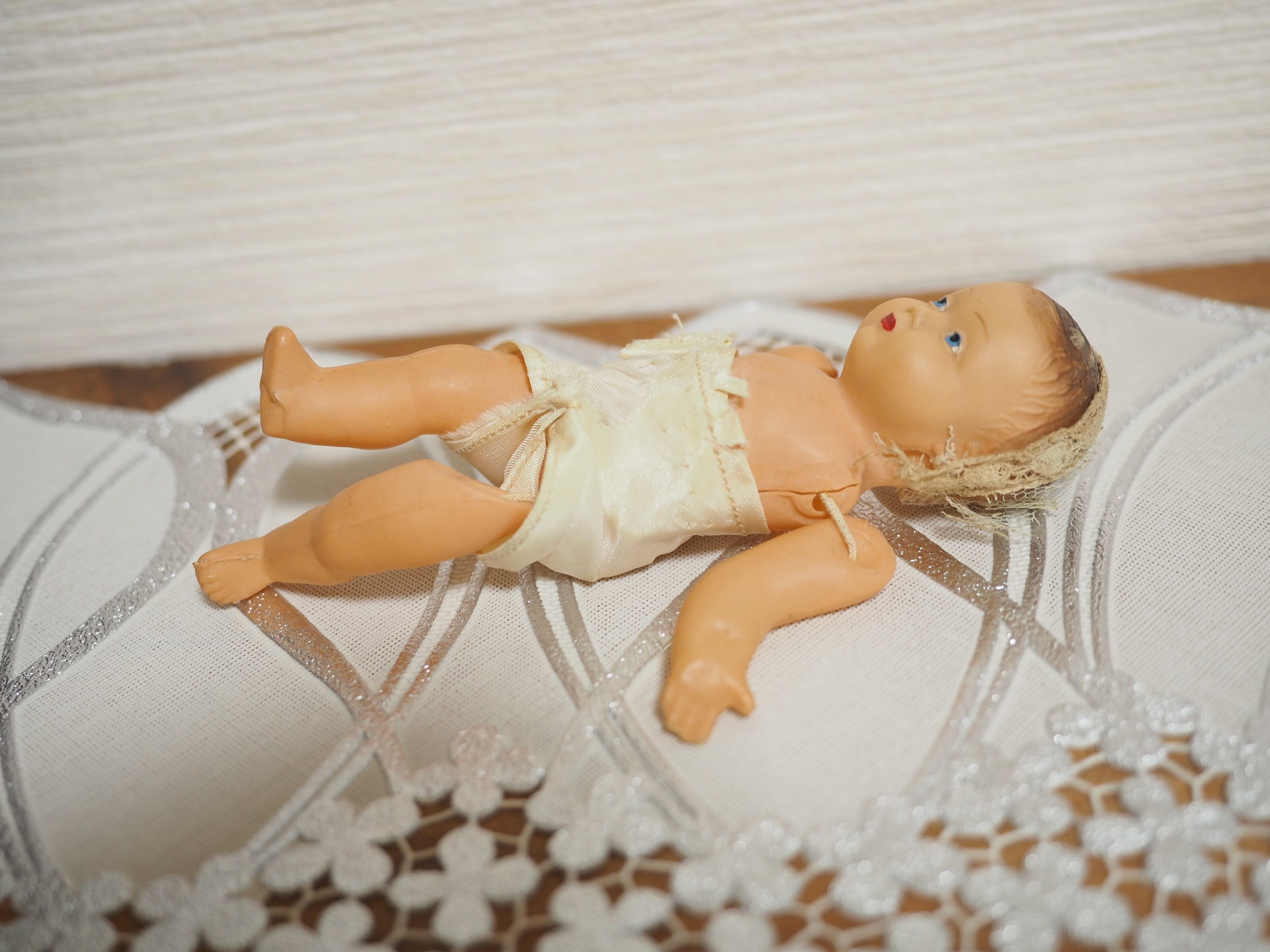 レースのボネ、おむつはかなり劣化がありますがアンティークな雰囲気。