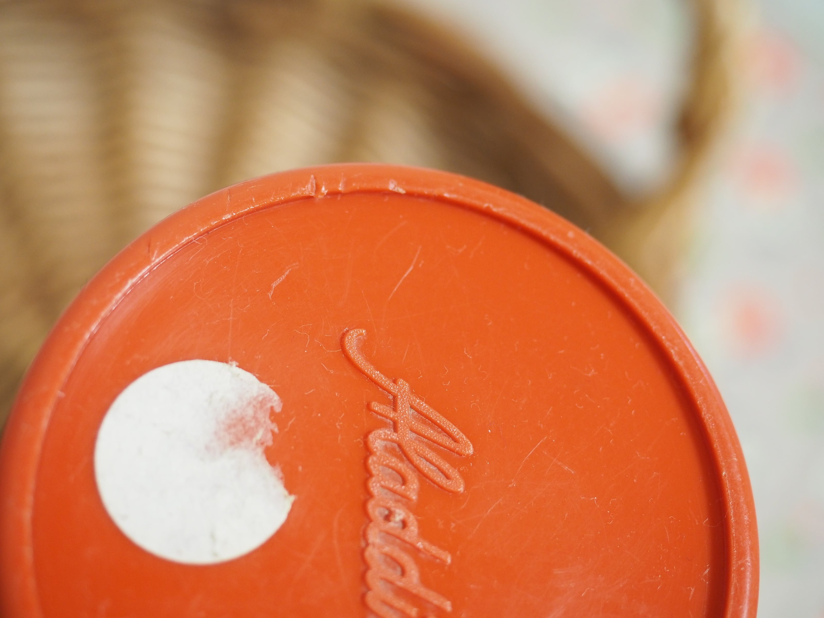 プラスチックの赤い蓋にシールの剥がれ跡、小さなへこみ、スレ傷がございます。裏側にMADE IN CANADAの刻印