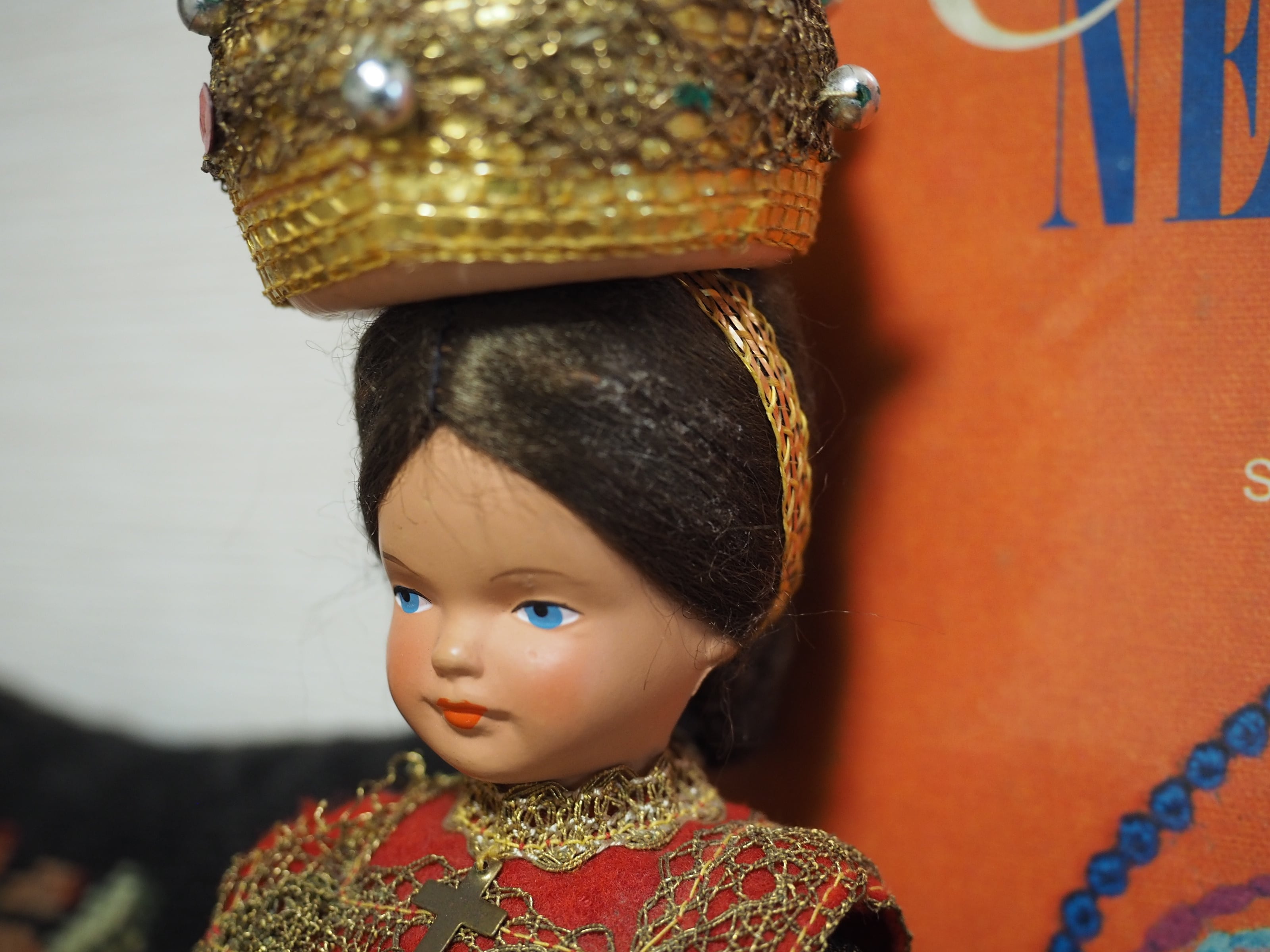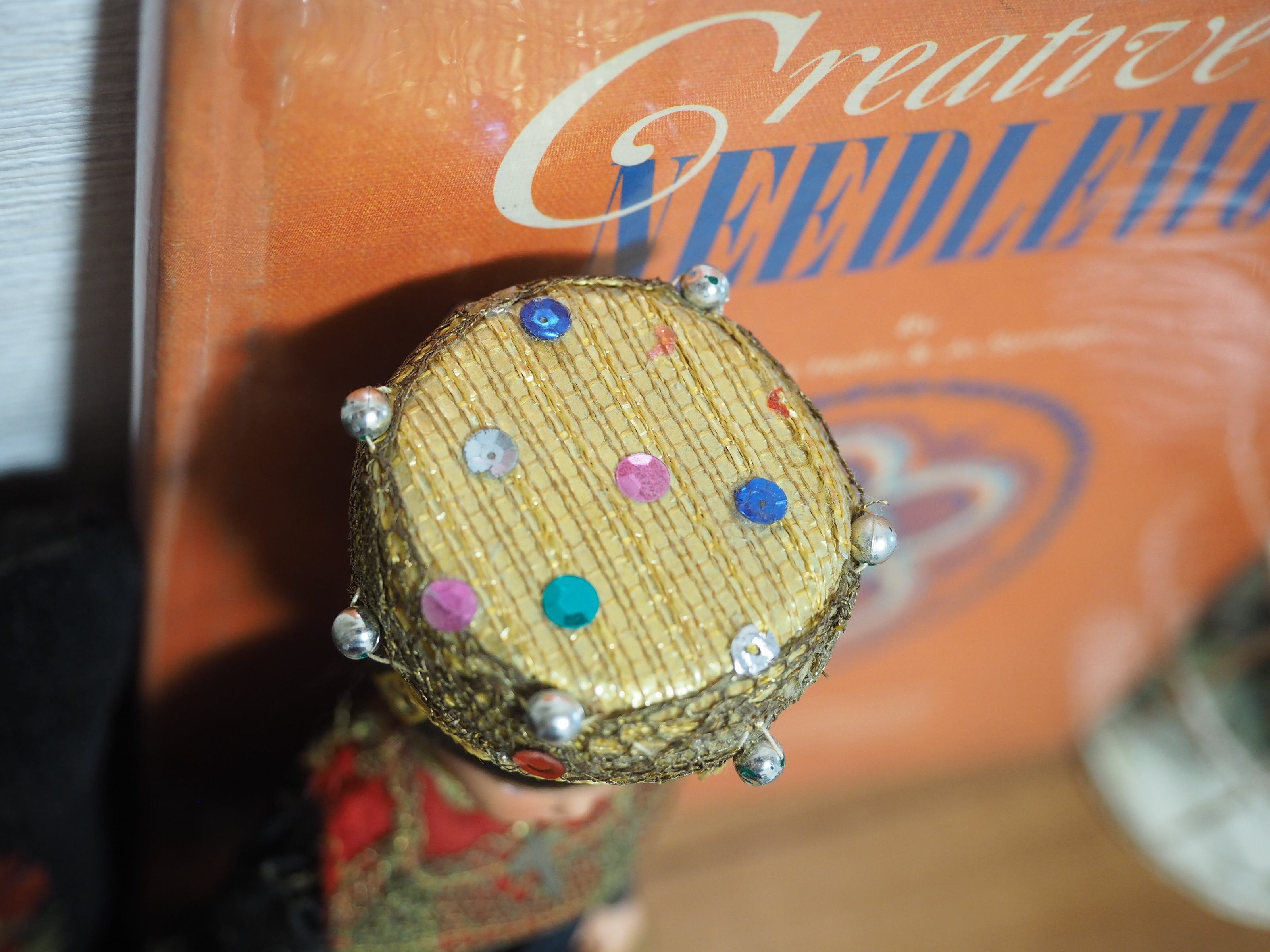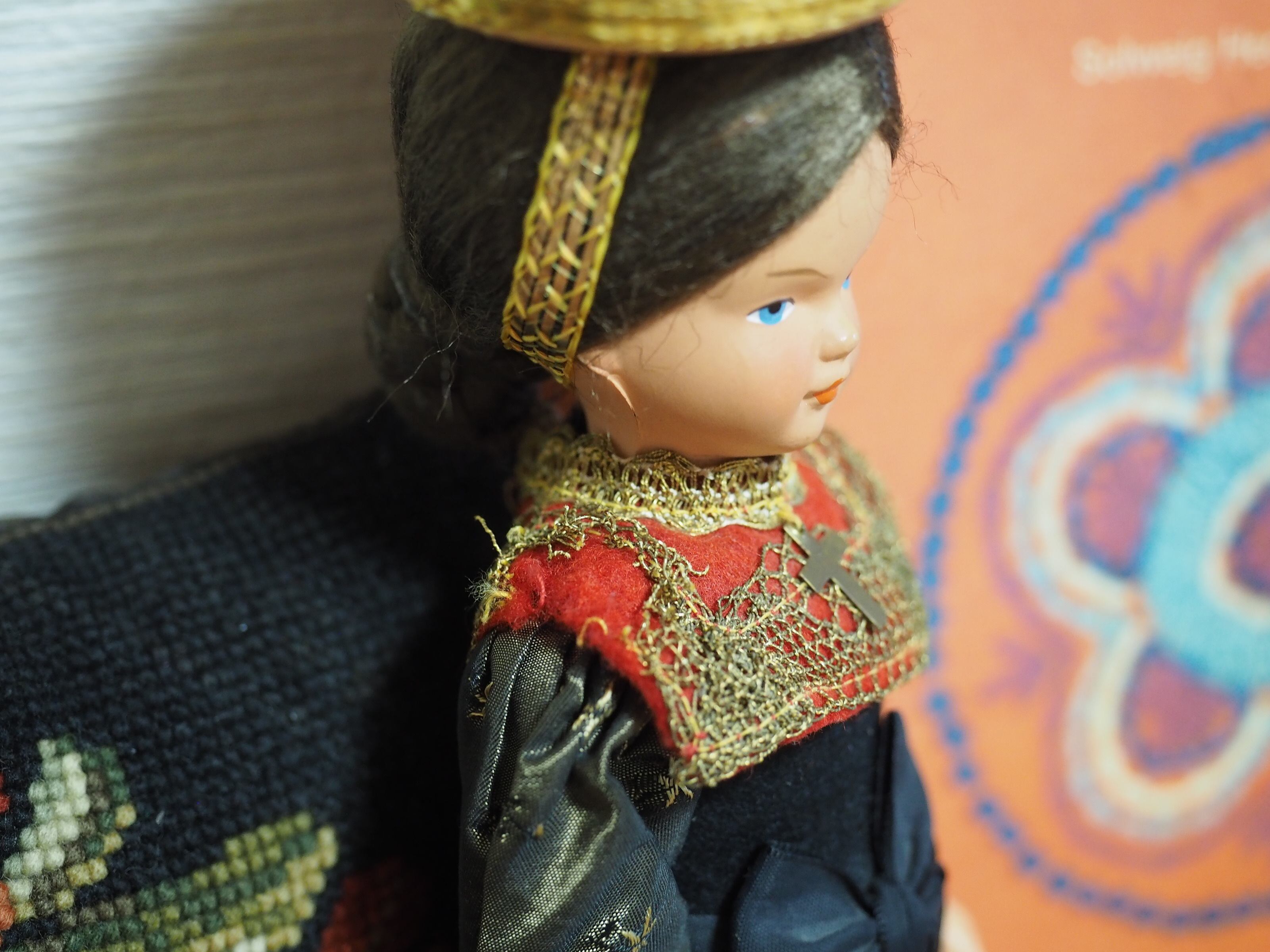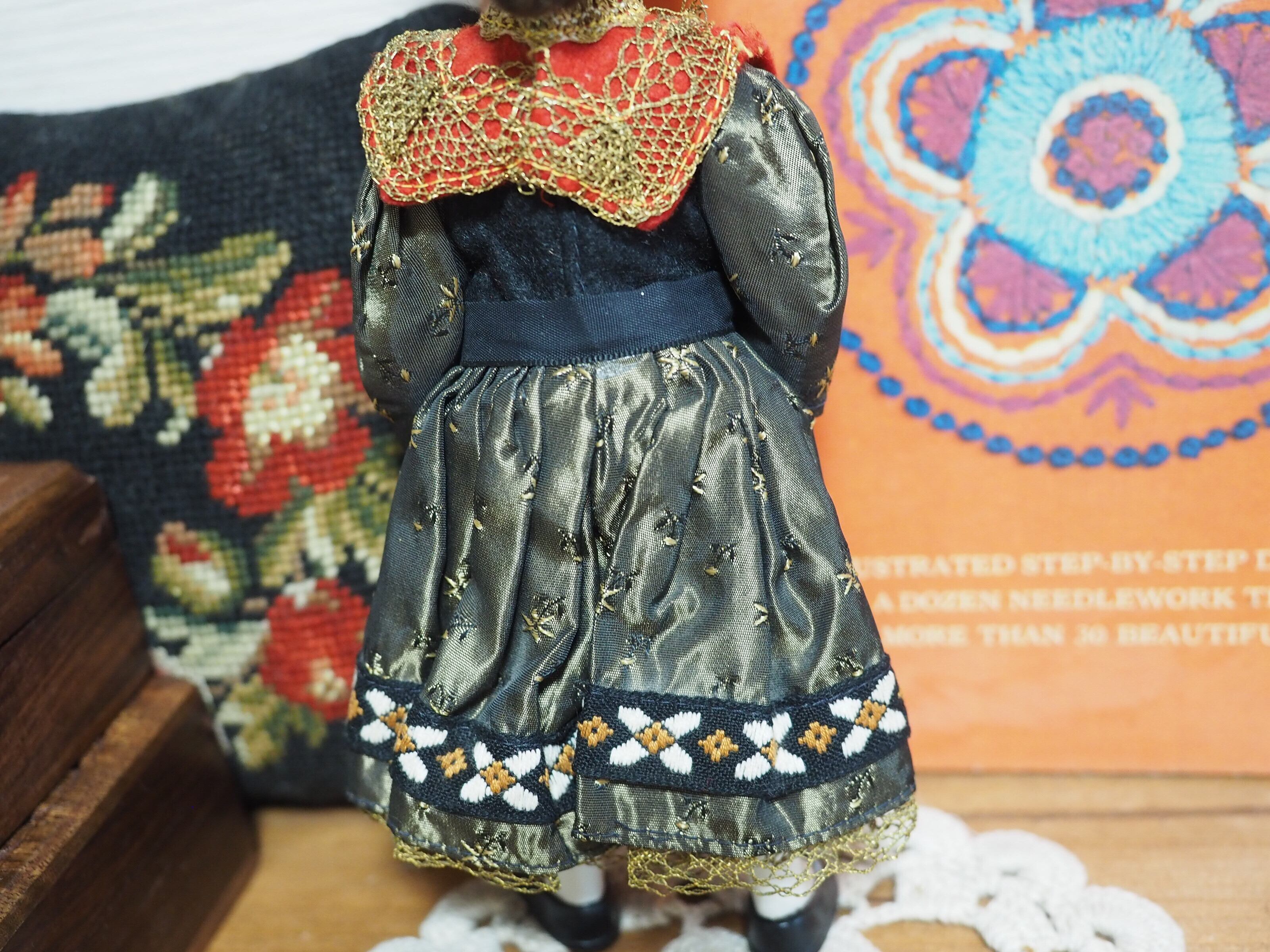 美しい顔立ちの民族衣装人形で、色々なコスチュームで販売されたようです。大きな頭飾りが特徴的。