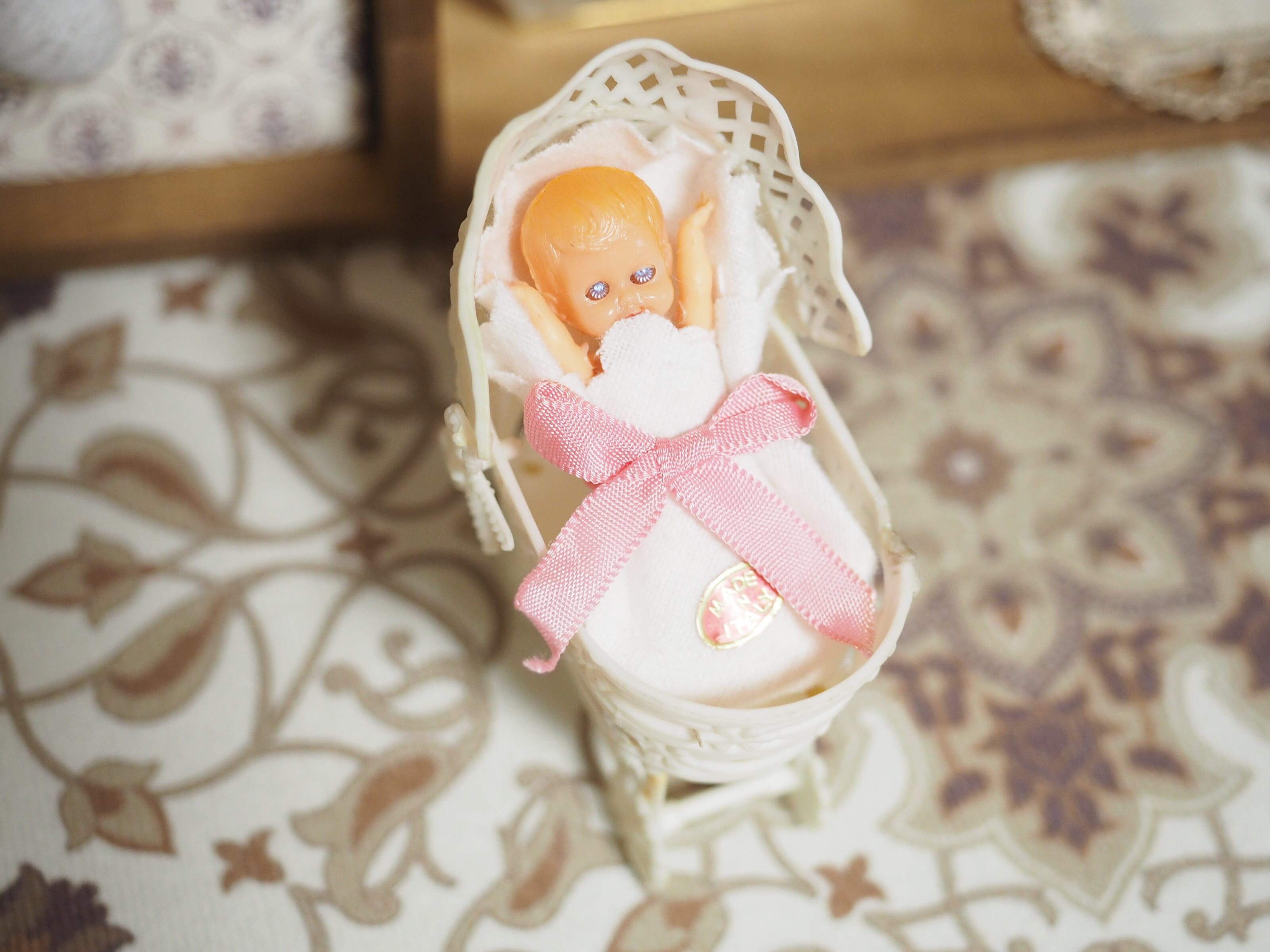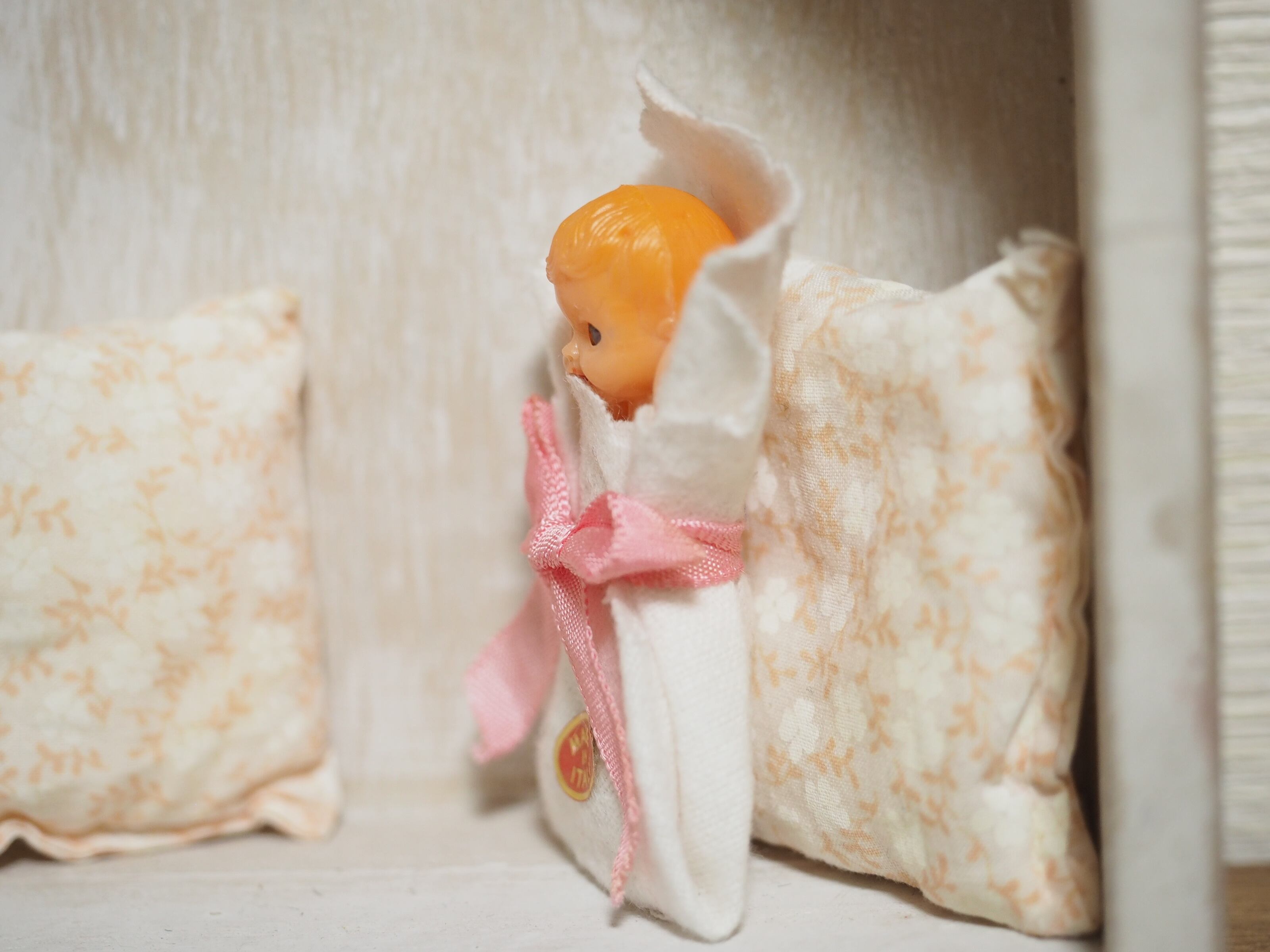 約6.5㎝、おくるみ上までで8㎝の小さなベビー人形です。