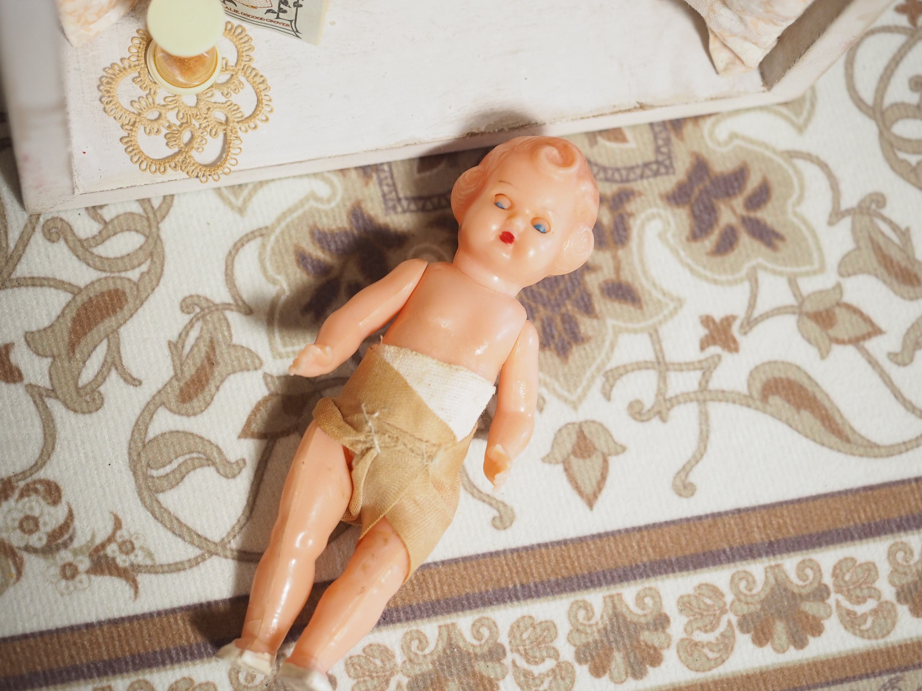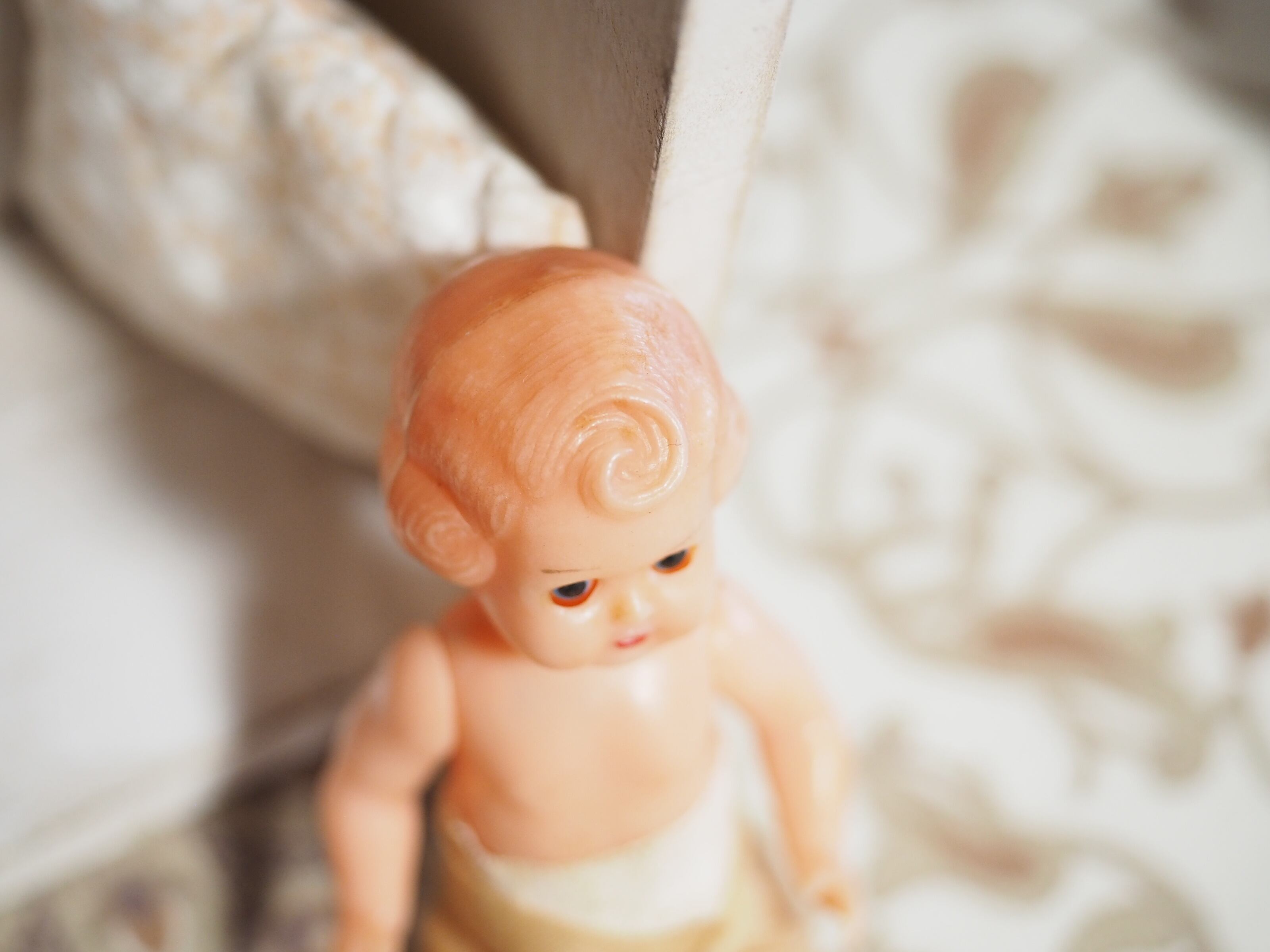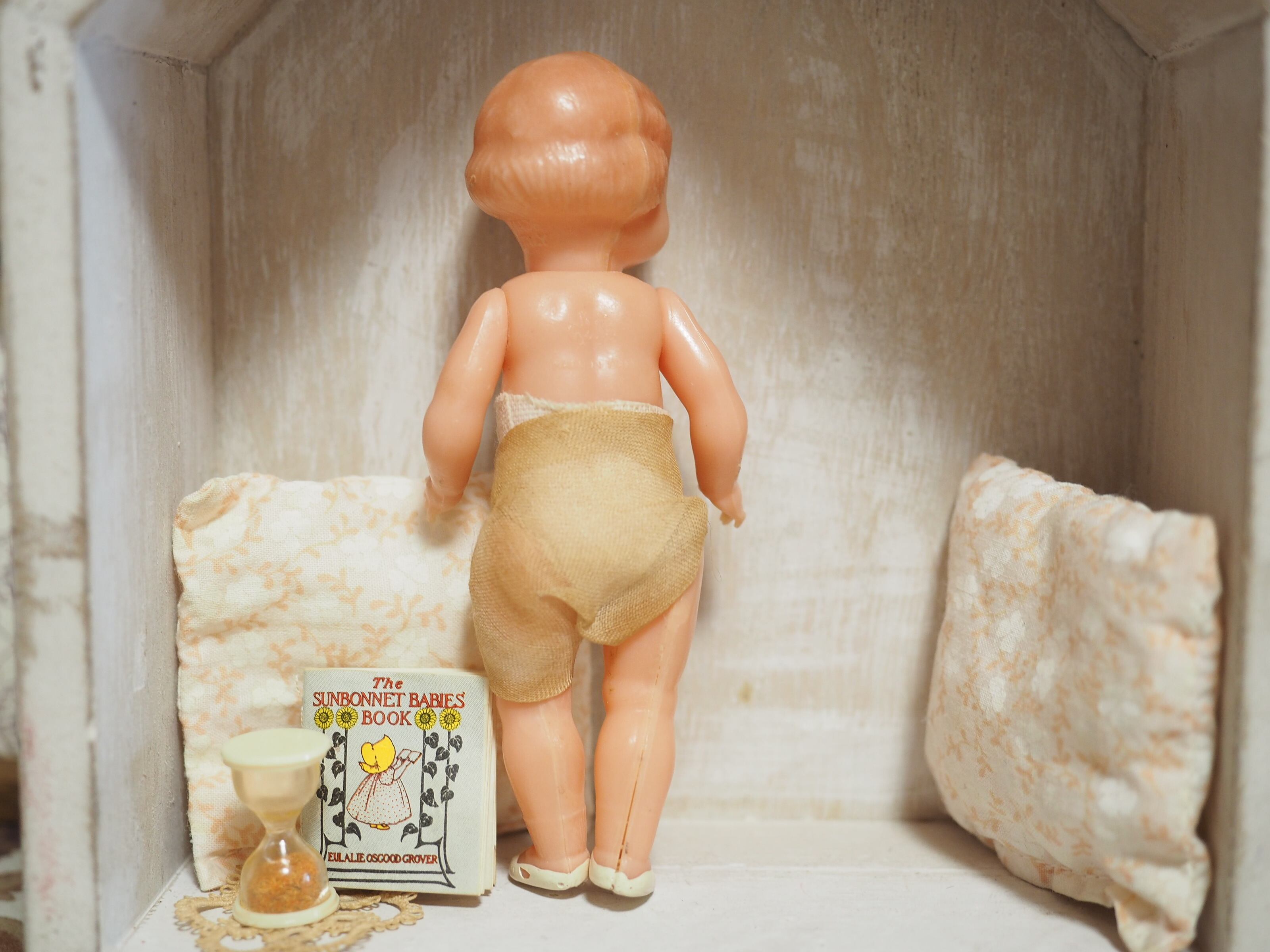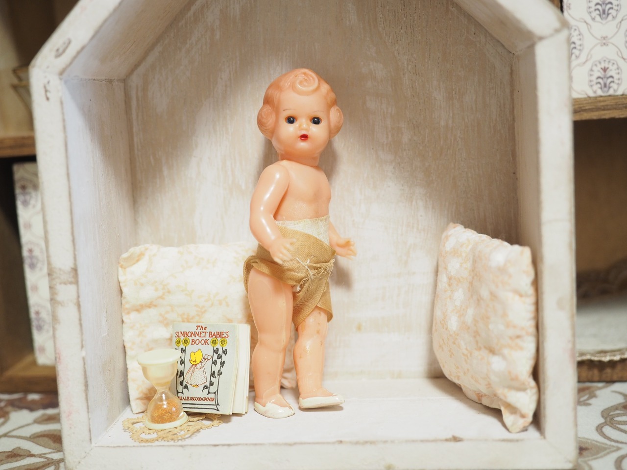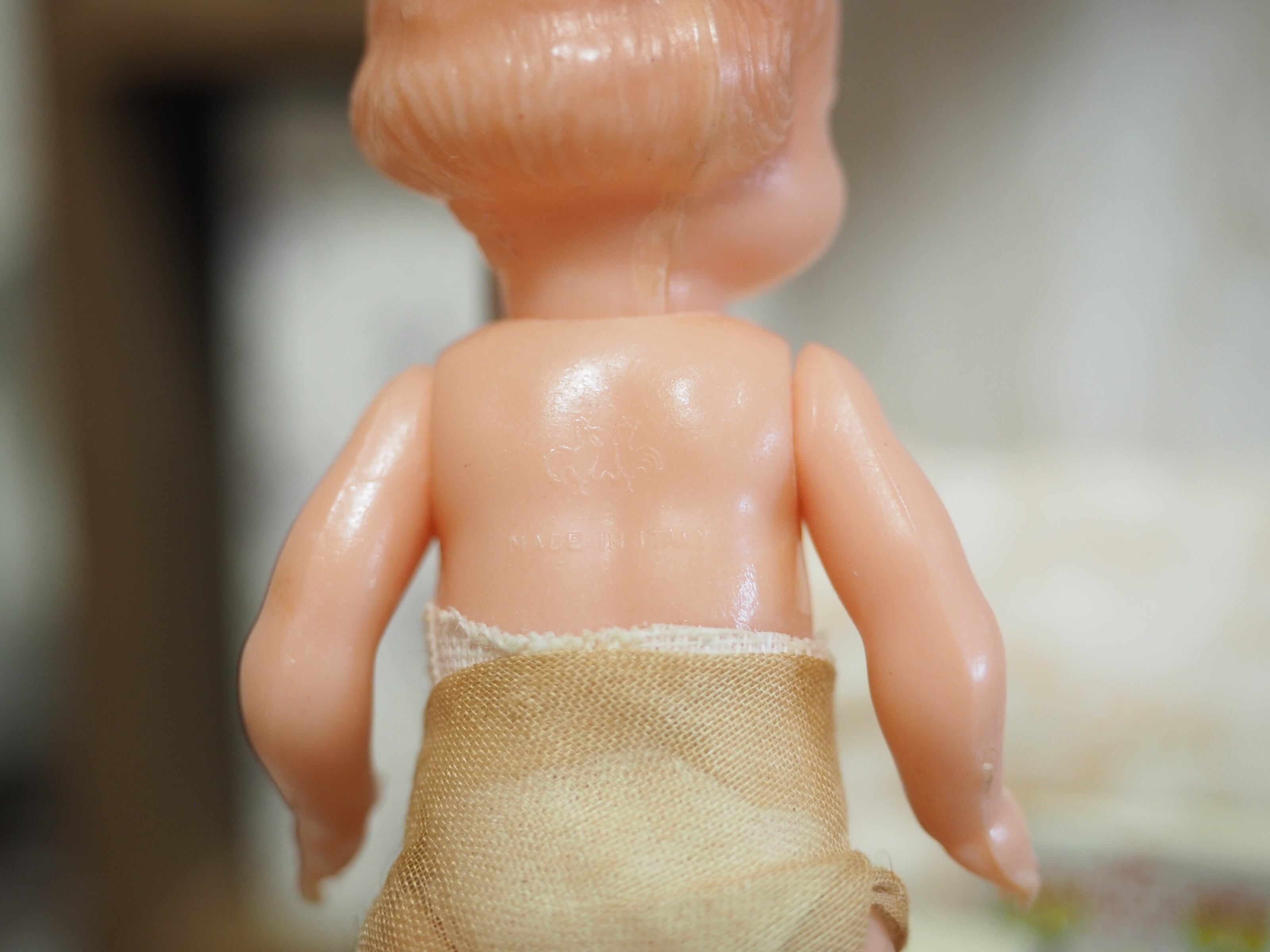くるんと巻いた髪がかわいらしい小さめのお人形です。イタリア製