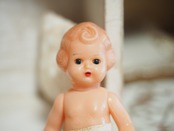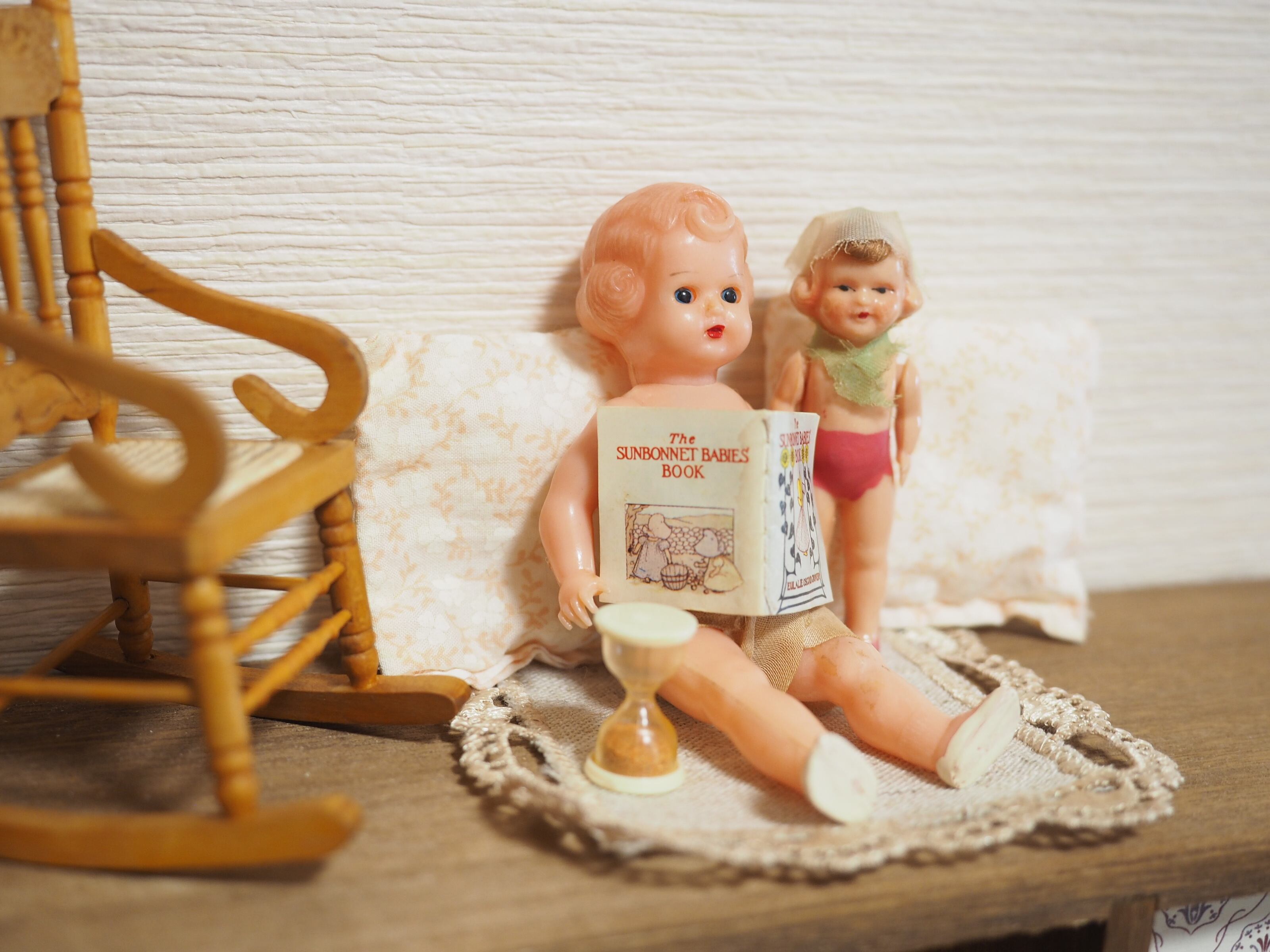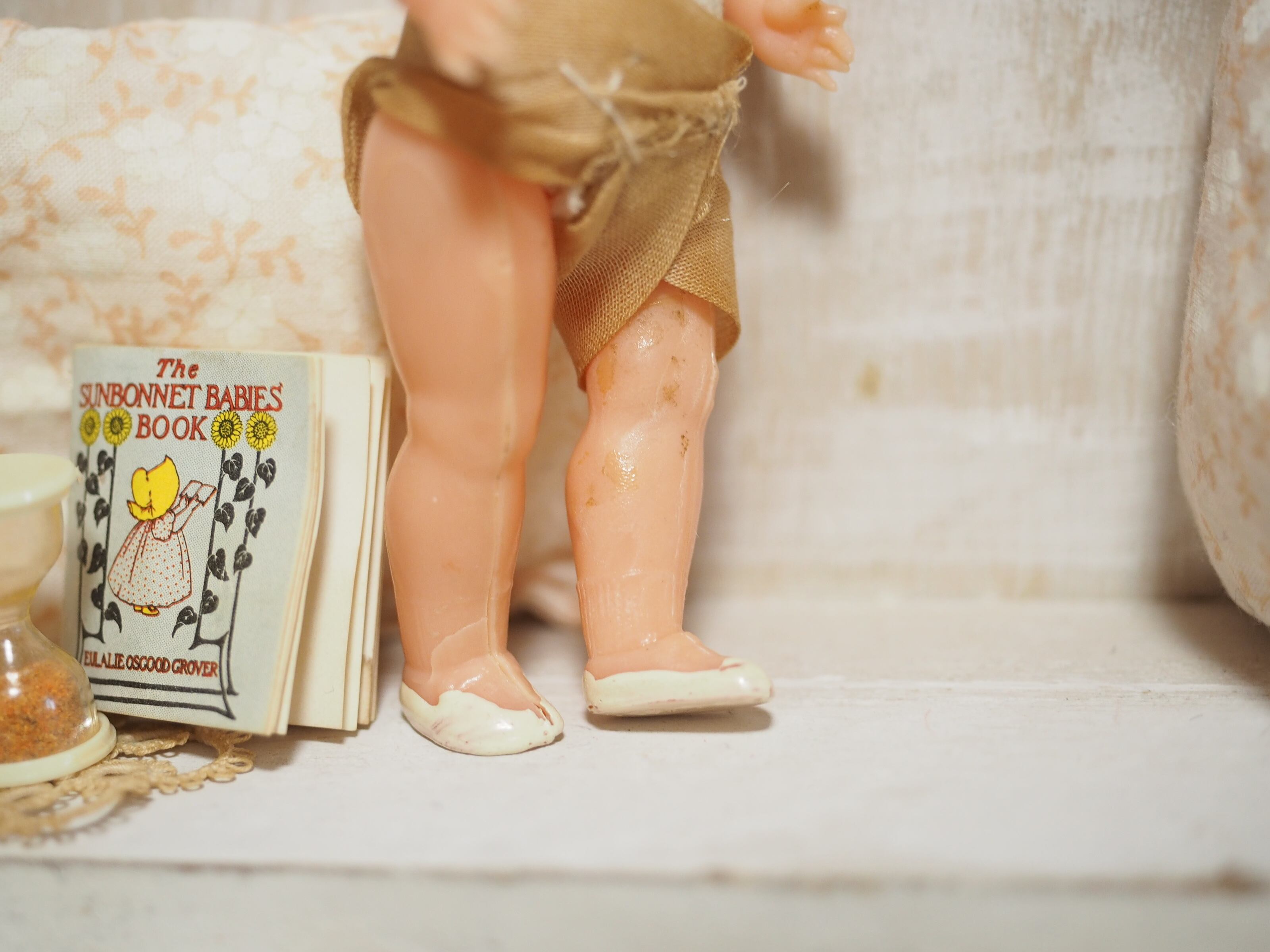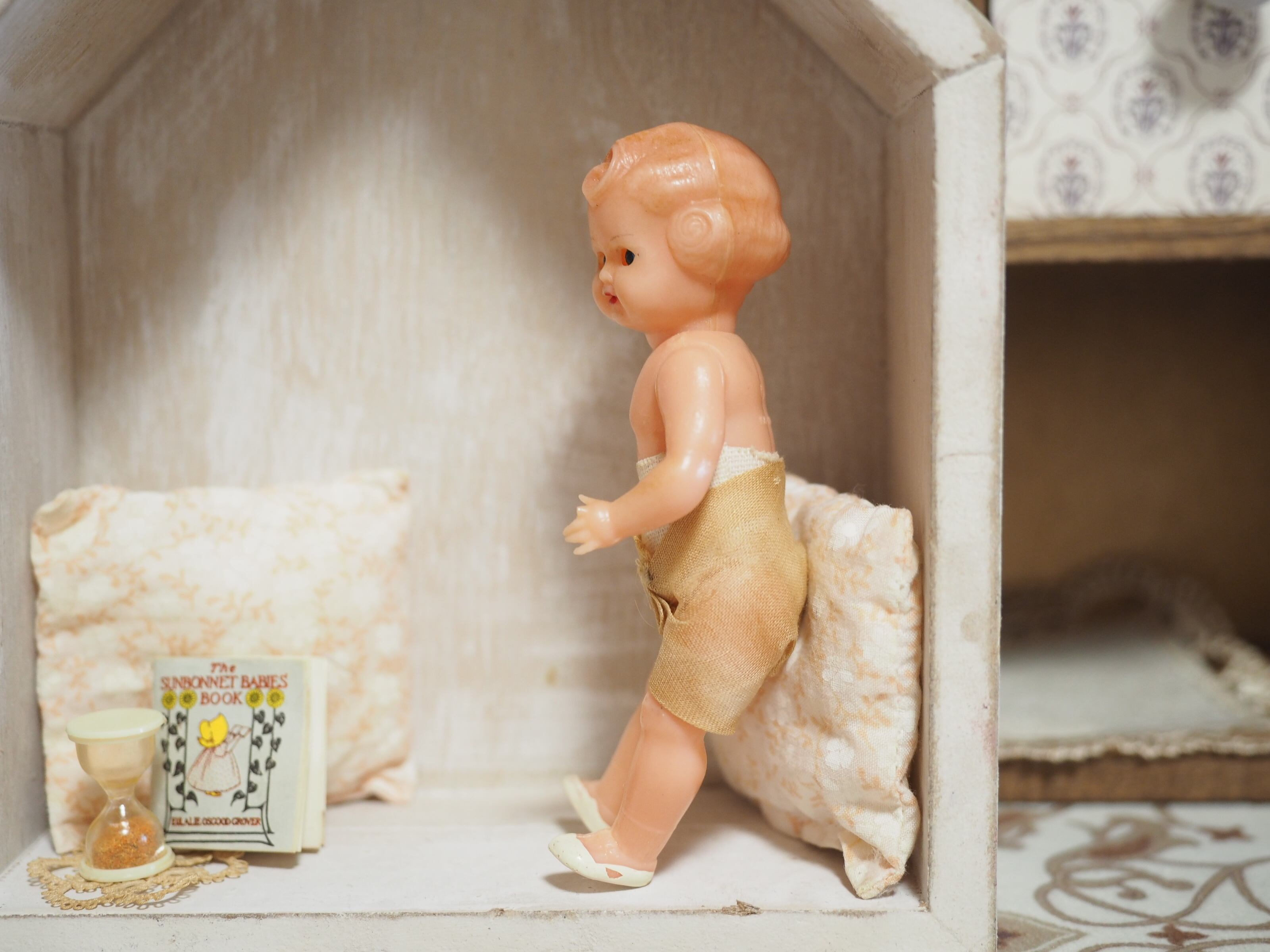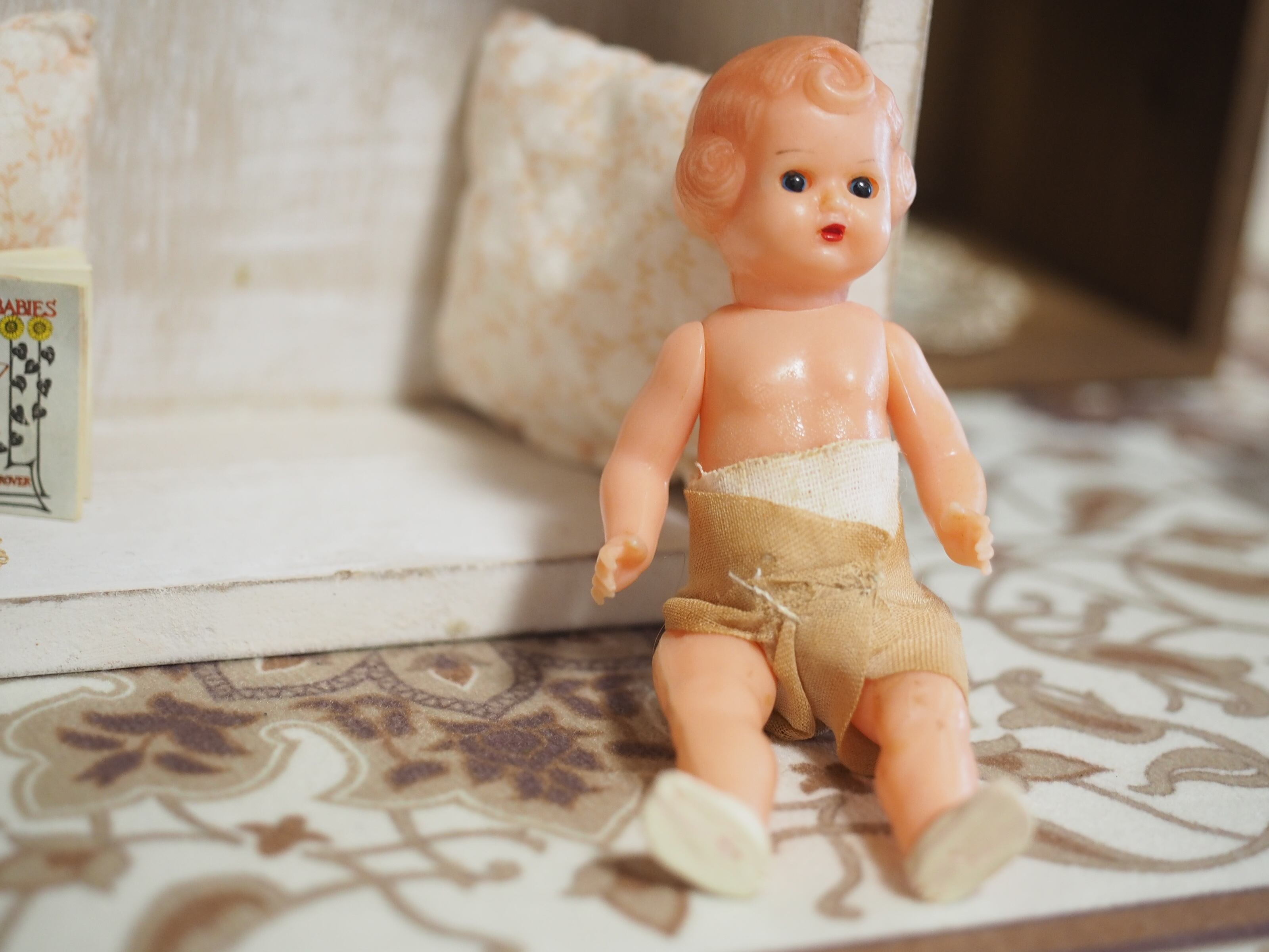 くるんと巻いた髪がかわいらしい小さめのお人形です。イタリア製