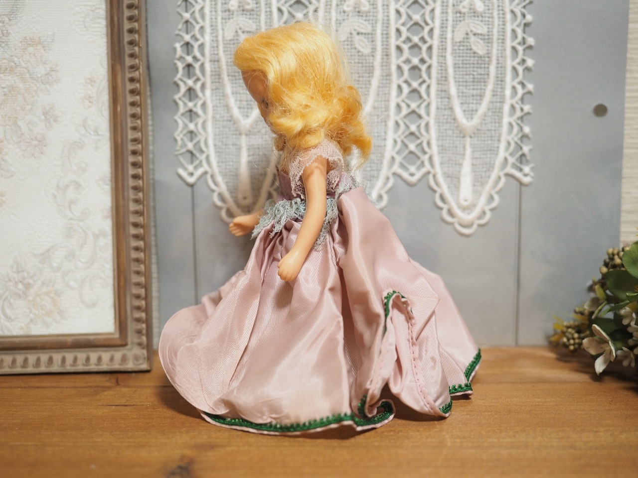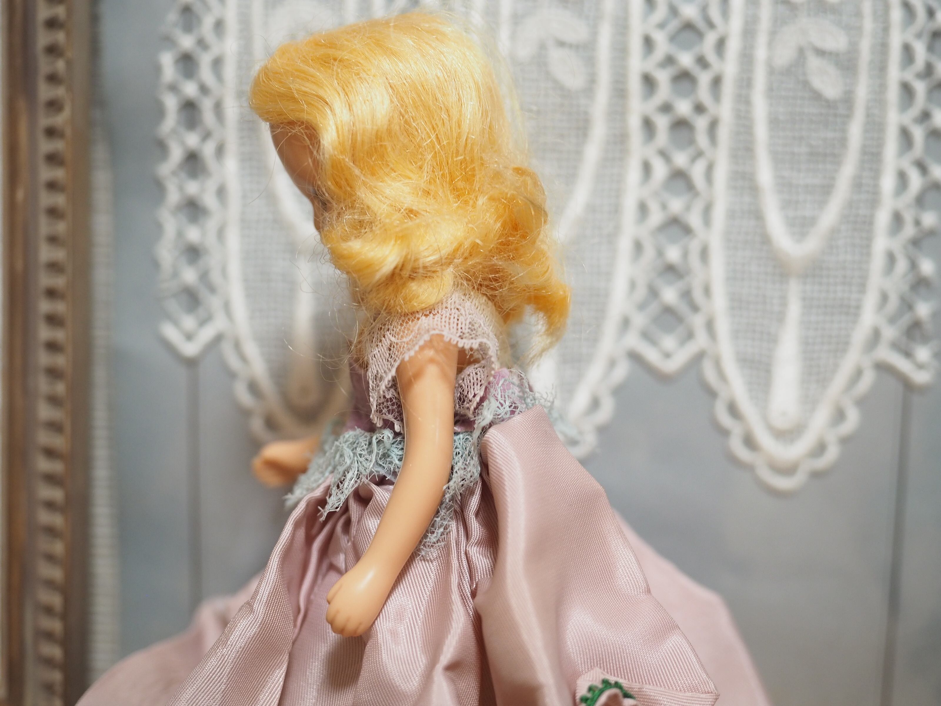 ドレスを脱がしていませんが手足はジョイントで少し動きますので、1952年以降のタイプのようです。(左脚はとても固く固定されて動きません)