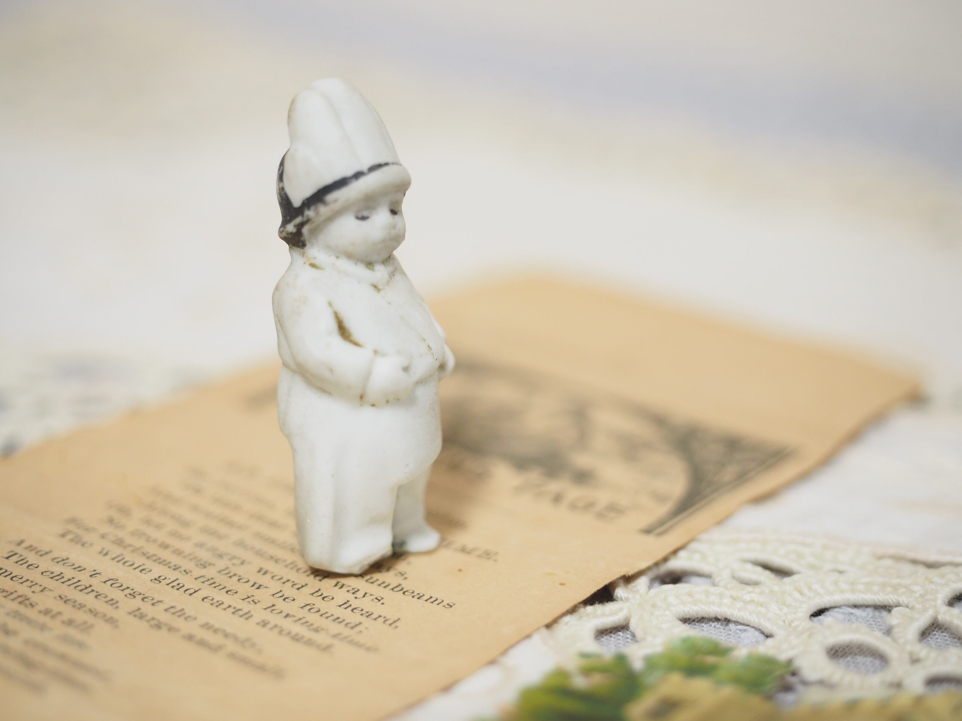 小さな白磁のお人形 釉薬なしでざらっとしています。