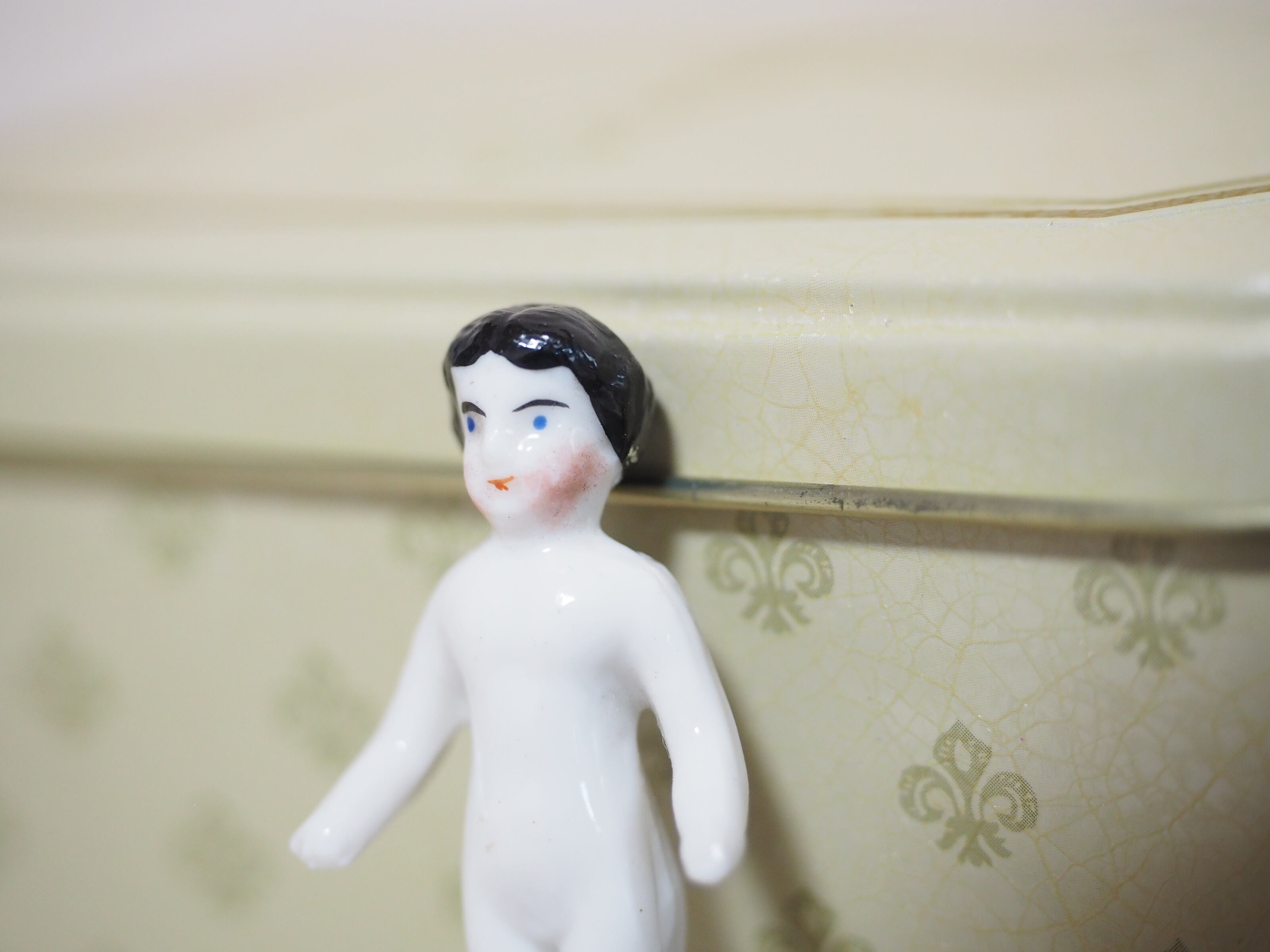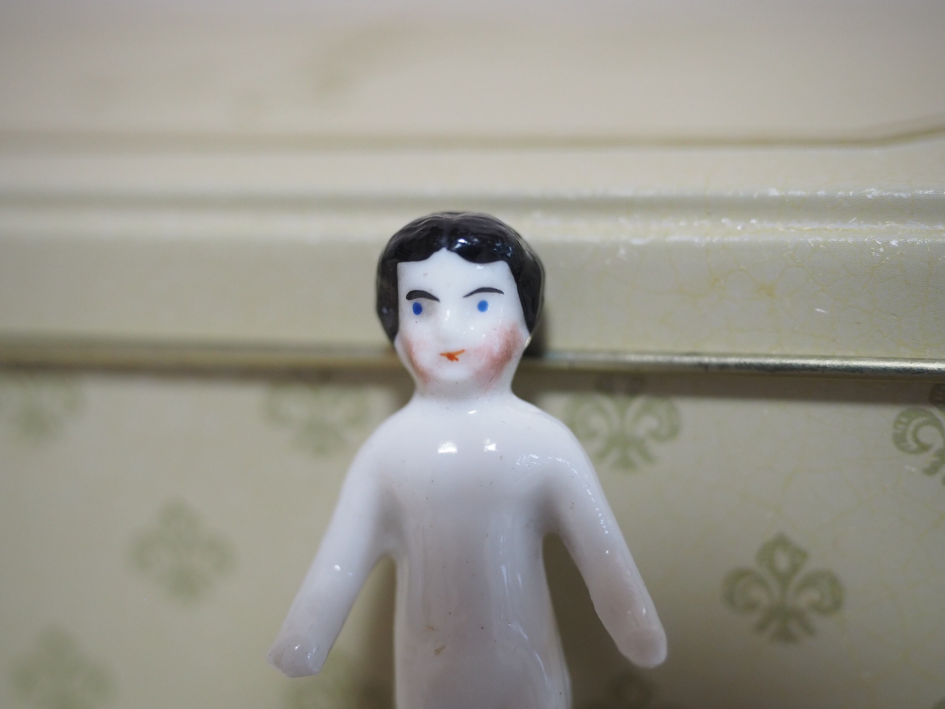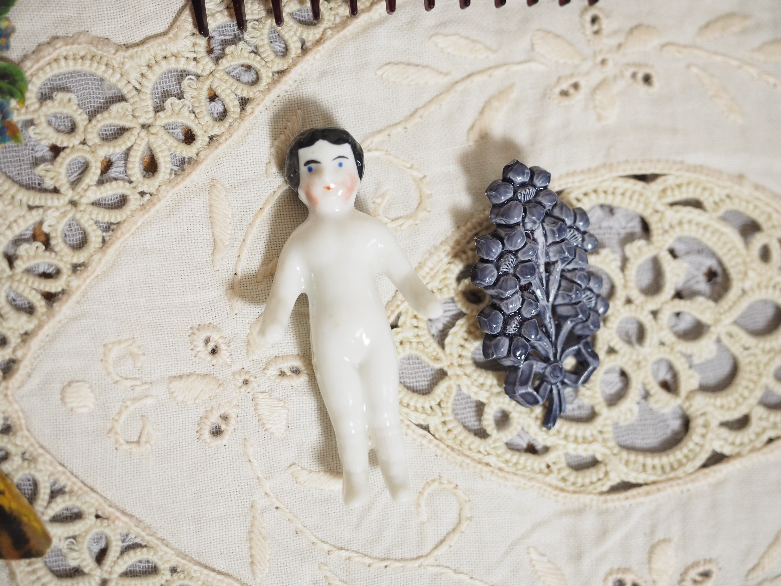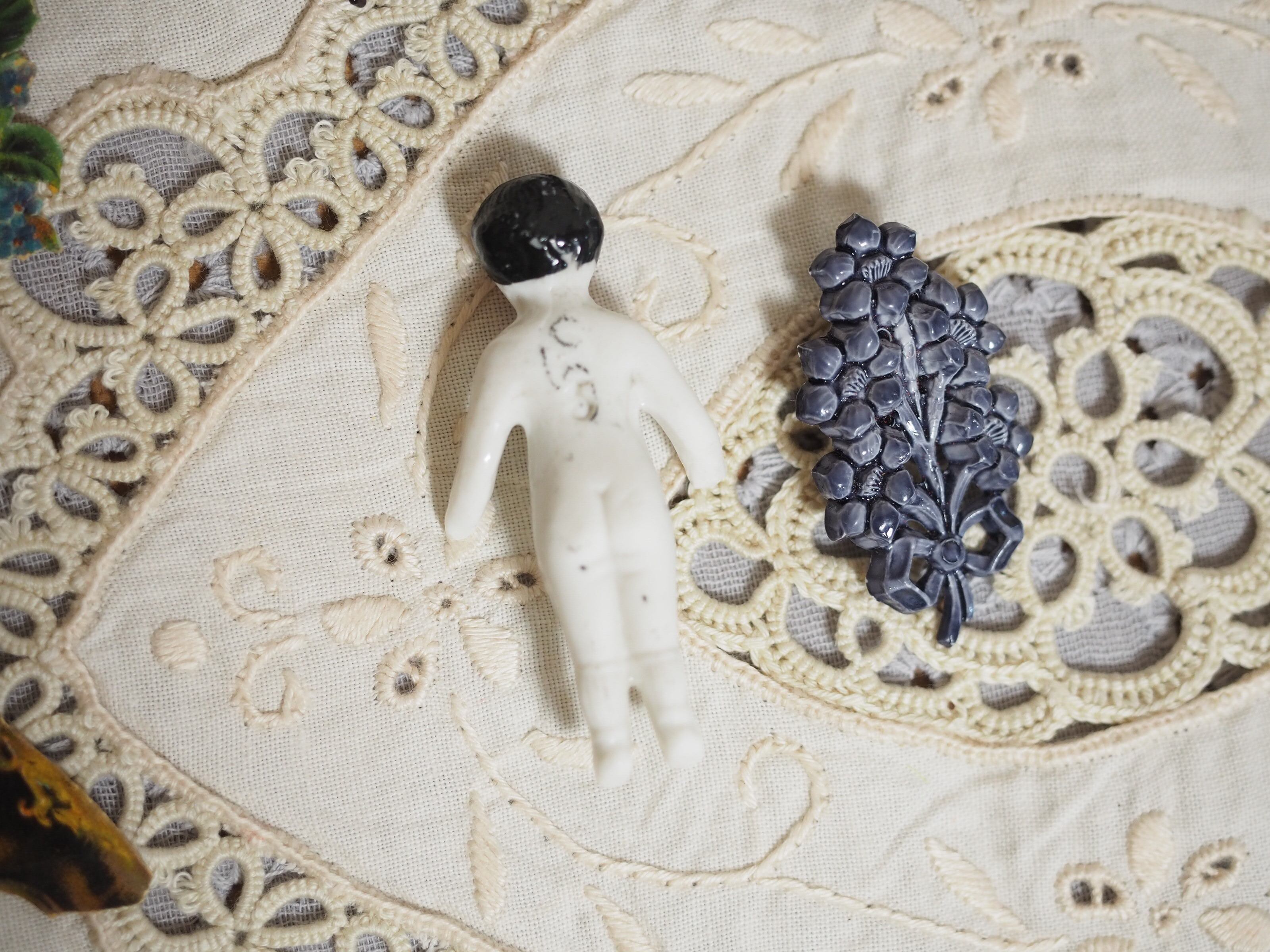 白磁のつるっとしたチャイナヘッドドールのような雰囲気で、後ろの首から下は釉薬なしでざらっとしています。