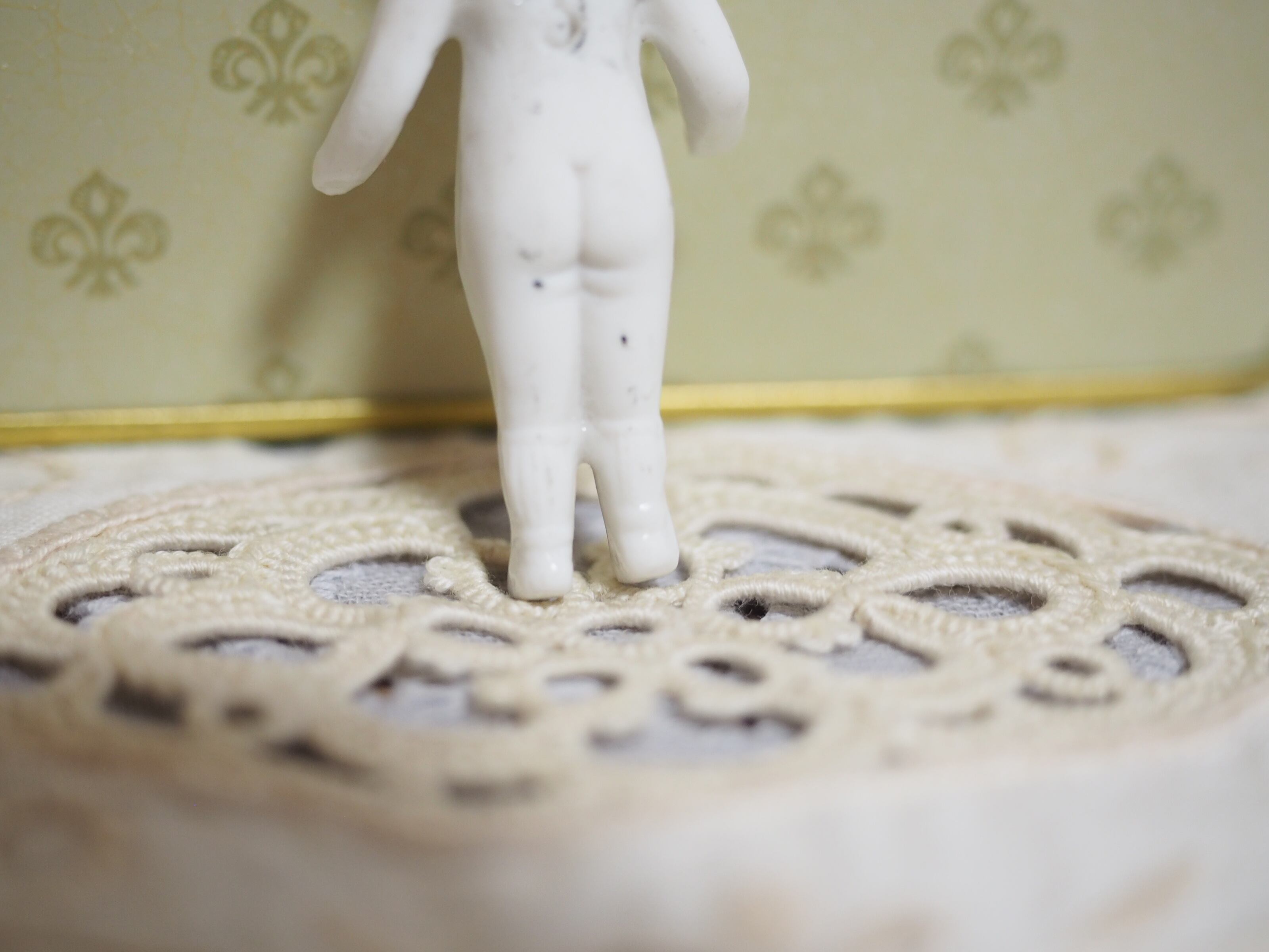 体の作りも細やかに作られていて小ささとで溜息が出るようです。ちゃんと靴下と靴が形成されています。
