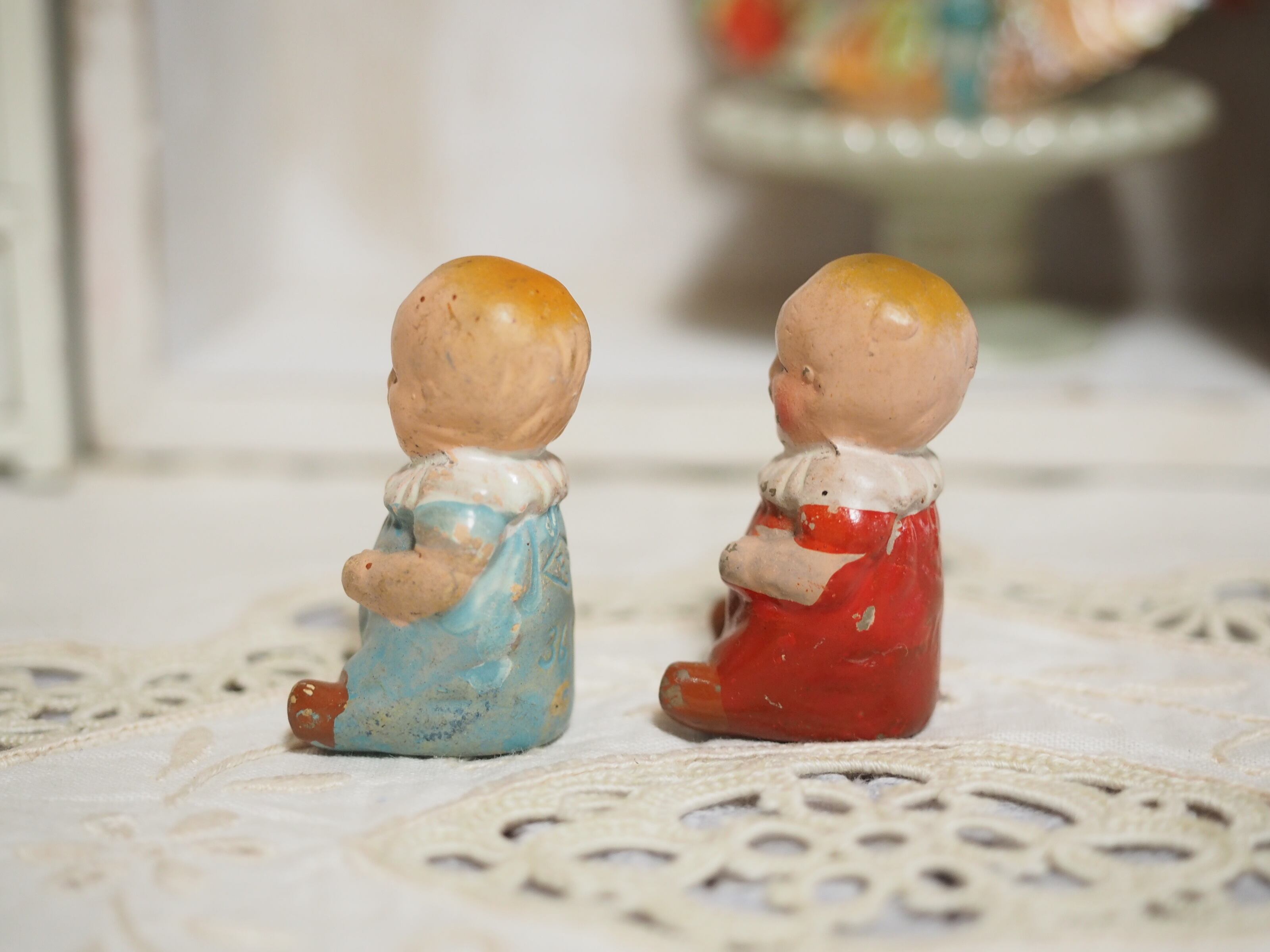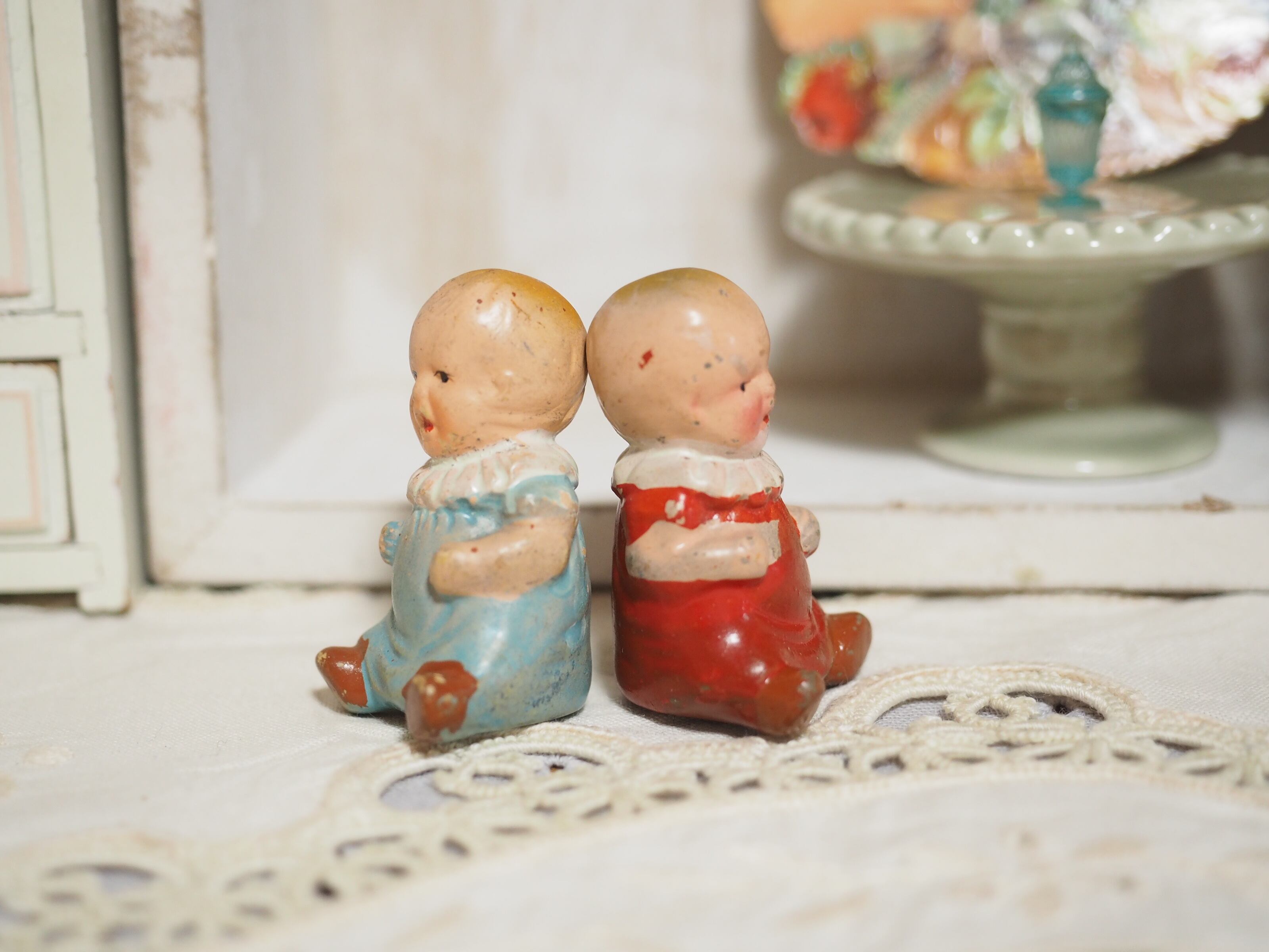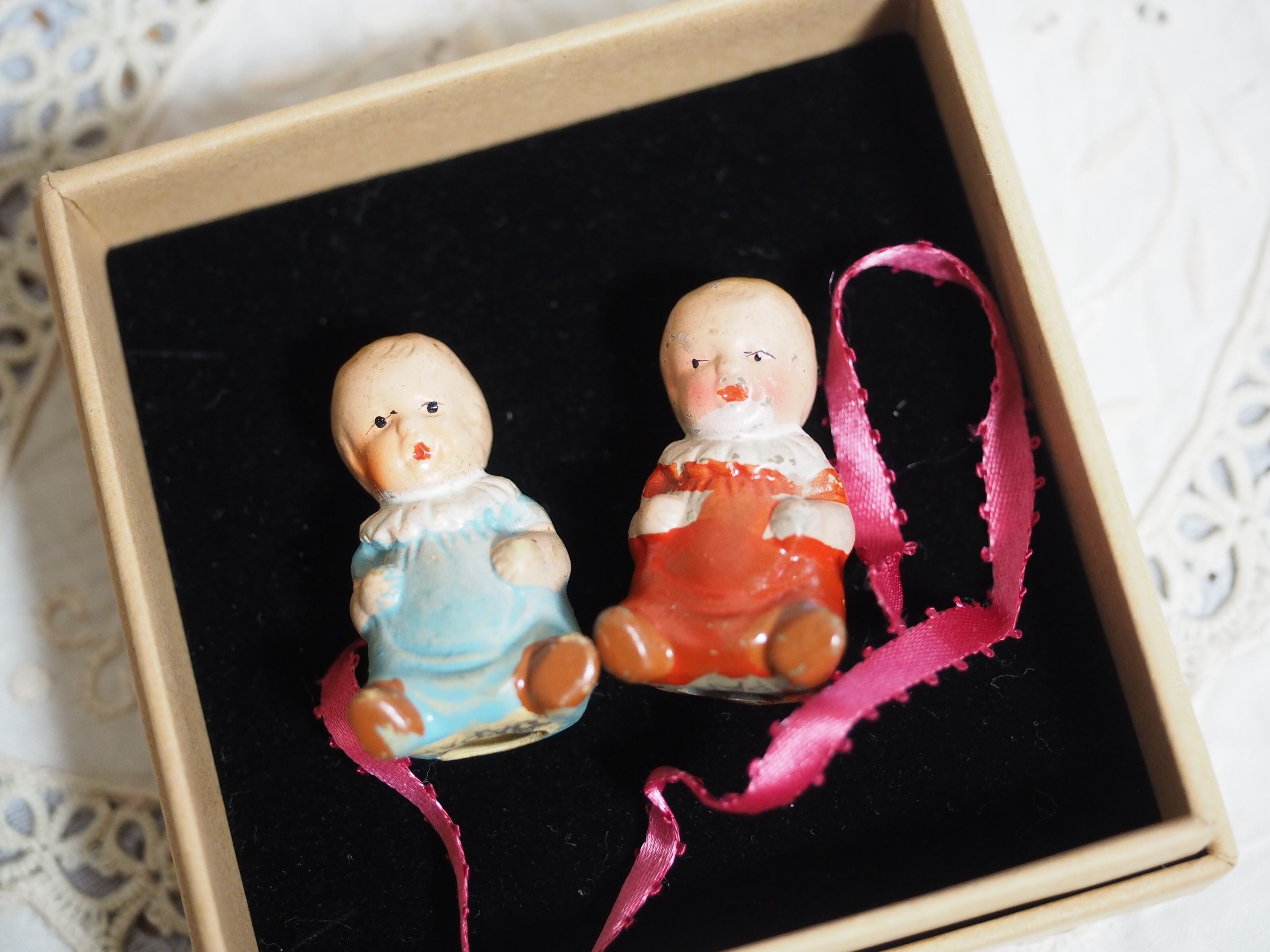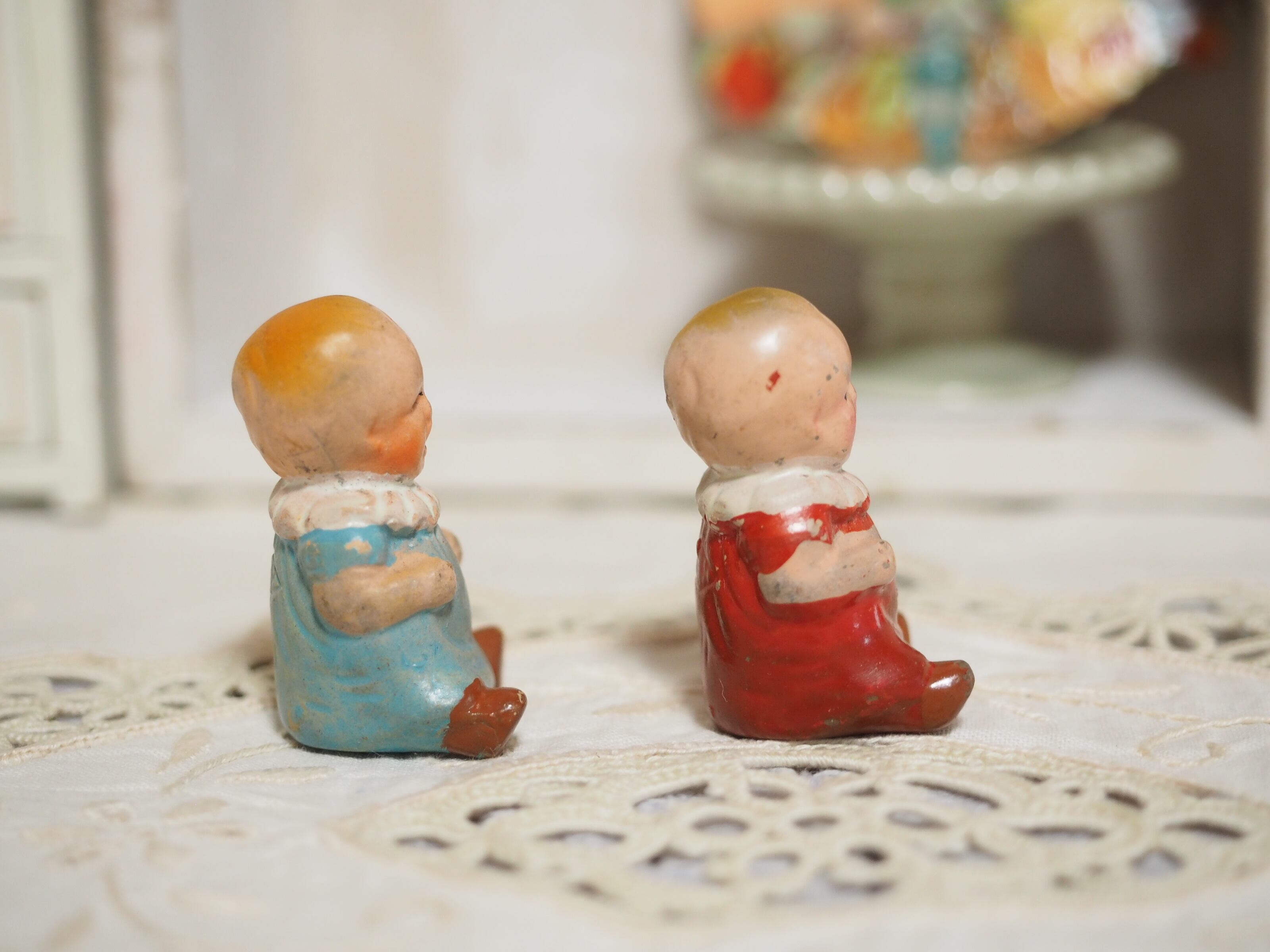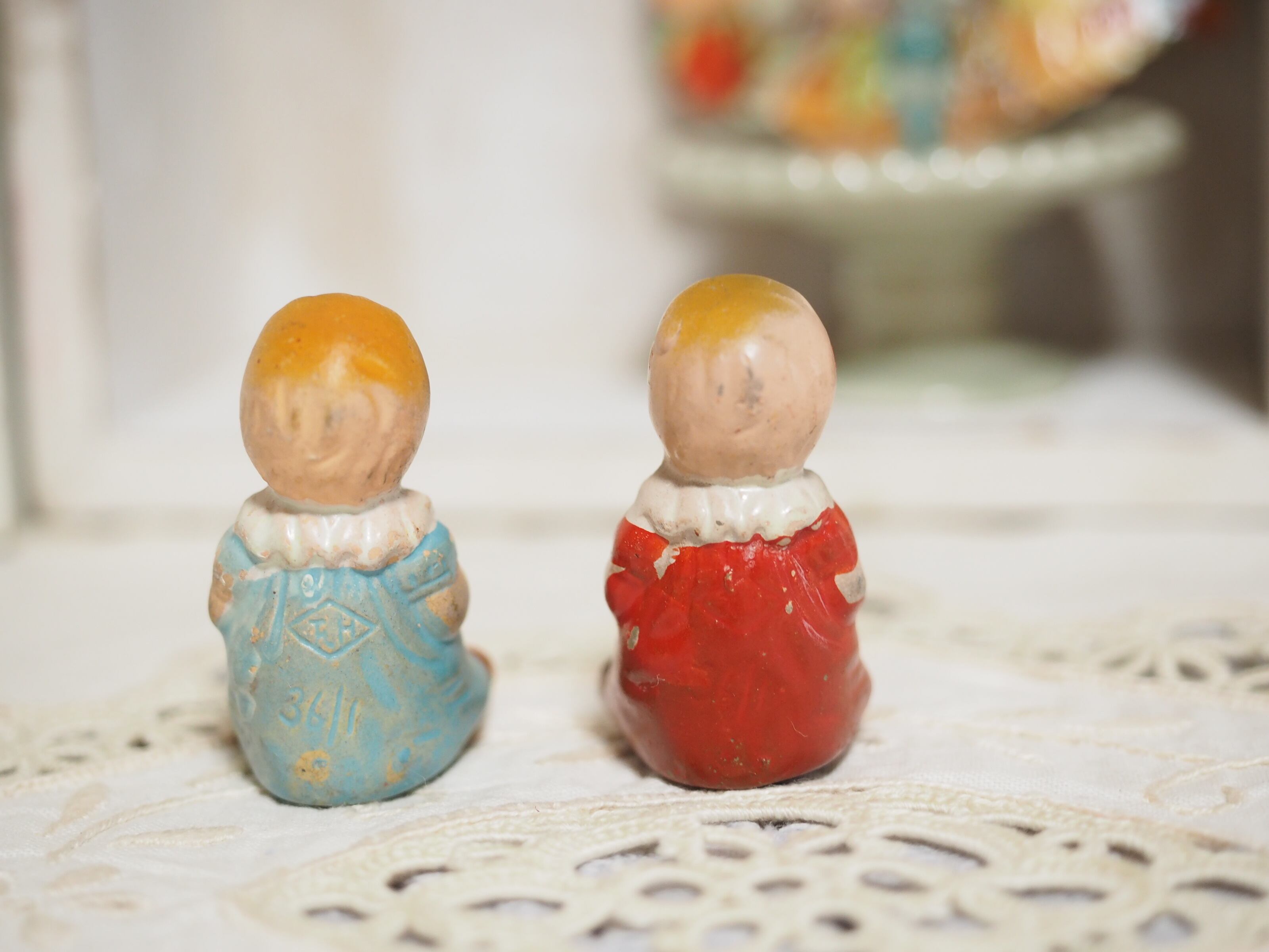 古い日本製ドール コンポジション 水色と赤のドールセット