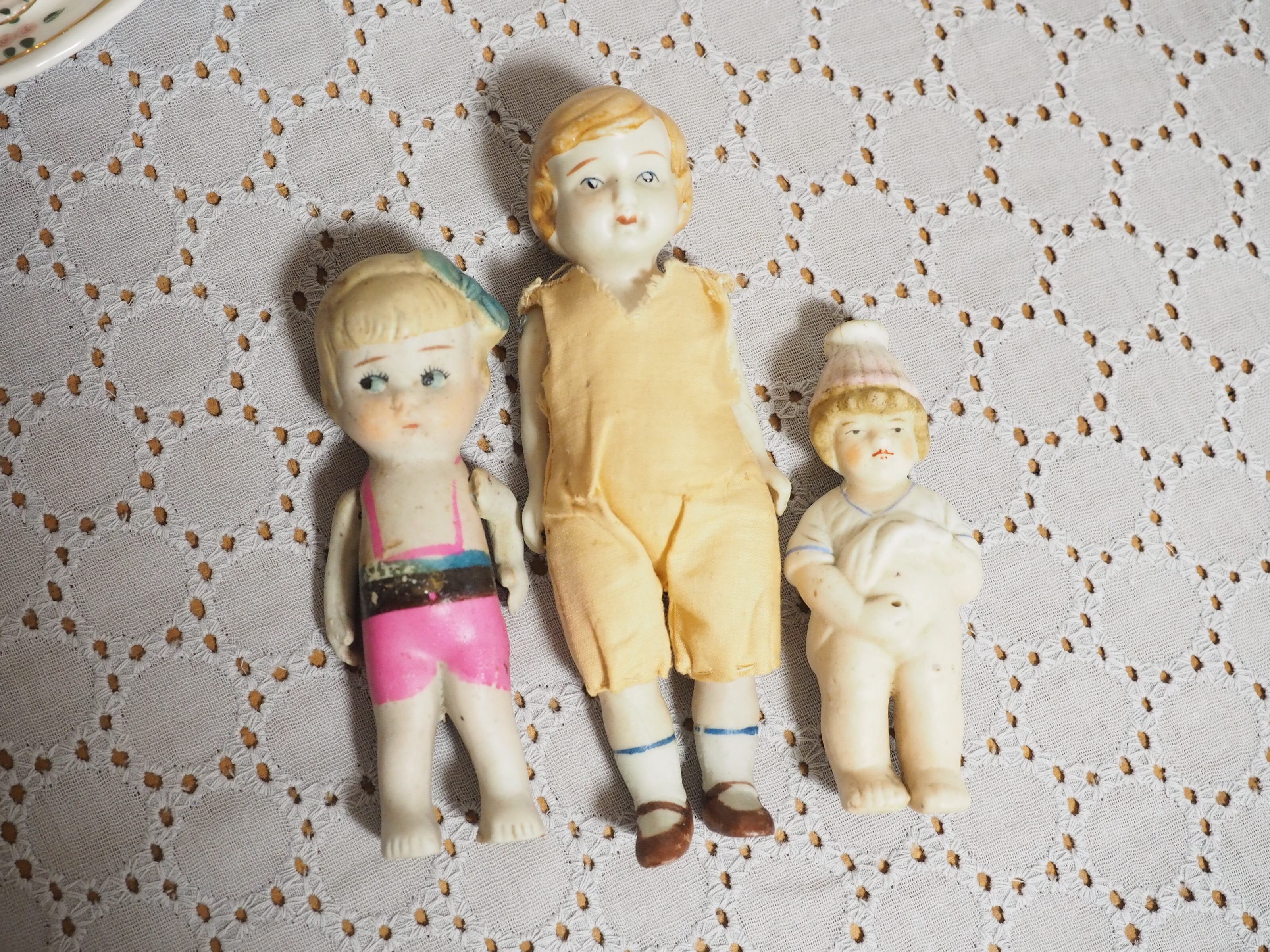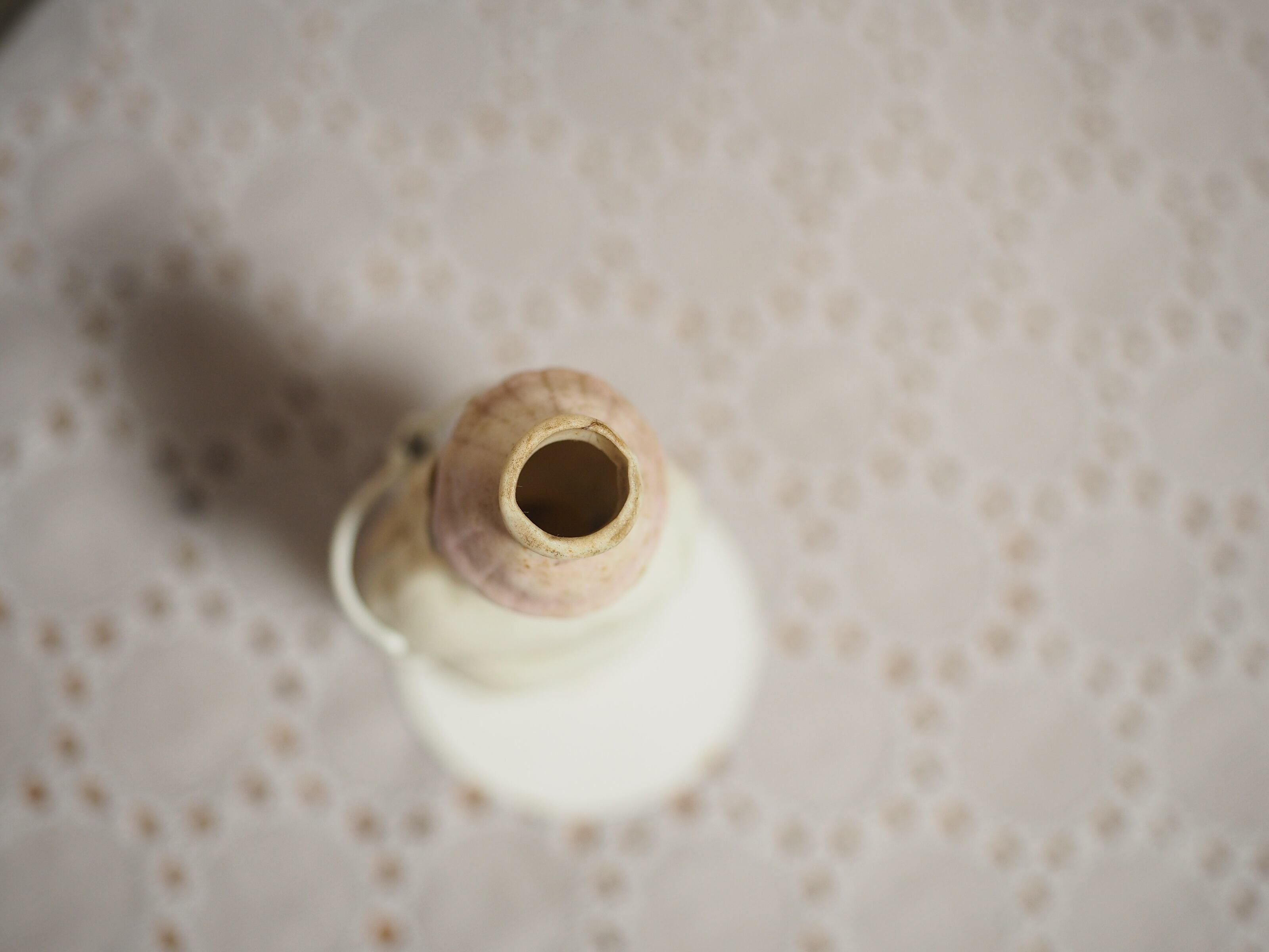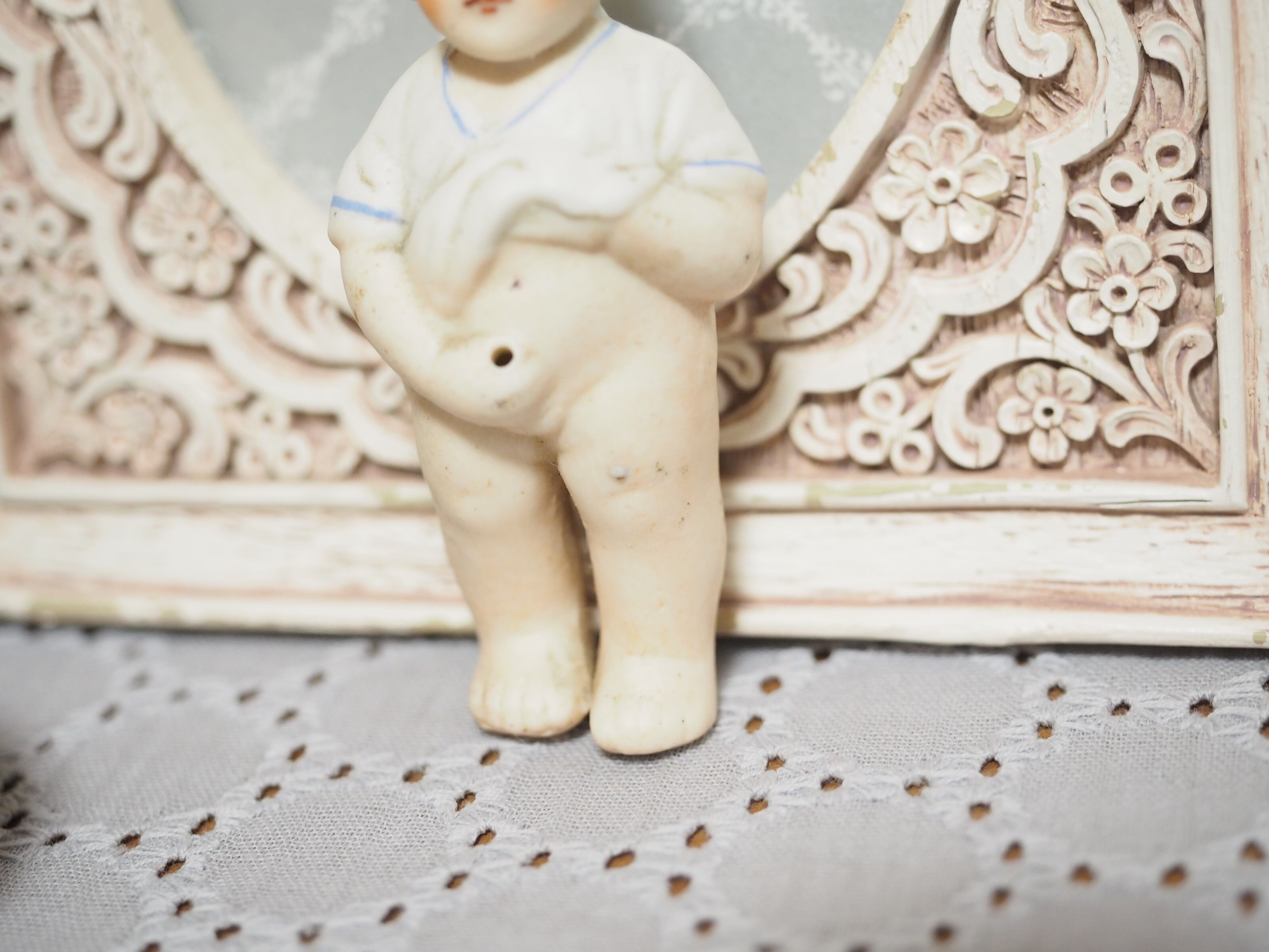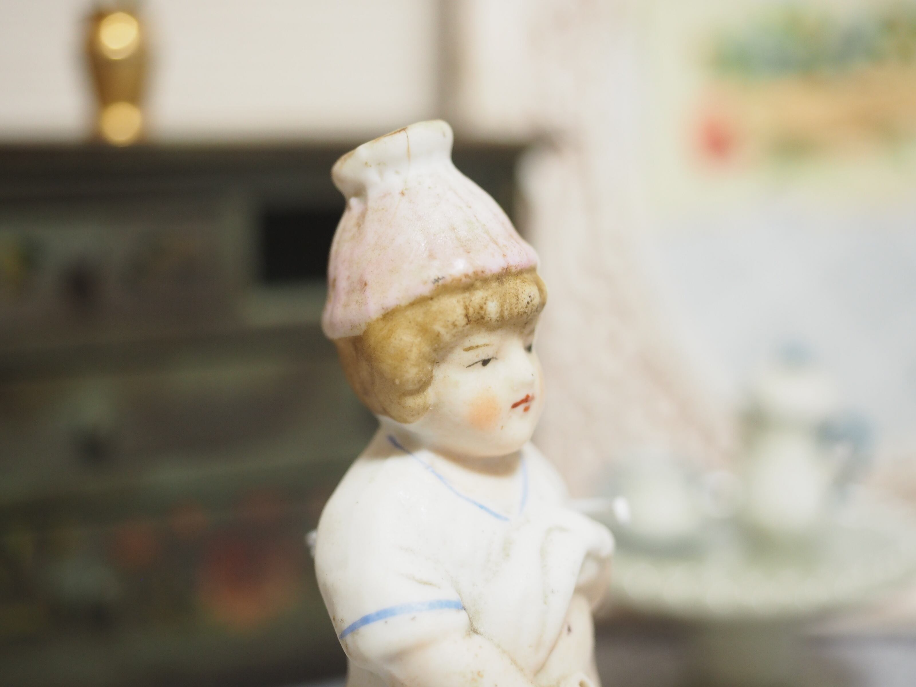 ドイツ製で見られた様式のお人形ですが、国名の刻印はありません。お尻部分にうっすら数字の刻印がありますが、薄く判読が難しいです。