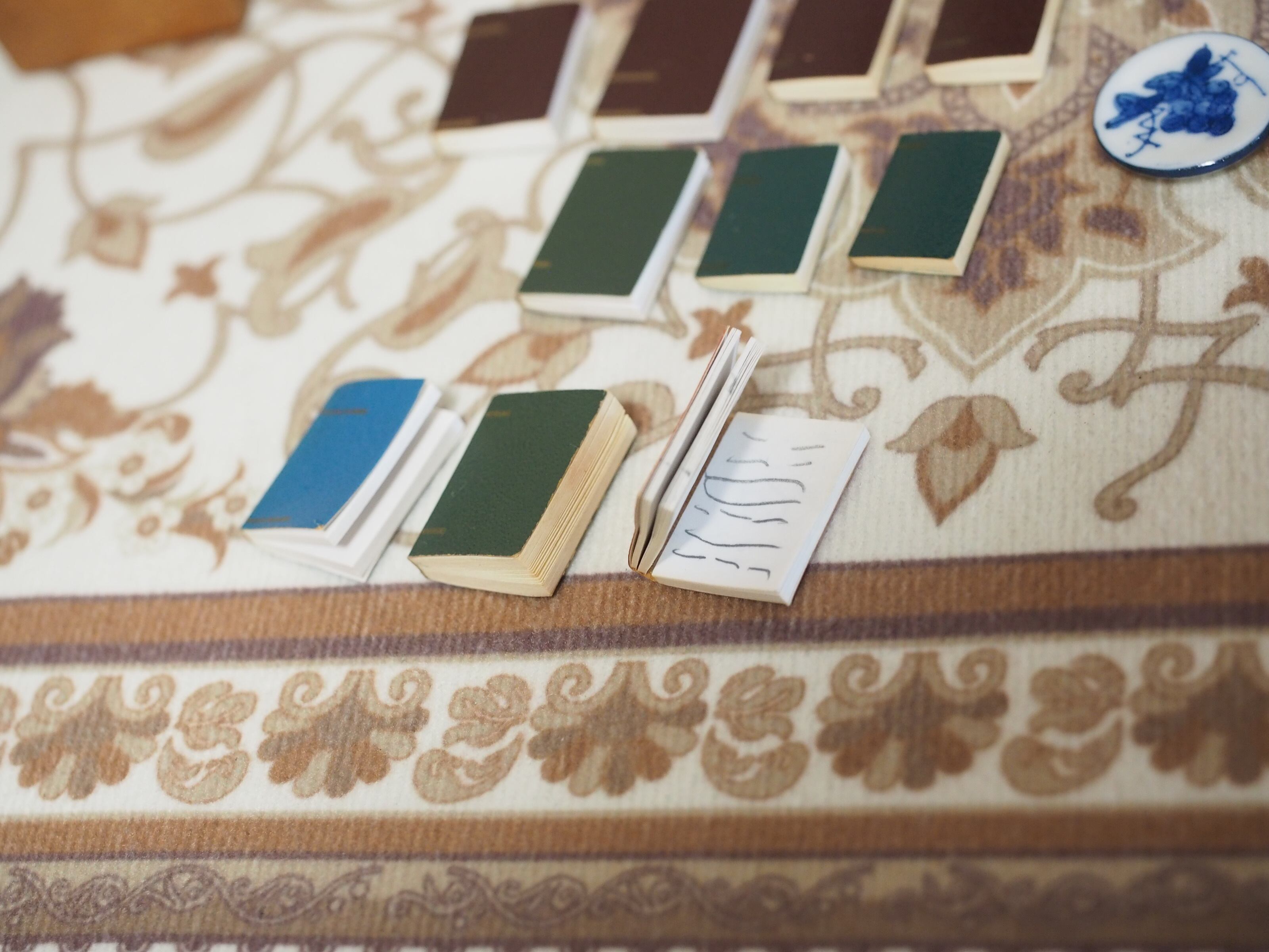 本は金のラインと表紙がレザー風のアンティーク調です。中は白紙のノートになっていて、1冊鉛筆で書き込みがあります。