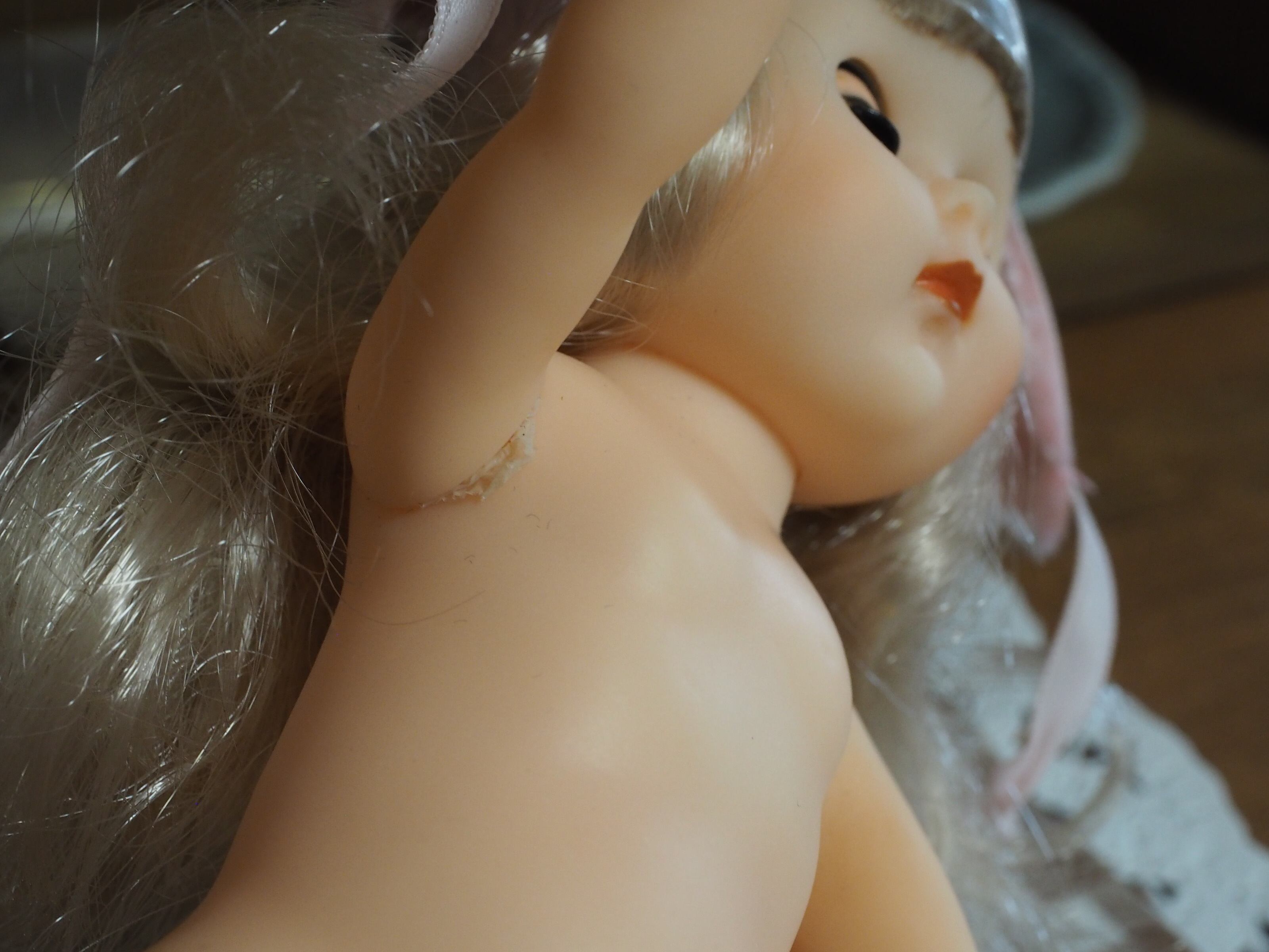 ヘッドドレスにはタグピン、ポリスリーブ付きで状態良好です。