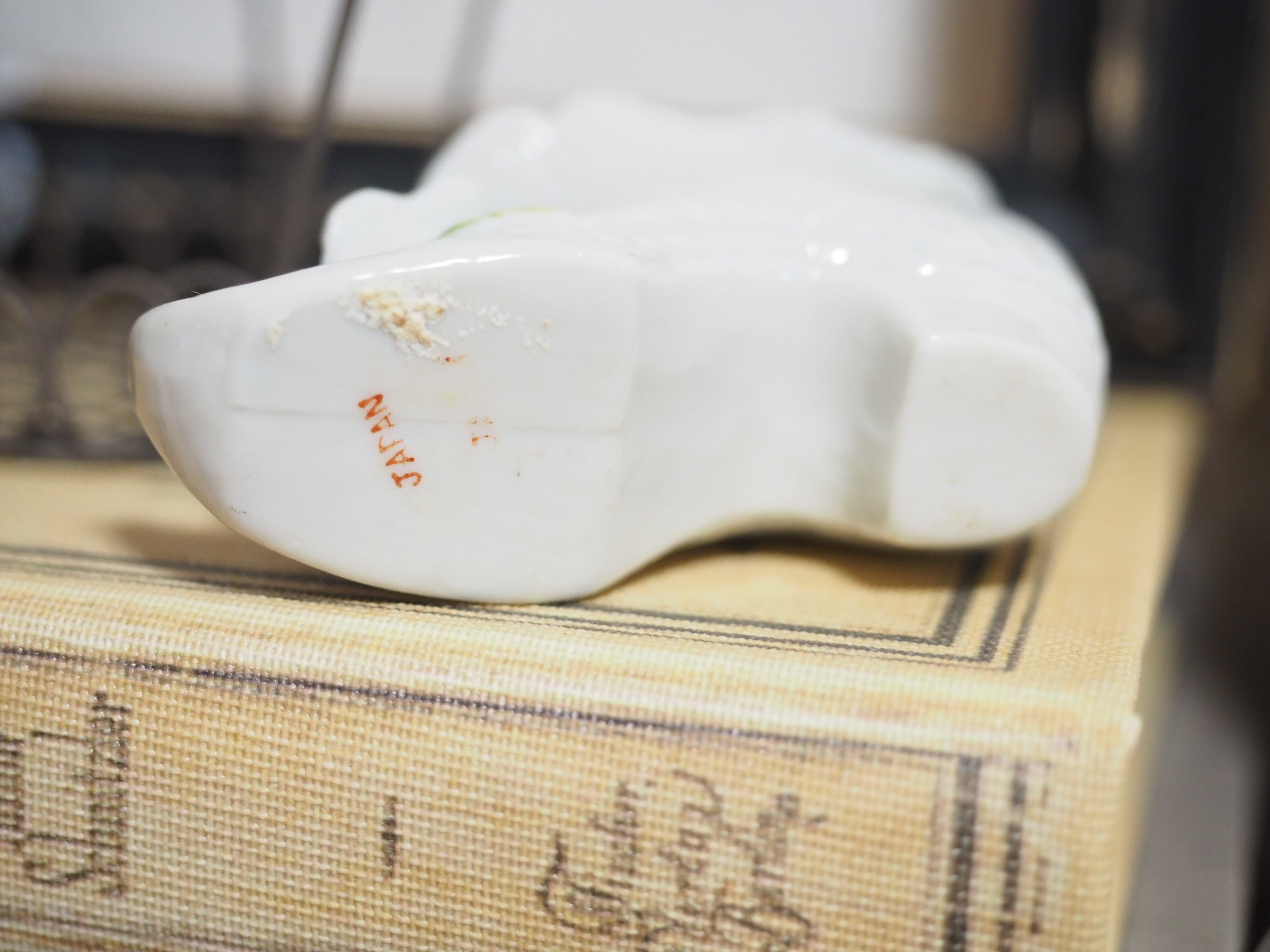 組み合わせが楽しめる白いポーセリンのシューズです。