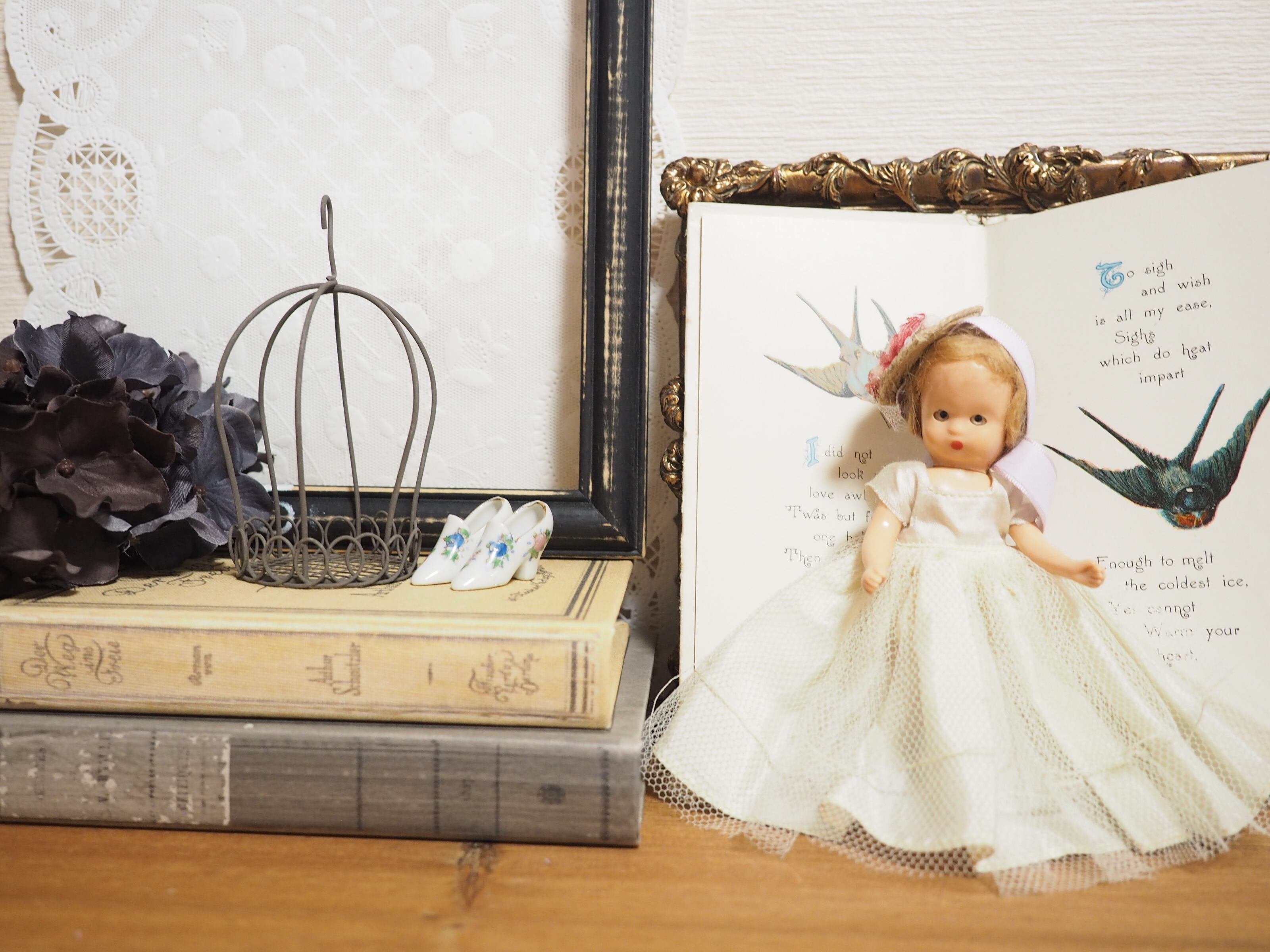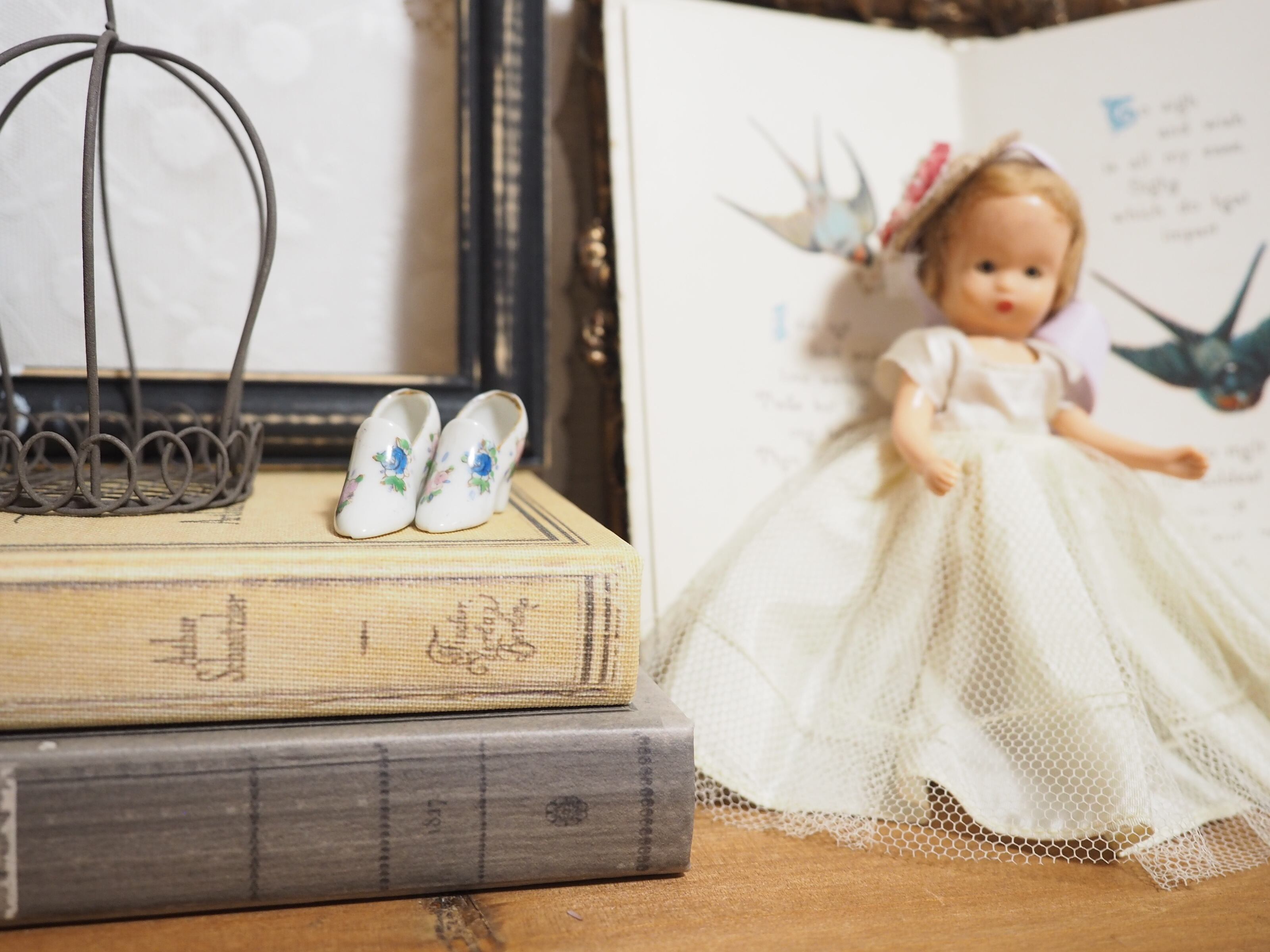 お人形や小物とご一緒に、組み合わせが楽しめる白いポーセリンのシューズです。