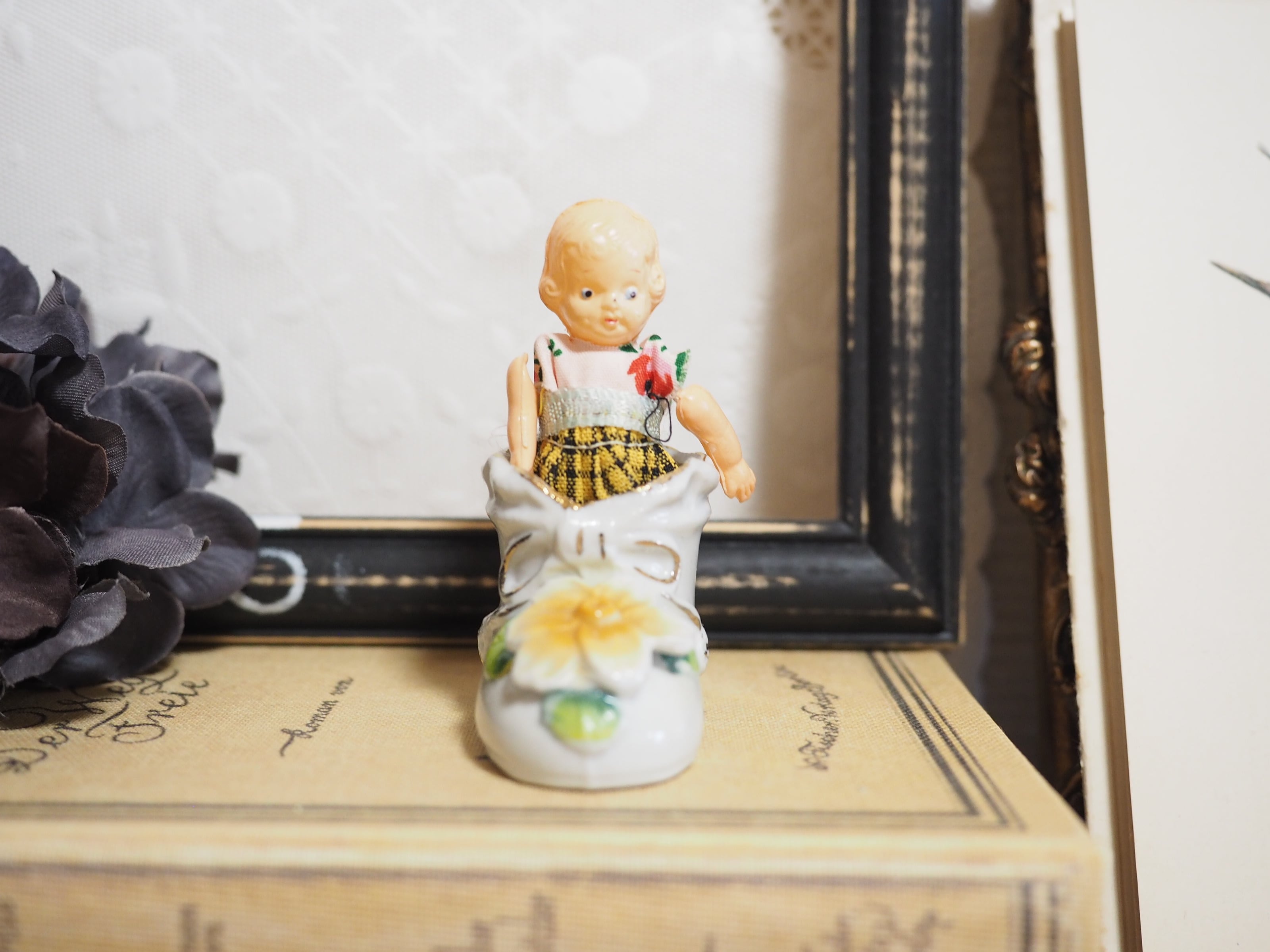 リボンと黄色の花 ポーセリンベビーシューズ