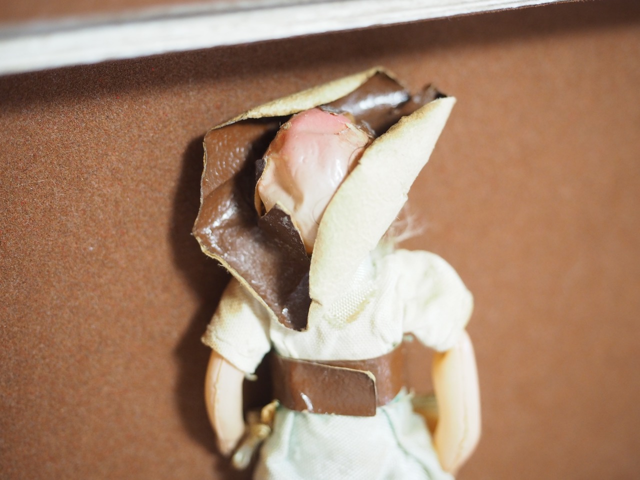 スカーフとパンツは元は薄いグリーンだったようですがベージュがかった色になっています。