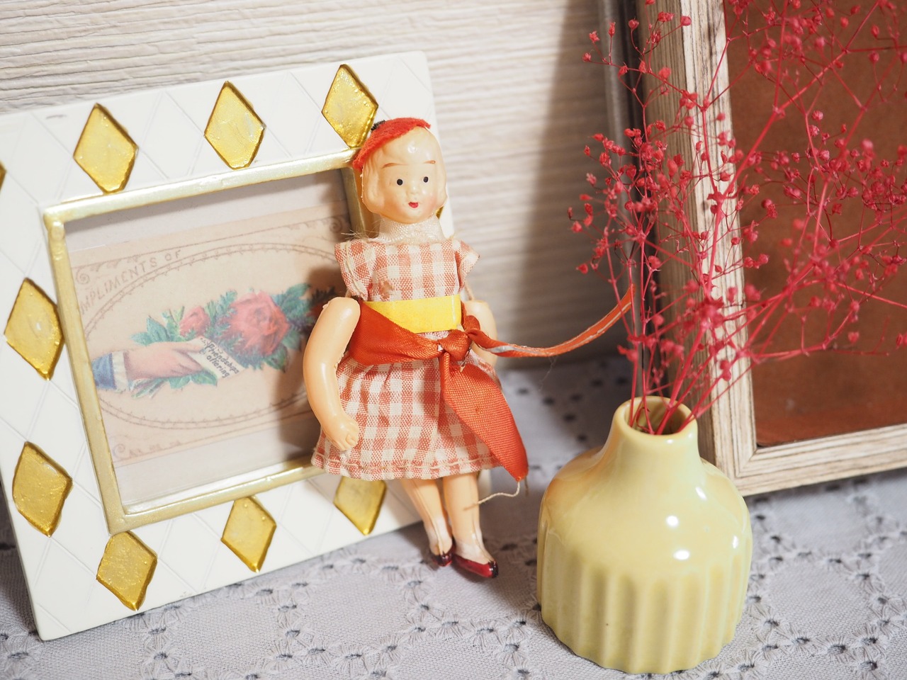 感動するような軽さと、素朴な温かみのあるセルロイドのお人形です。