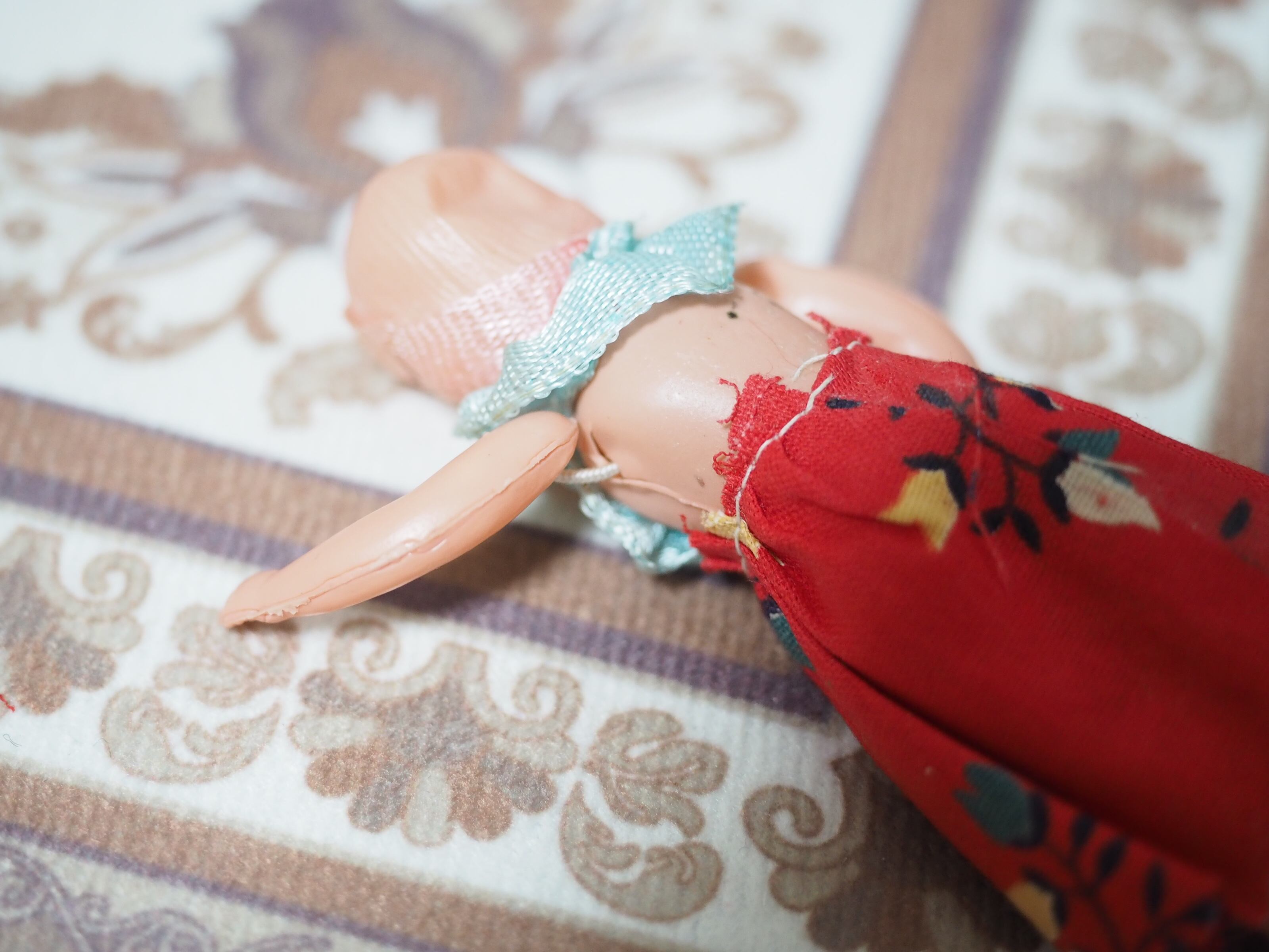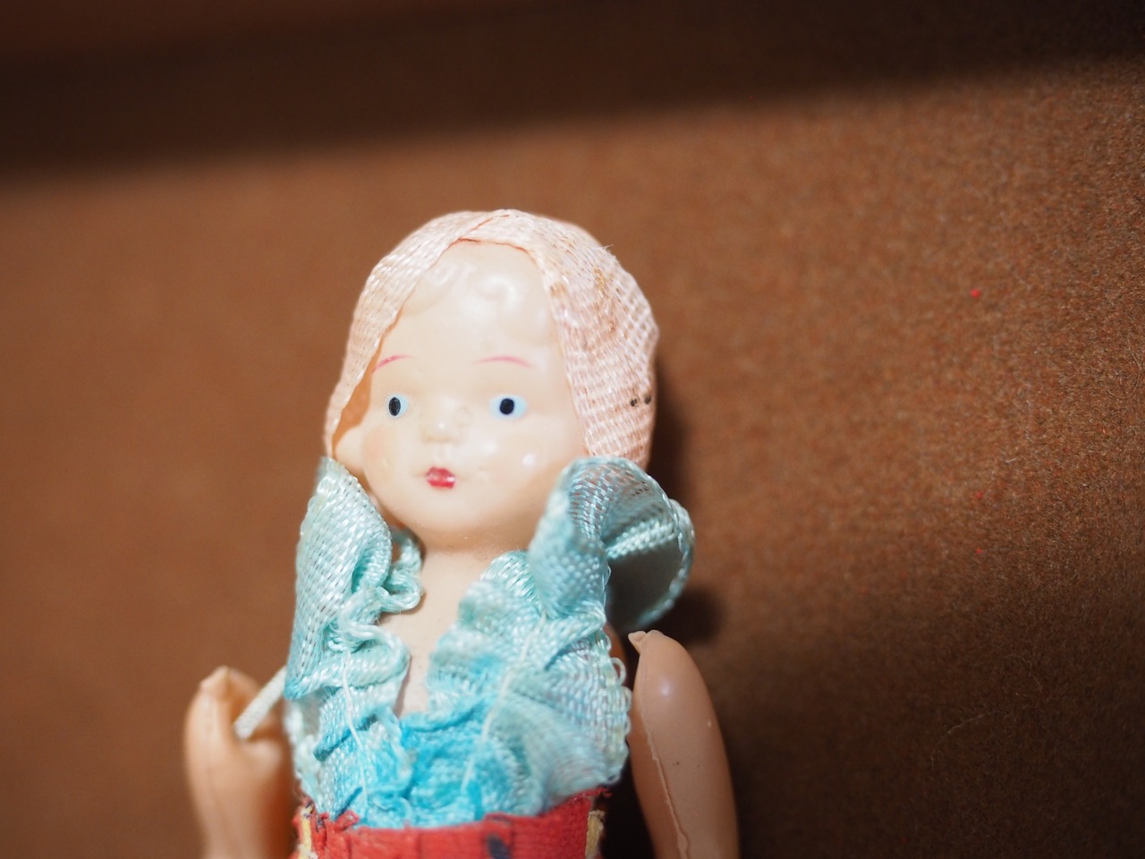感動するような軽やかさと、素朴な温かみのあるセルロイドのお人形です。