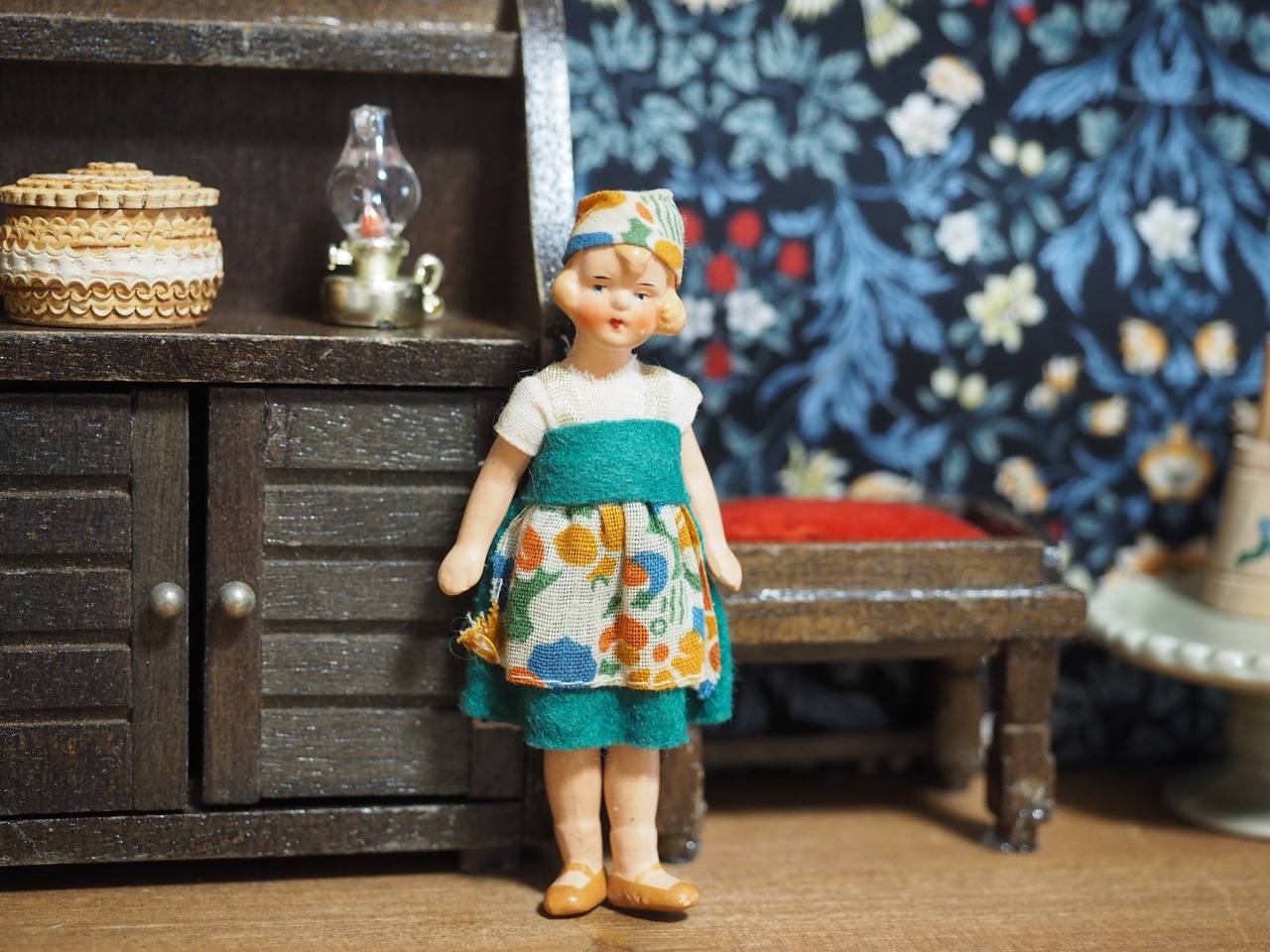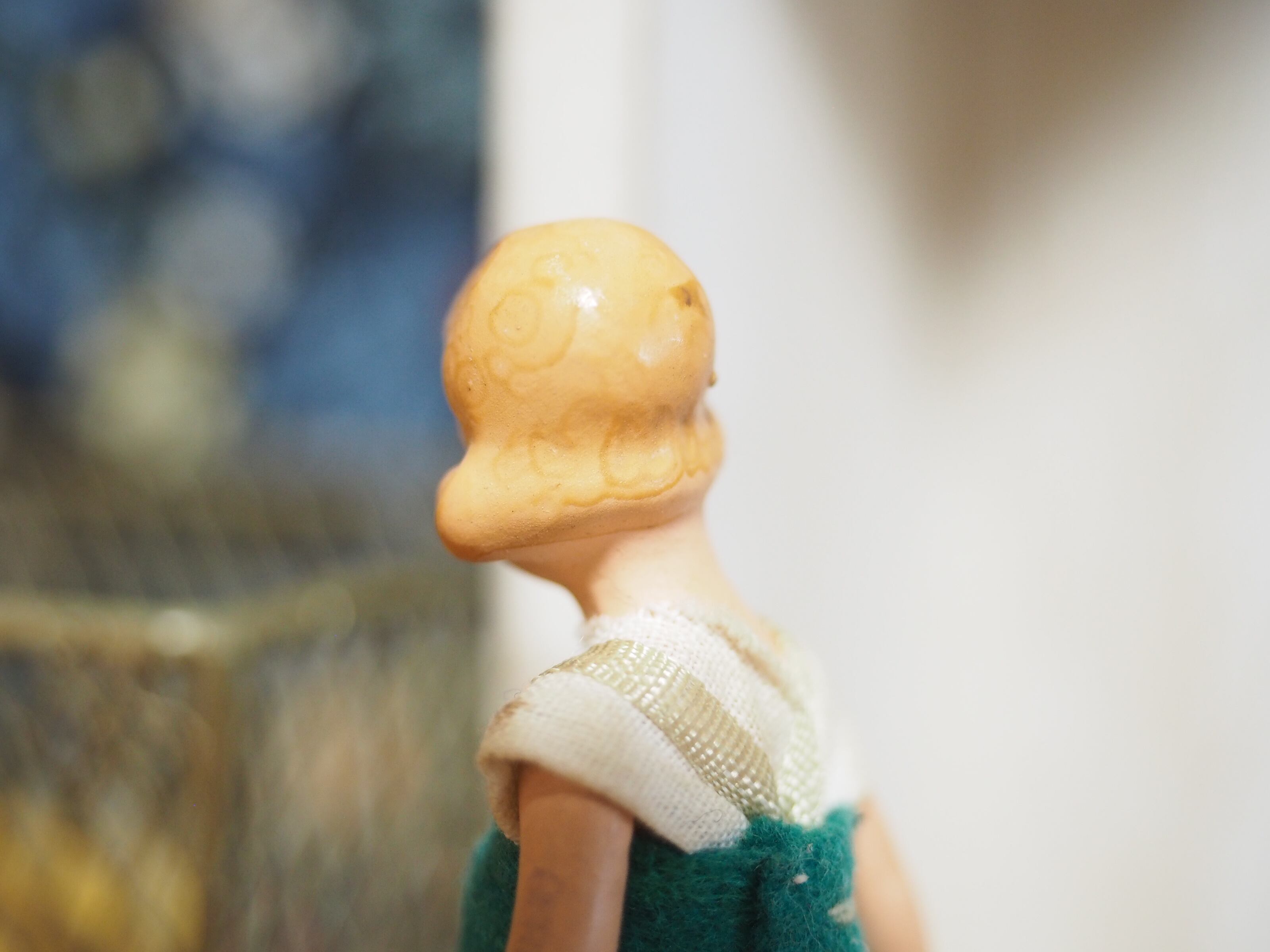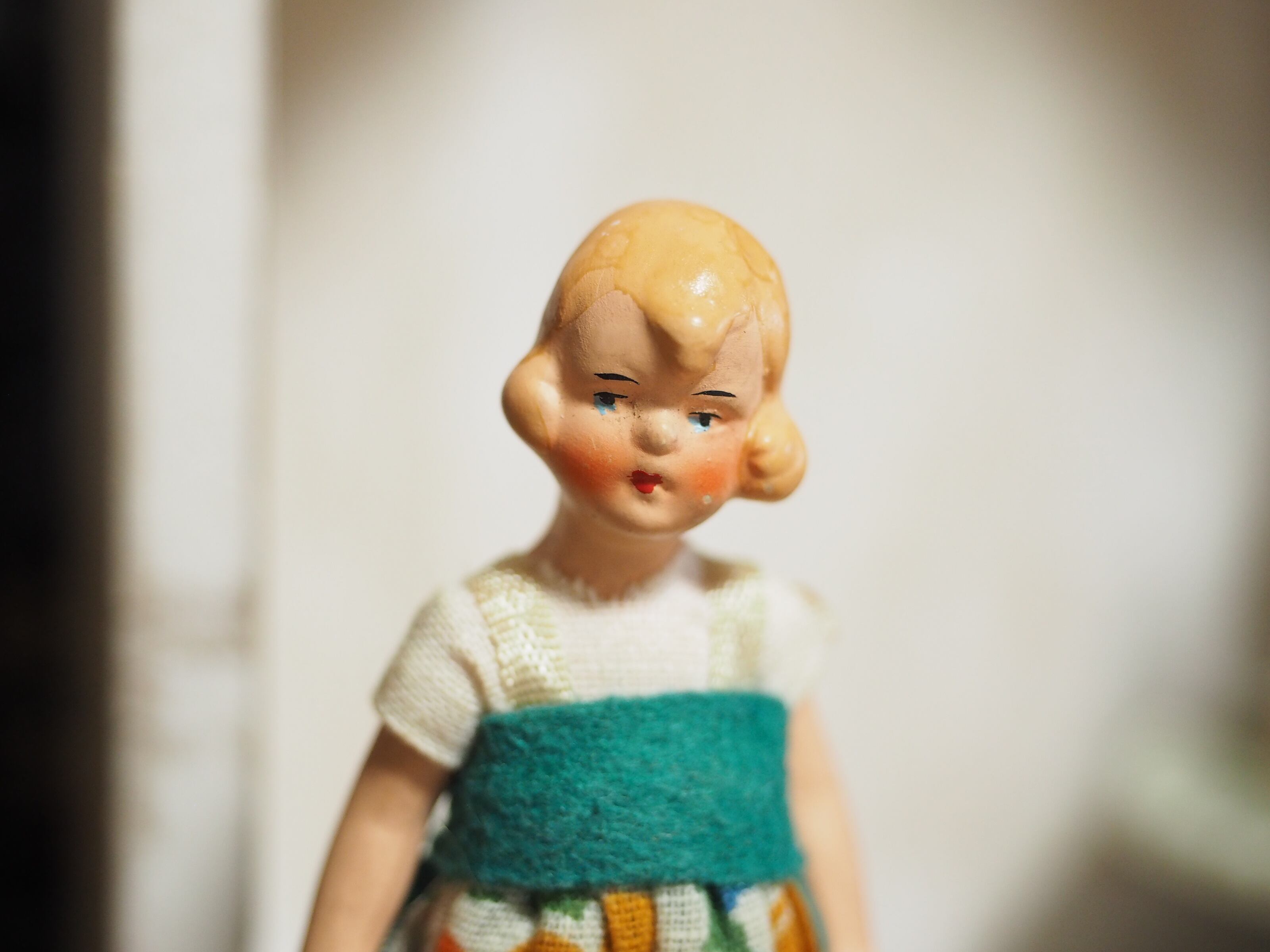 小さくおしゃれなドール、ちょこんと飾っても存在感があり、古いドール家具ともよく似合います。