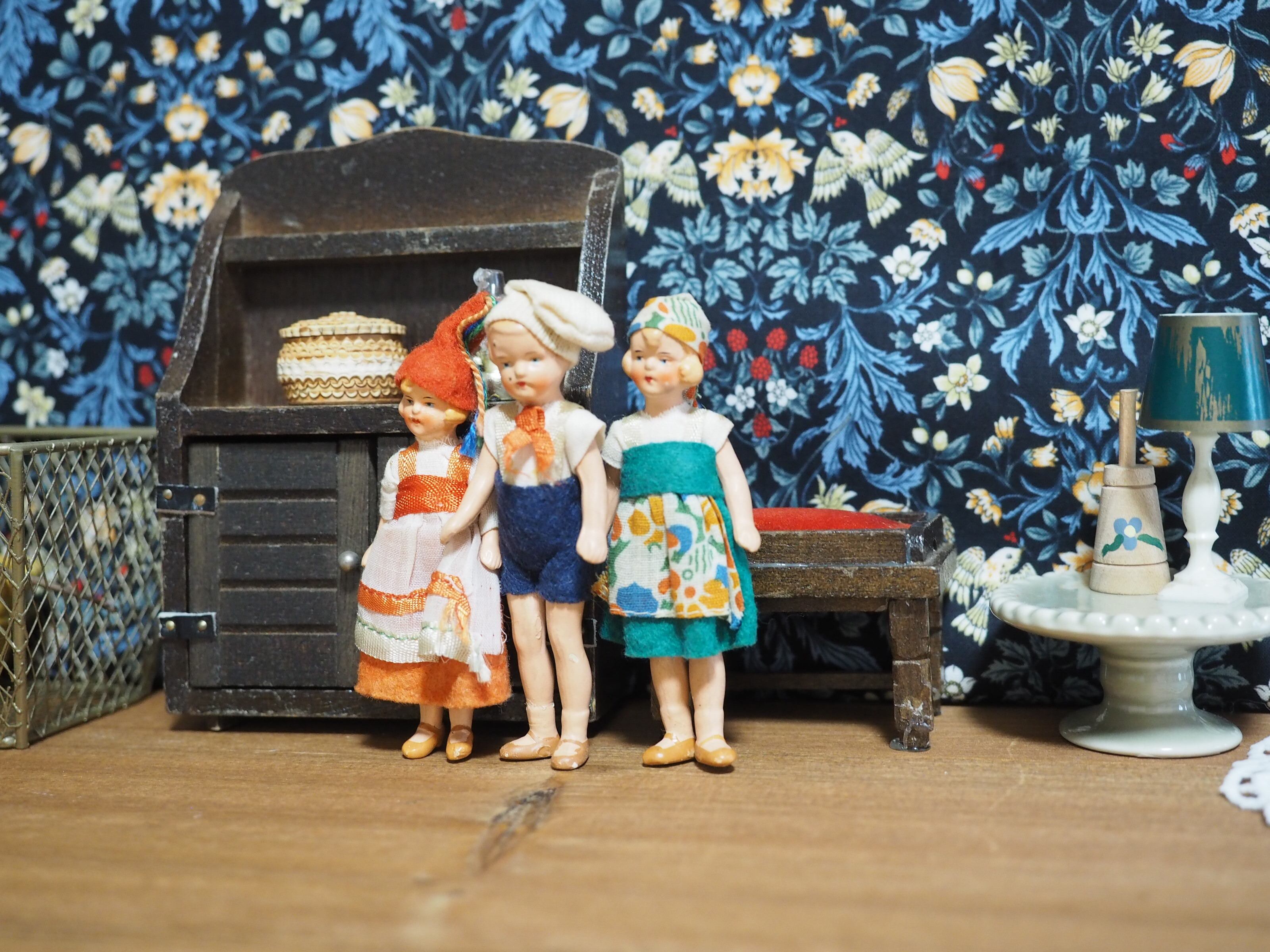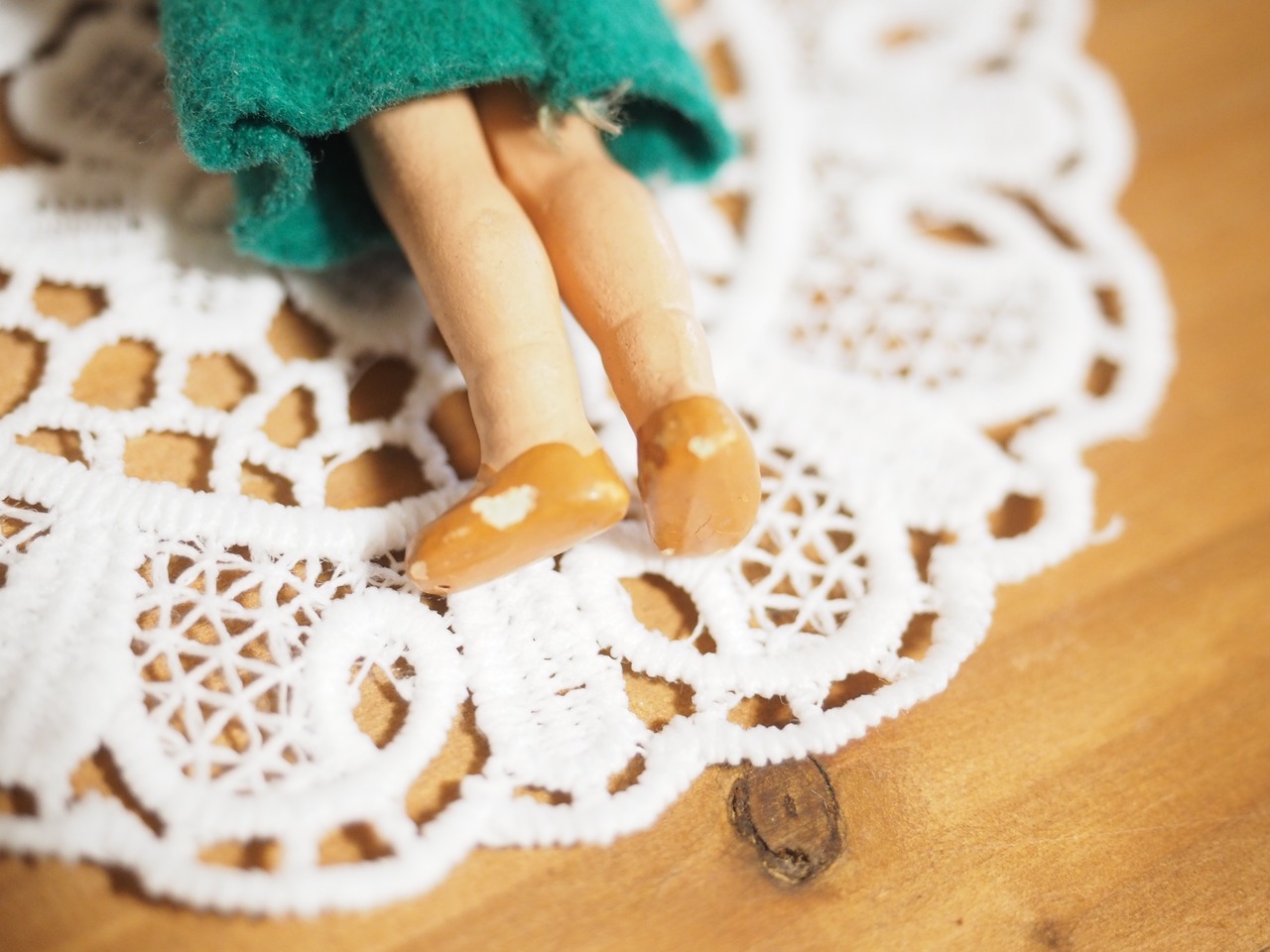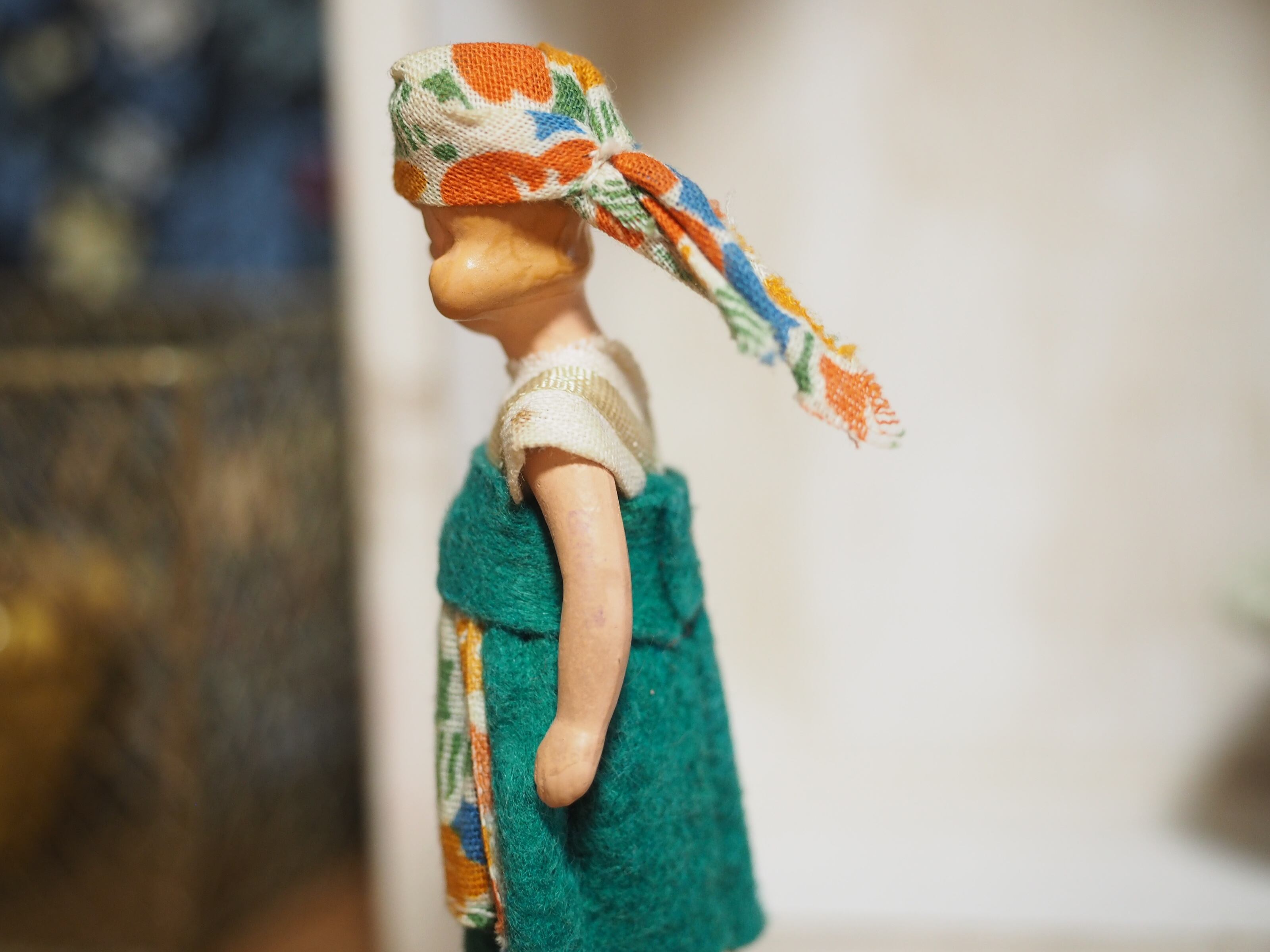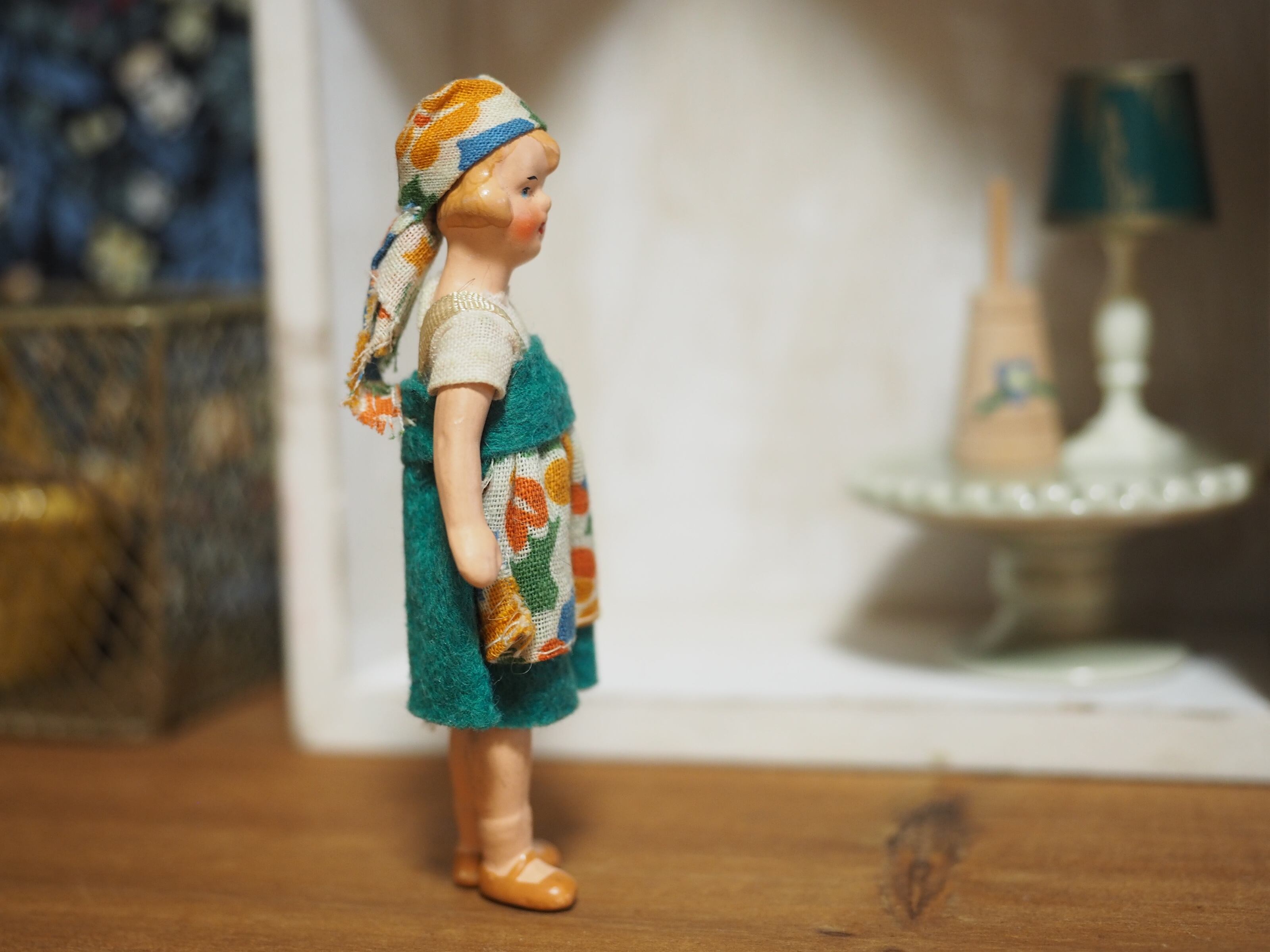 小さくおしゃれなドール、ちょこんと飾っても存在感があり、古いドール家具ともよく似合います。