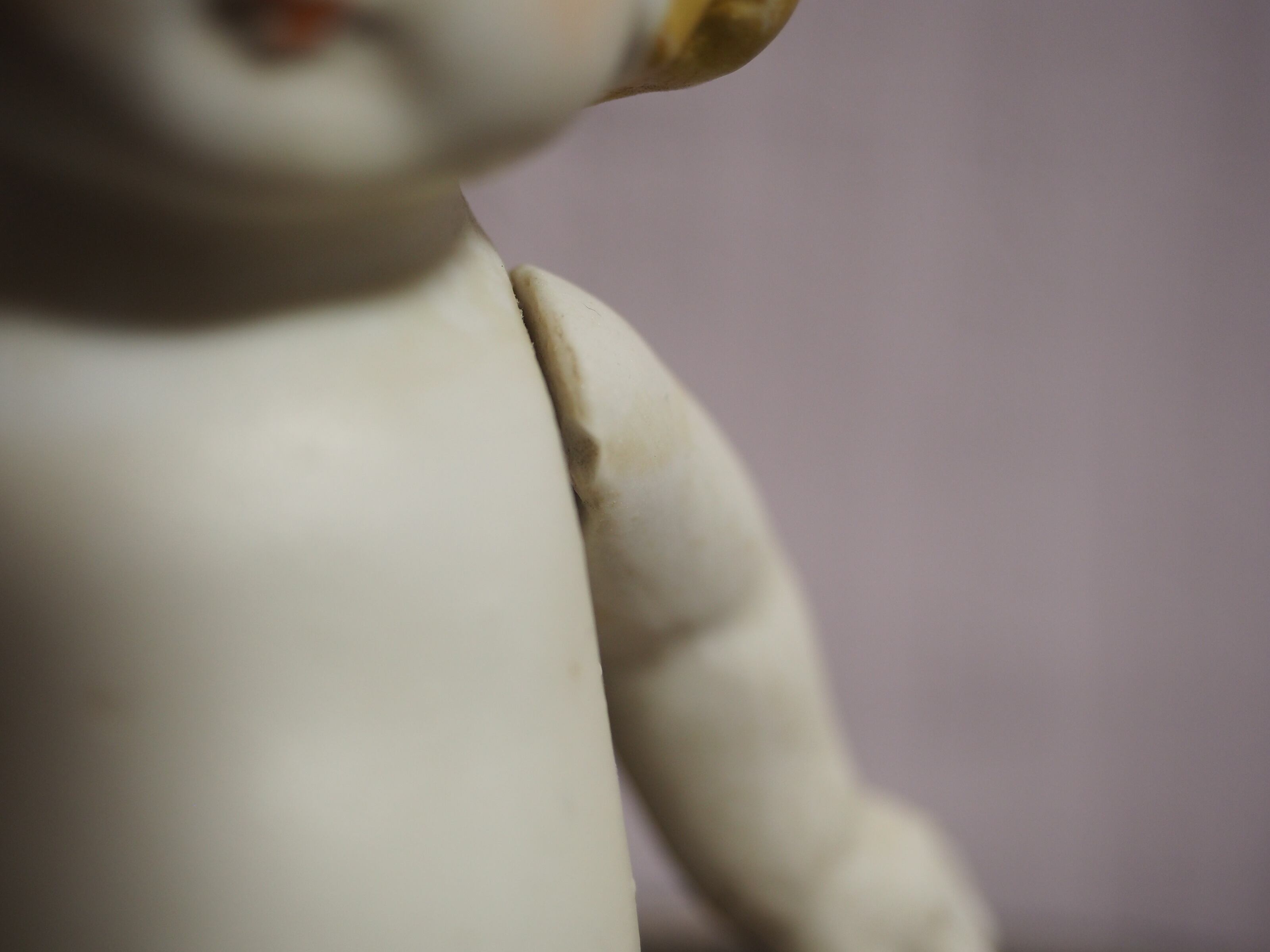 前身頃、お顔はやや白から黄色がかっていて、チークがほんのり薄いピーチ色、色白がきれいなドールです。