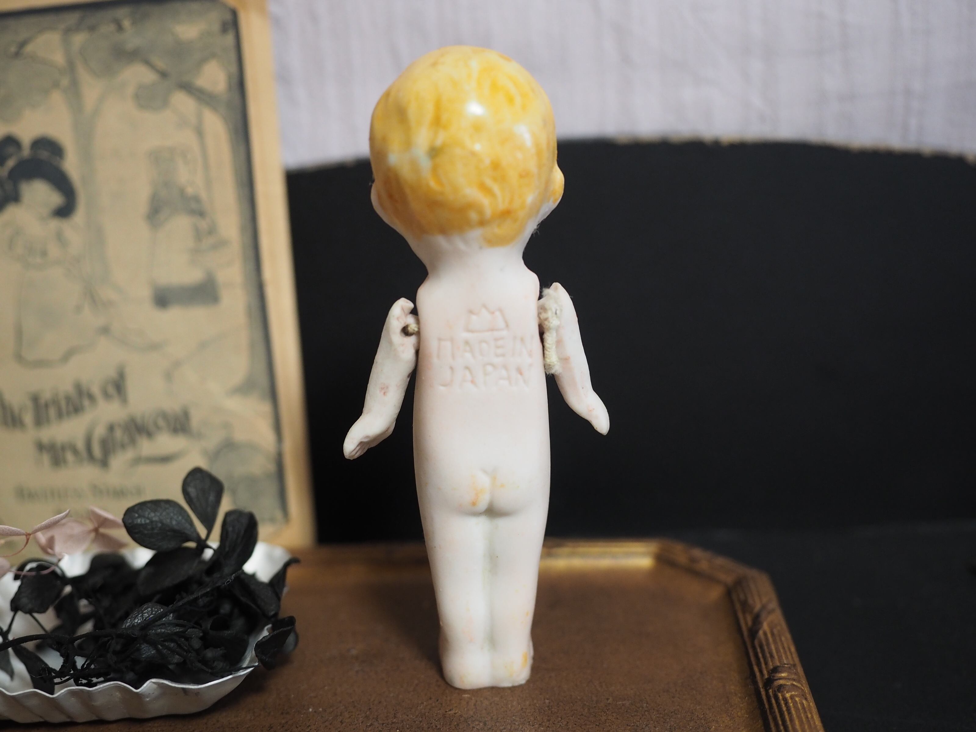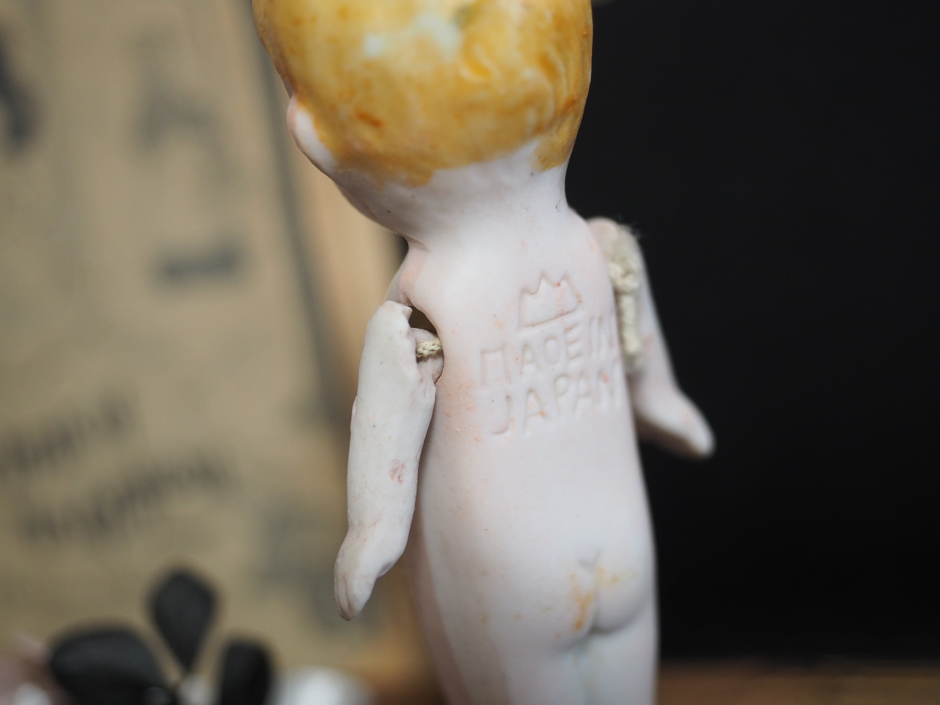 背中にMADE IN JAPAN刻印、山型のメーカーマーク 古い時代の手活人形