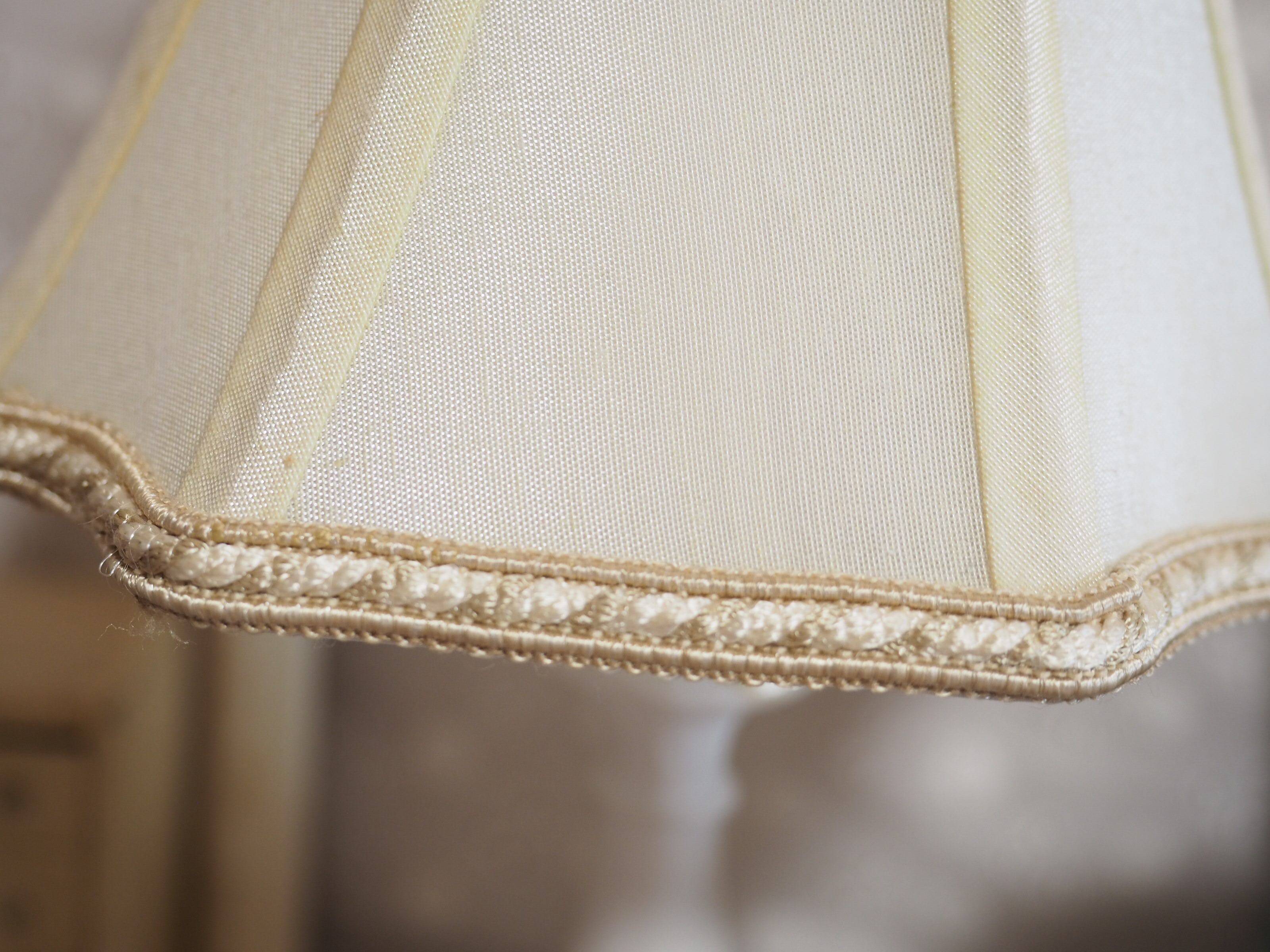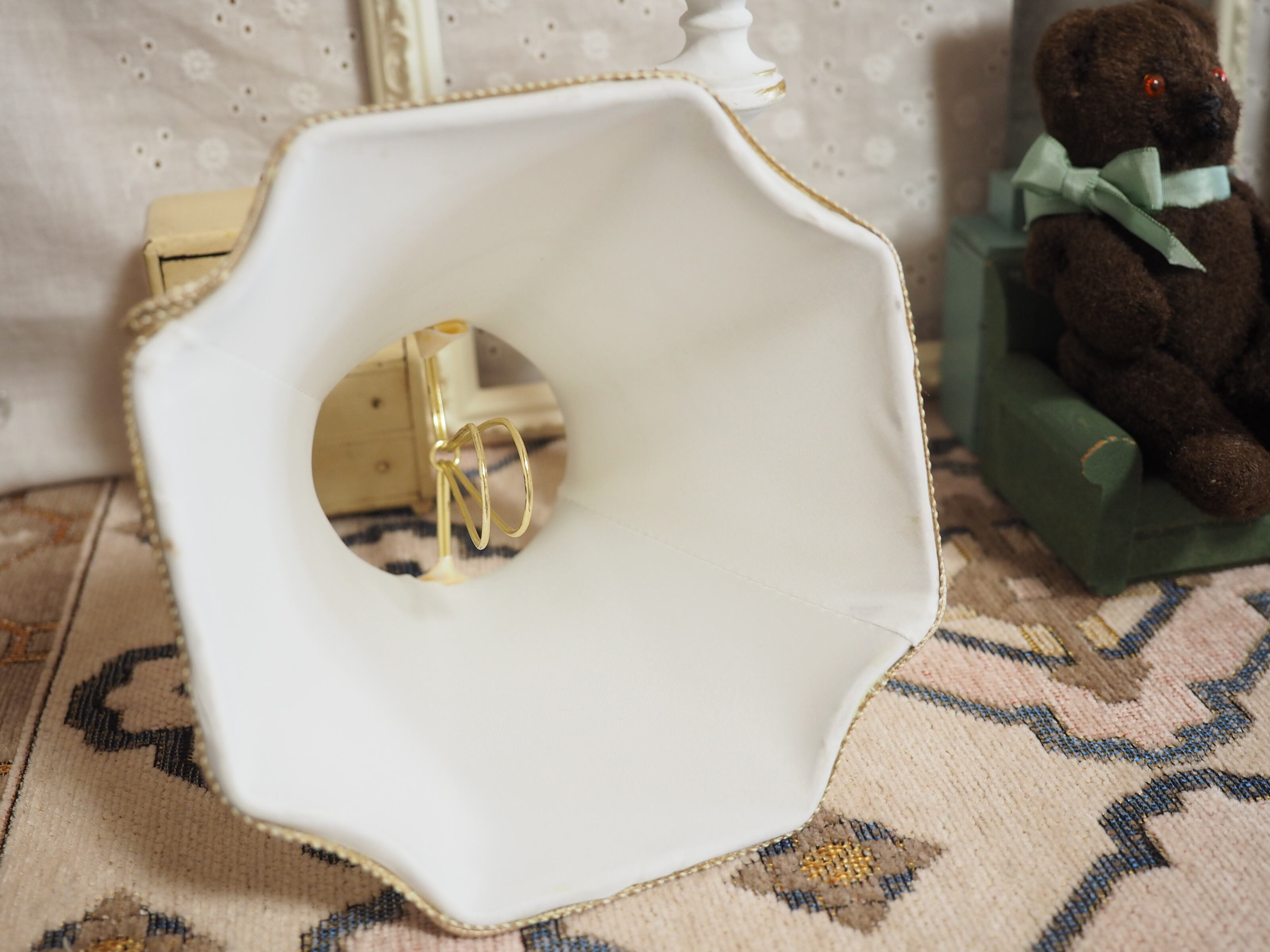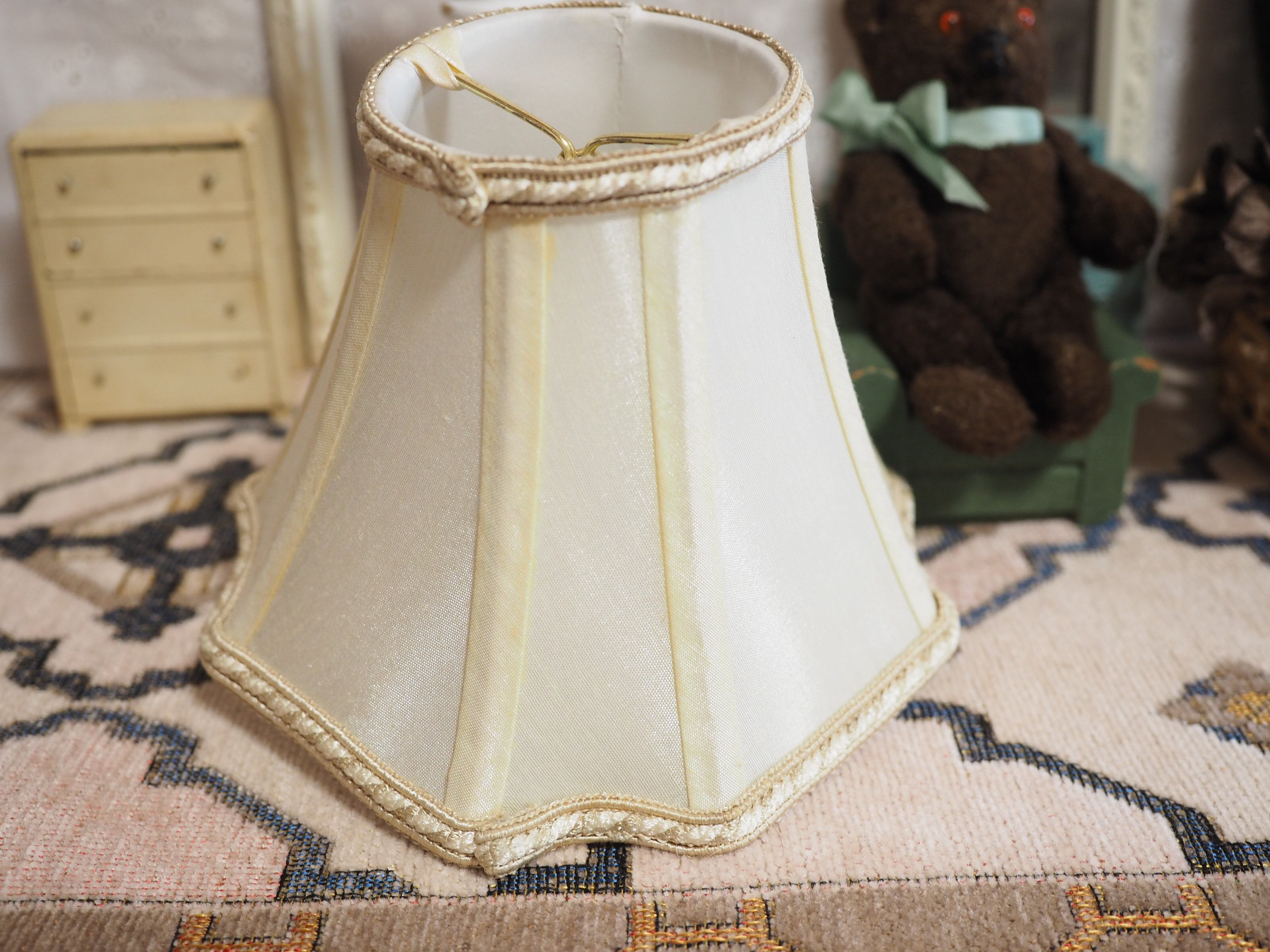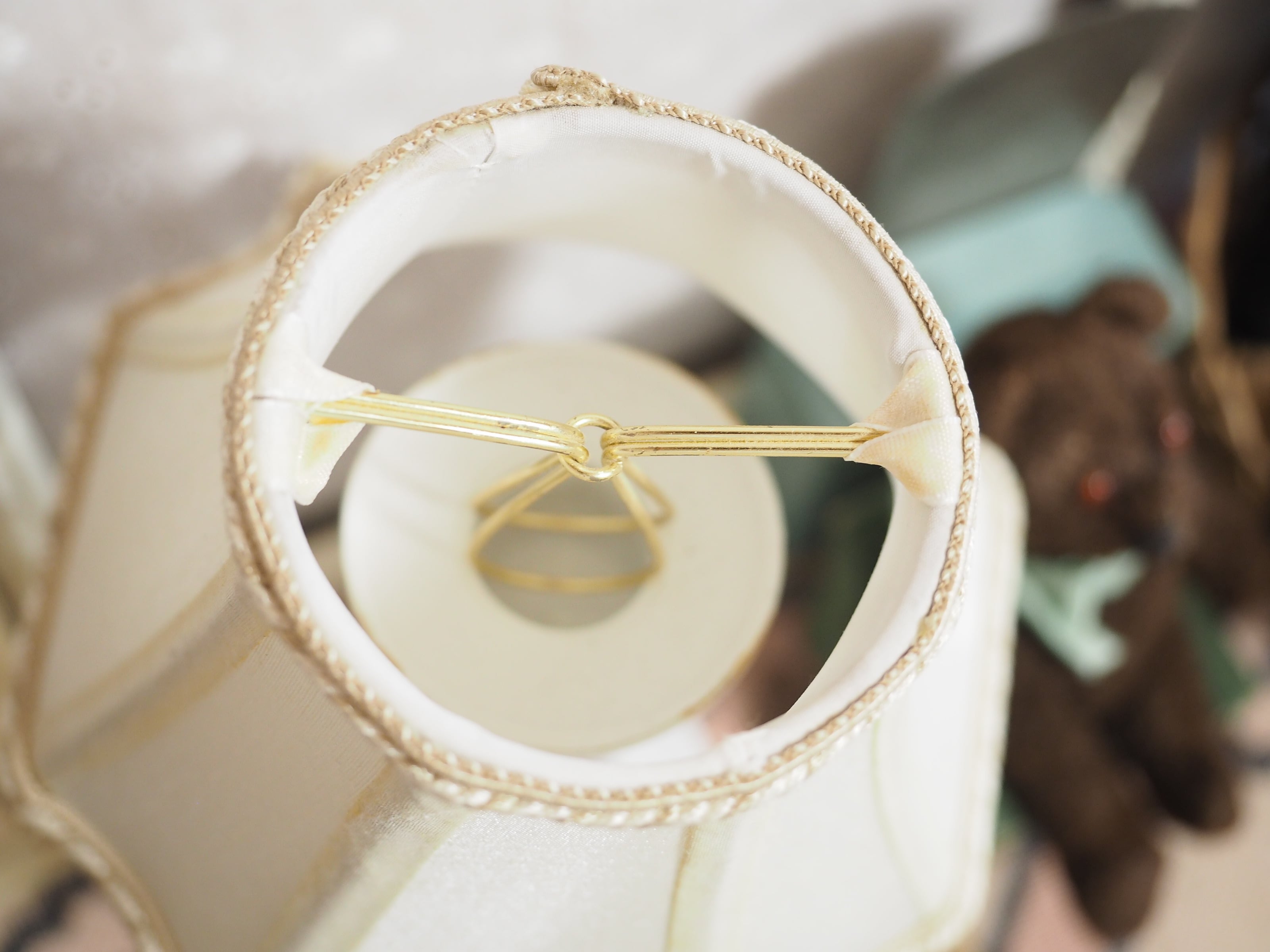 優しいクリーム色にブロードリボンがポイントのランプシェードです。