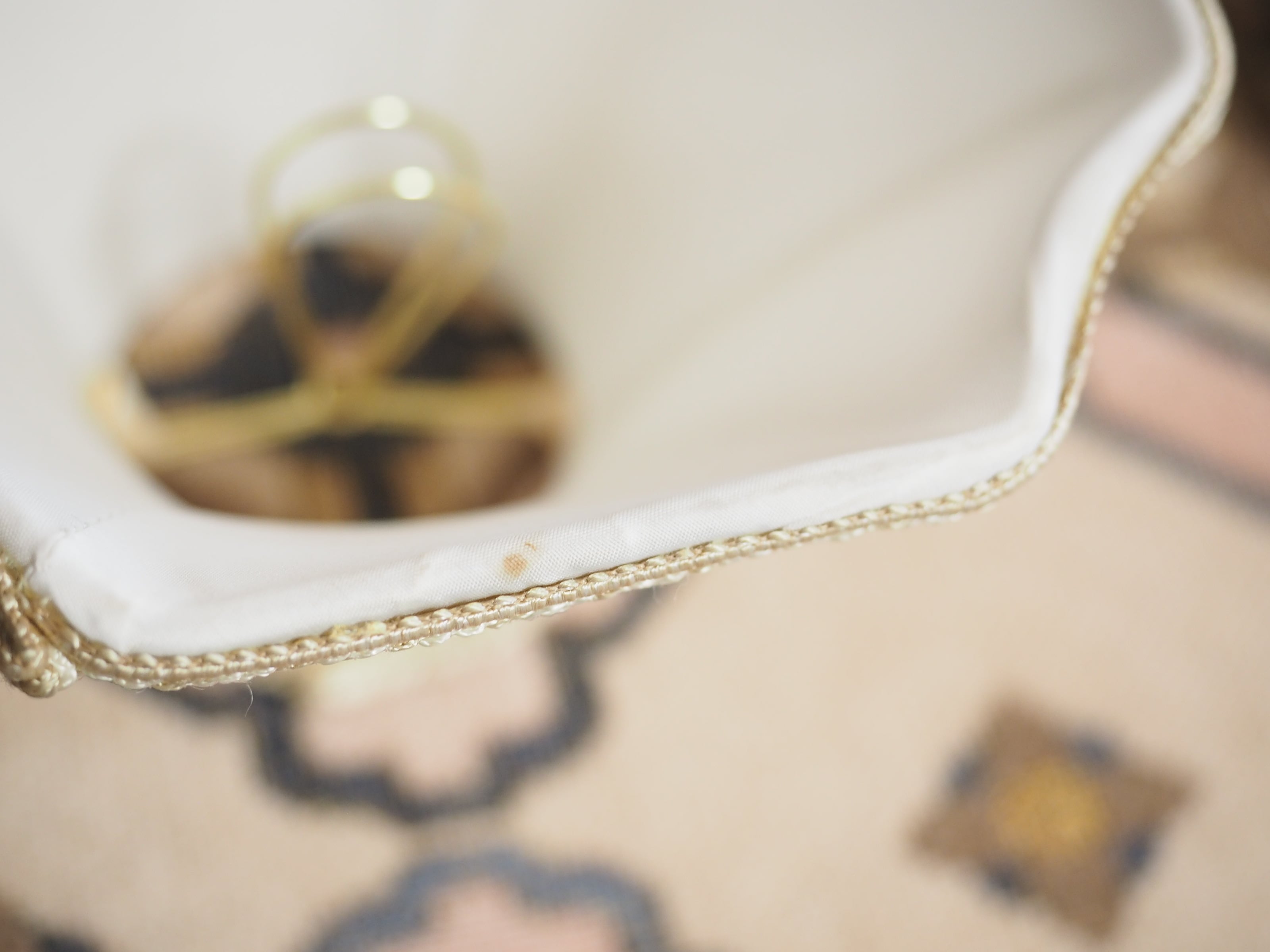 金属ワイヤーを取り付けている内側のリボンと、内布上部に経年の変色がございます。
