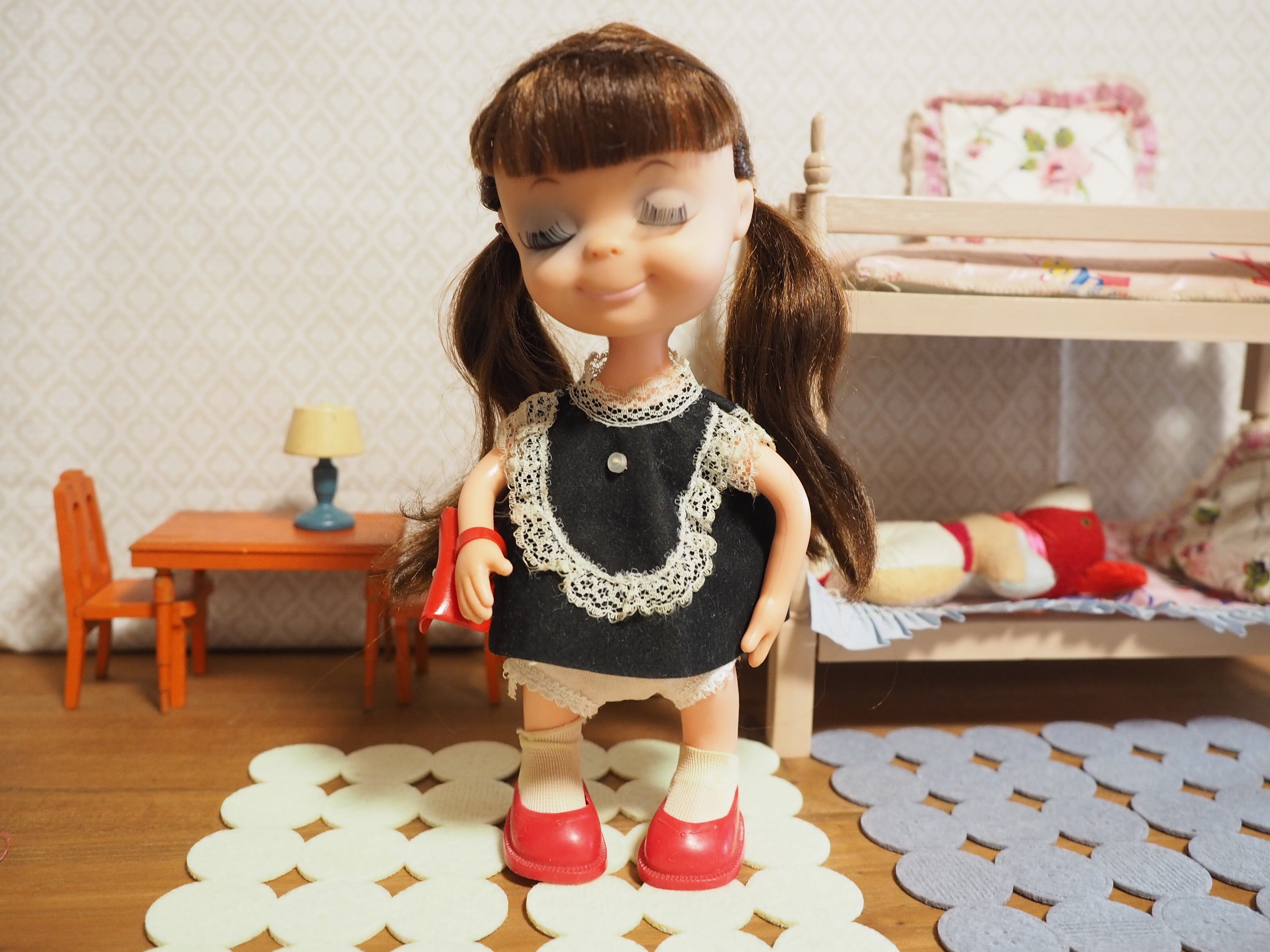 オリジナルのワンピースは黒い部分に色あせが感じられます。レースはきれいな状態です。