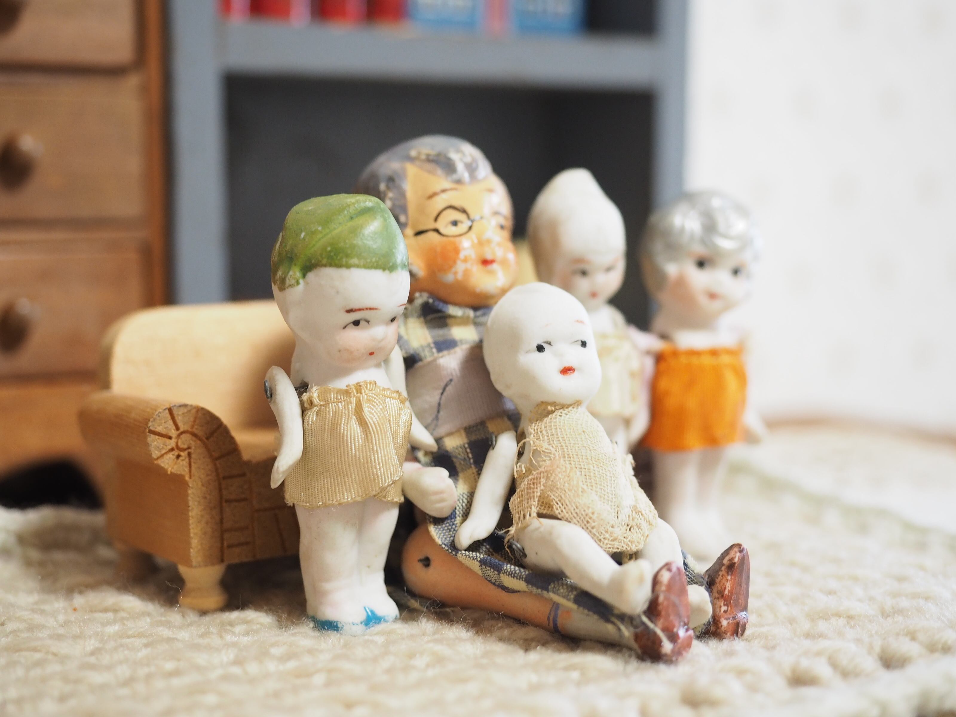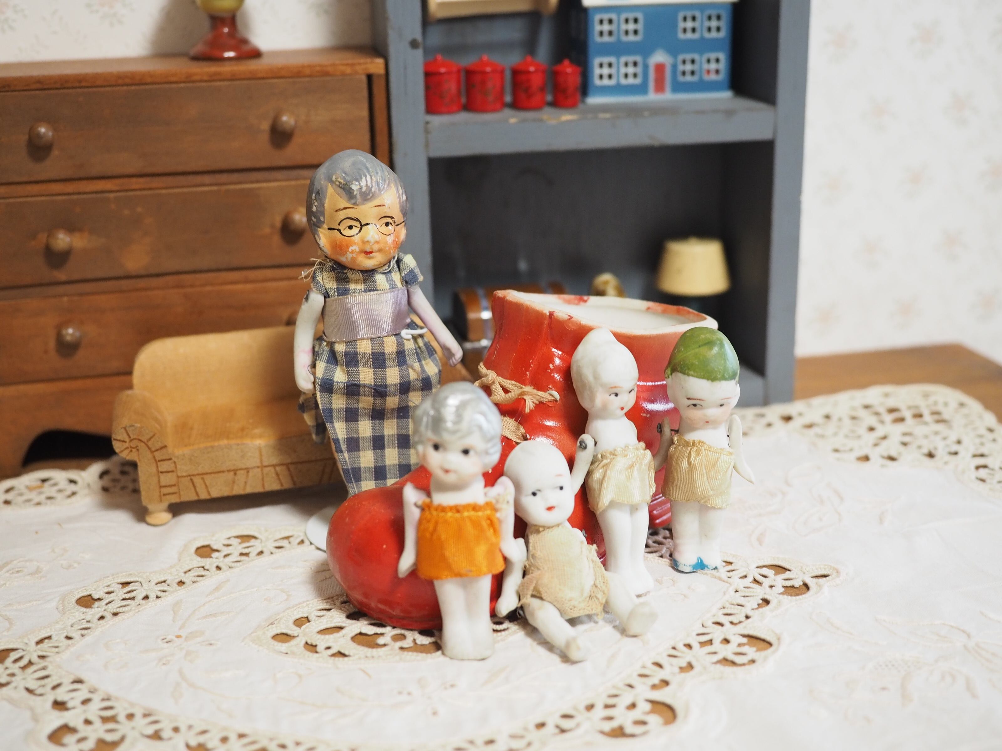 追加画像(「靴に住んでるおばあさん」陶器靴・ビスクドール5体セット)