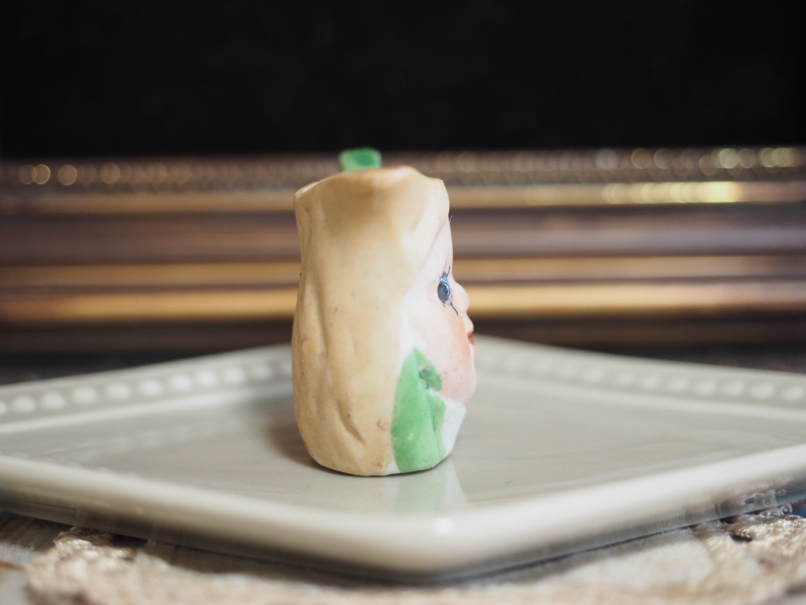 100年近くも前の陶器で、お顔の造形も素晴らしく、ミニチュアのサイズながら年月を経た存在感があります。