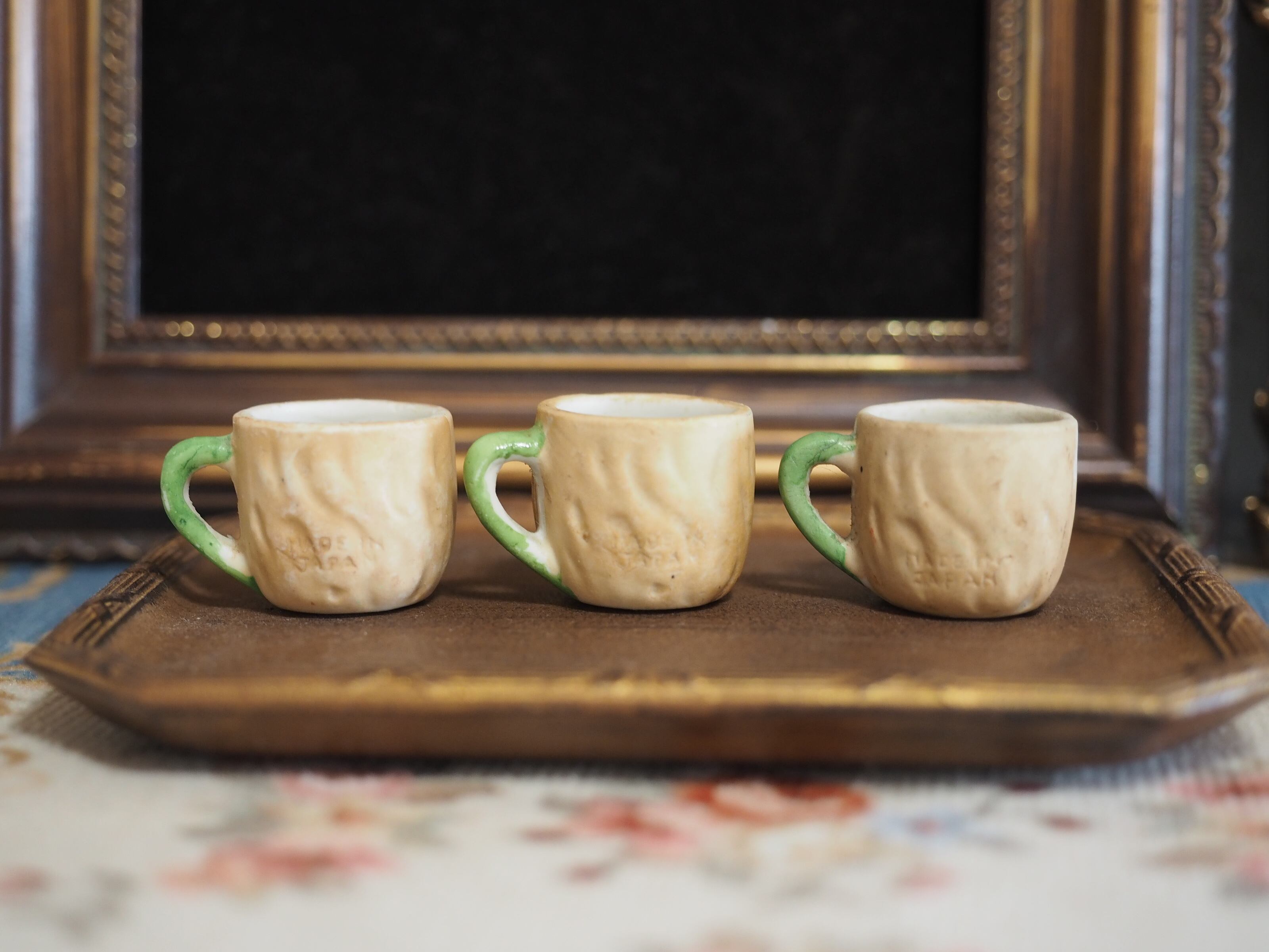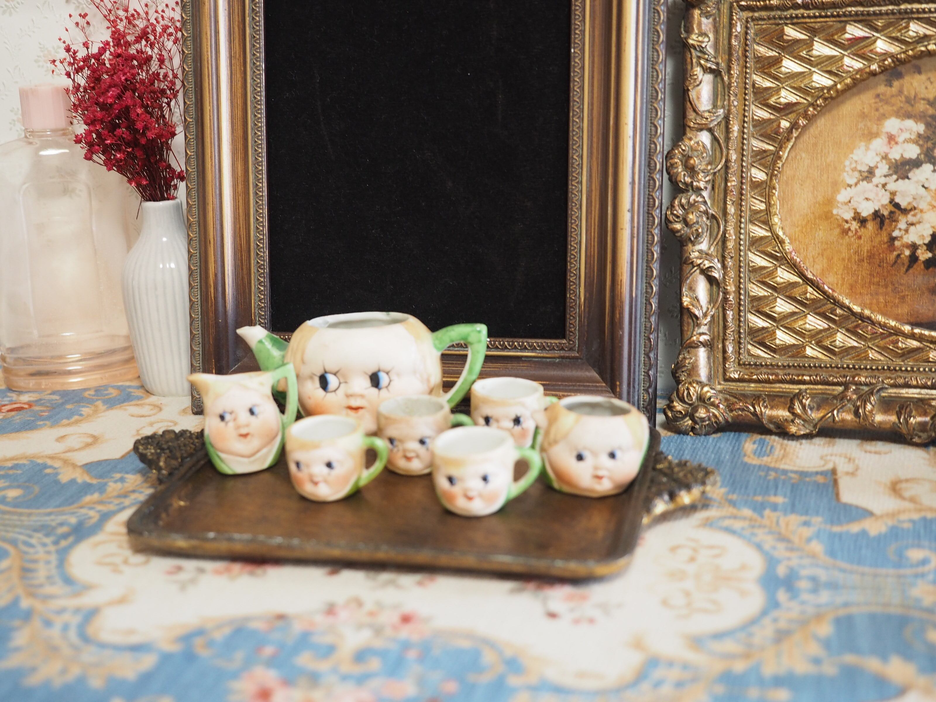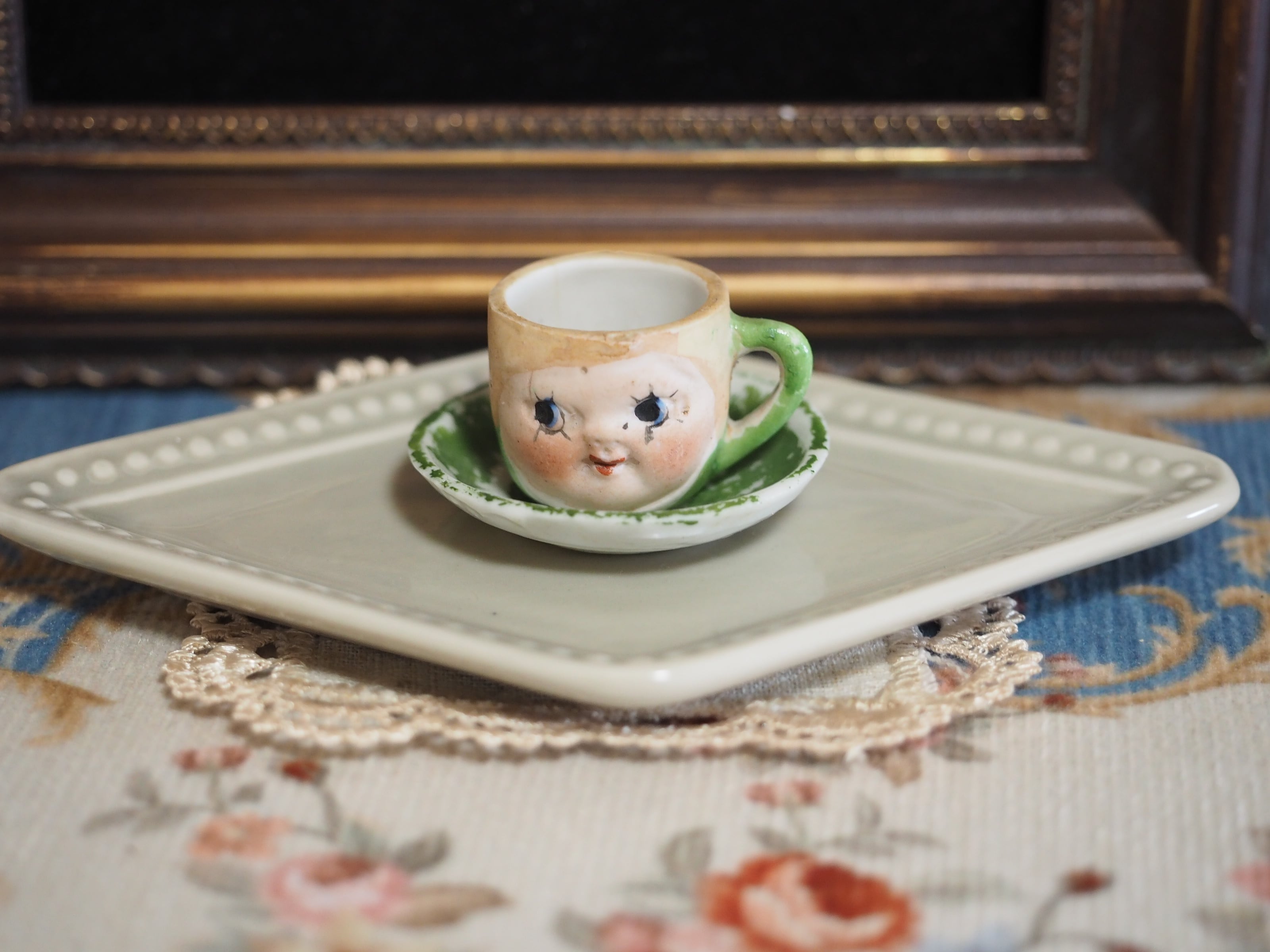 1920年代に日本で製造されたフェイスデザインのミニチュアティーセットのうち、こちらはカップ&ソーサー(B)です。