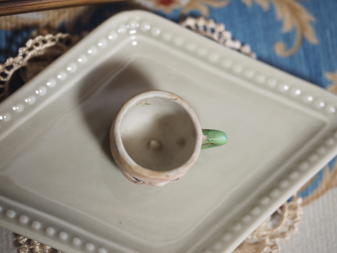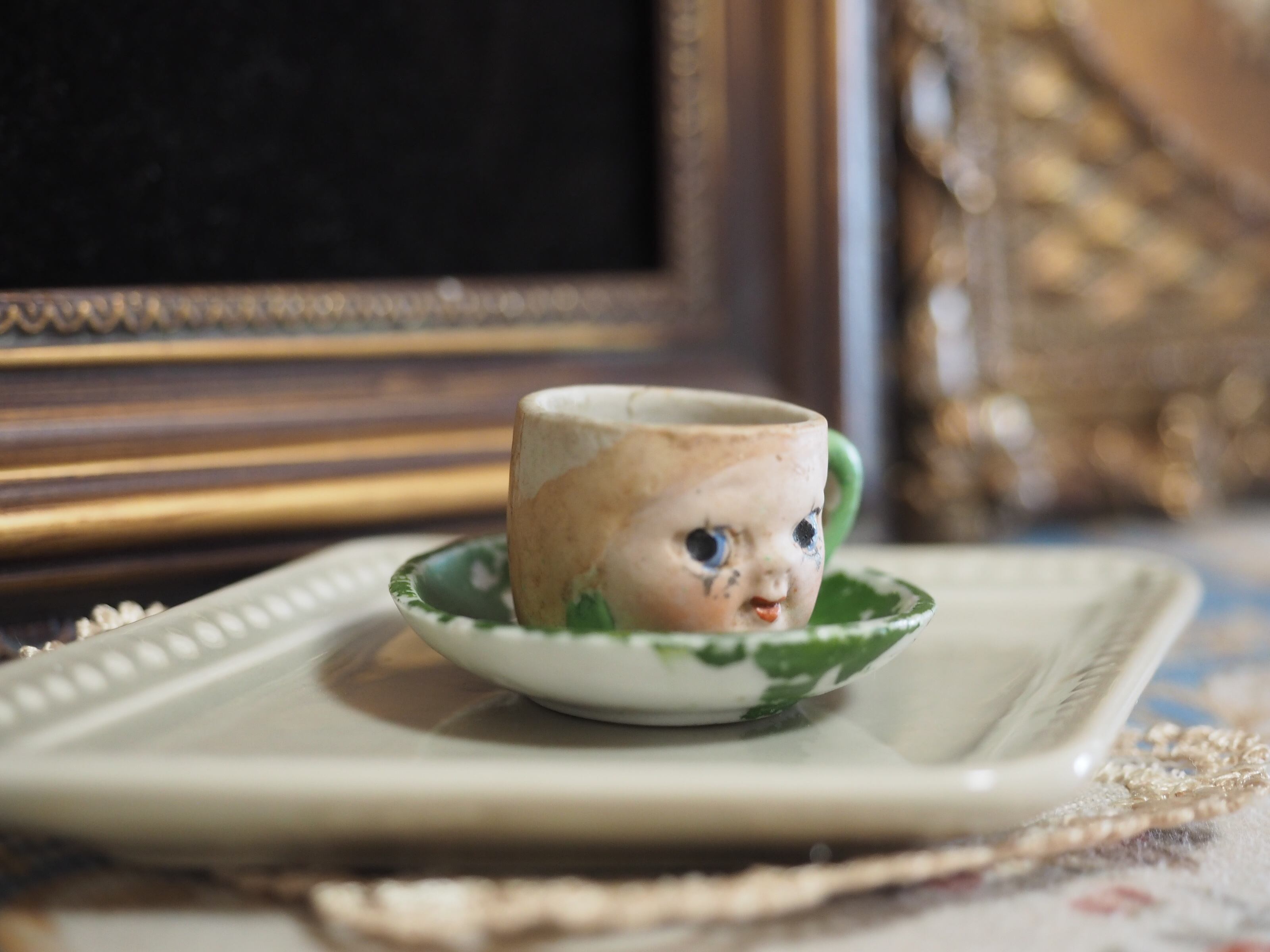 1920年代に日本で製造されたフェイスデザインのミニチュアティーセットのうち、こちらはカップ&ソーサー(C)です。
