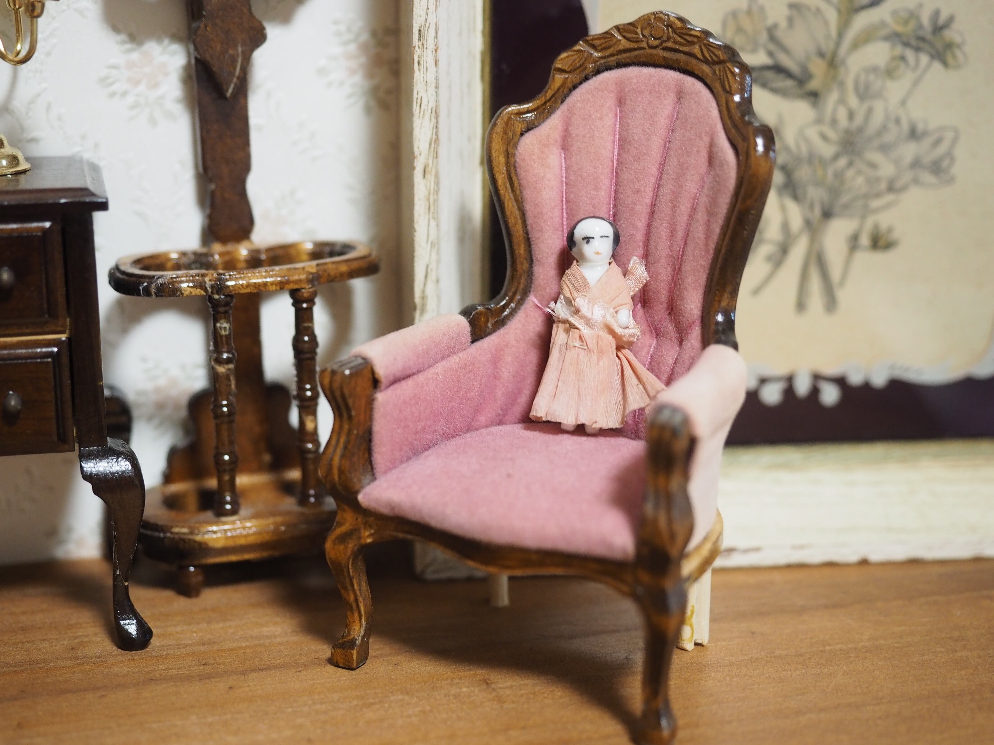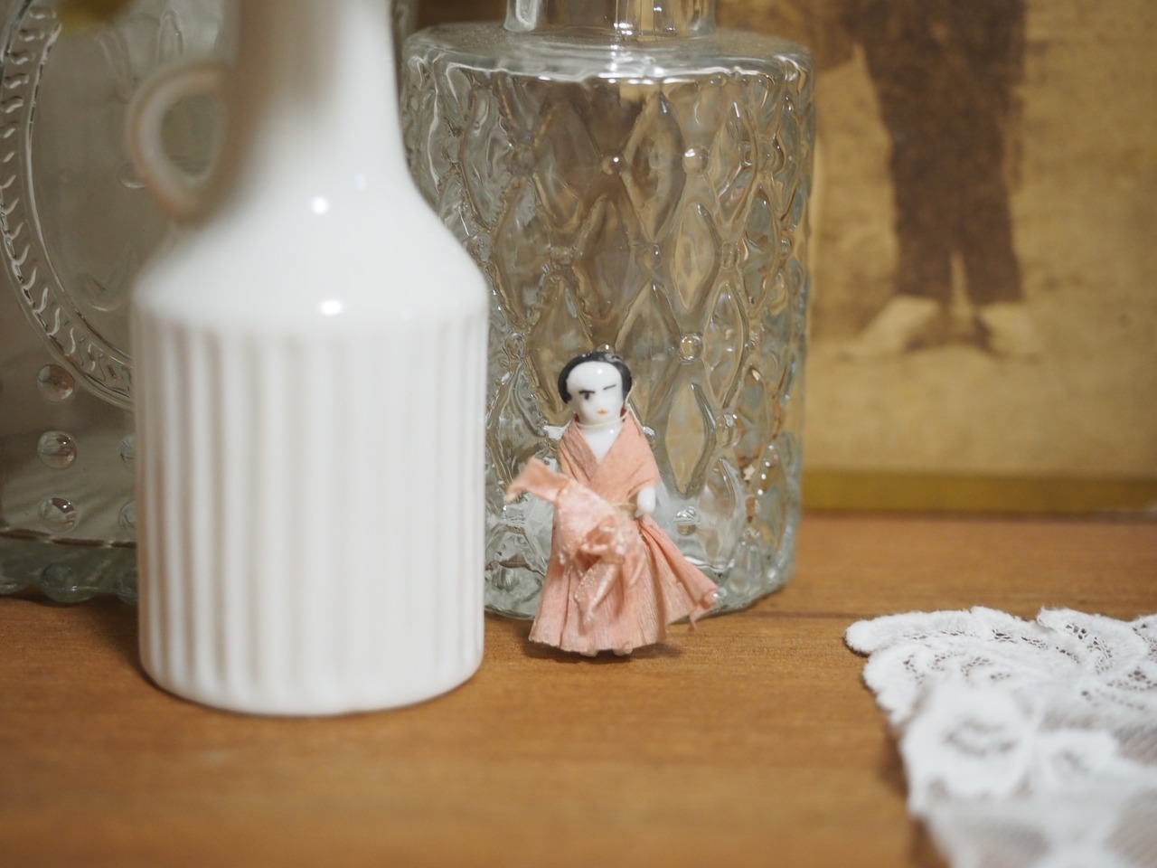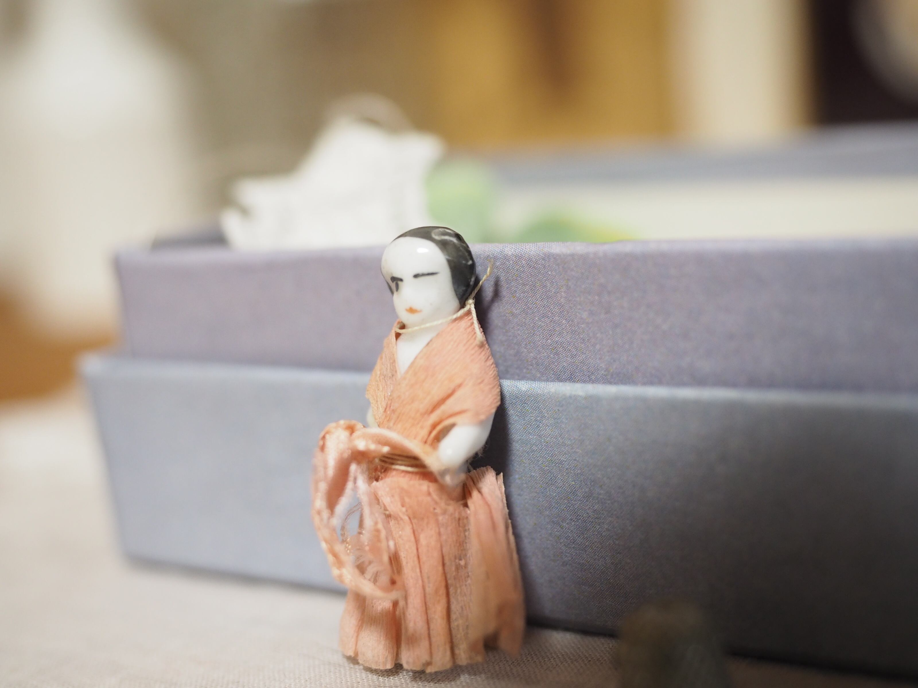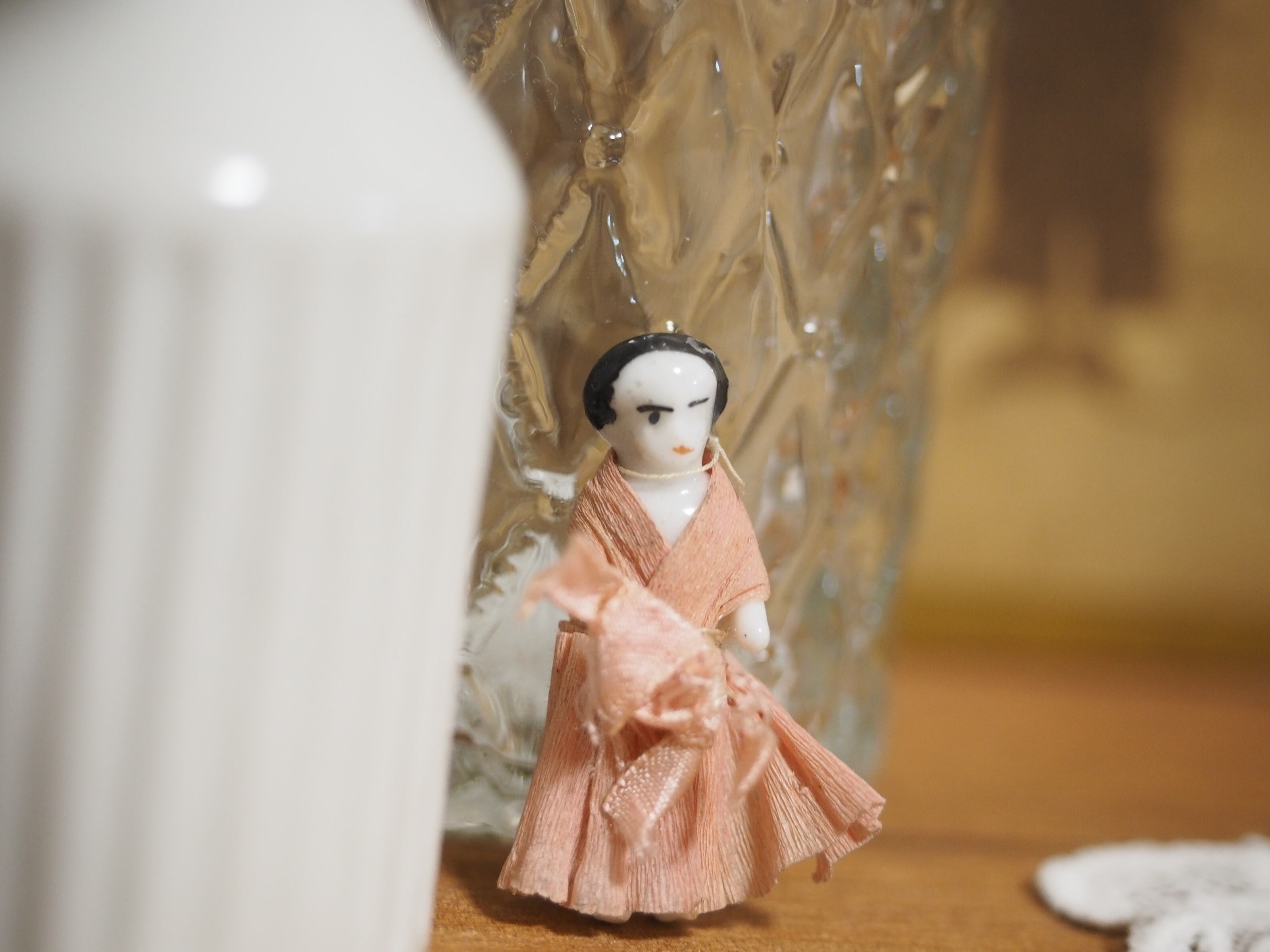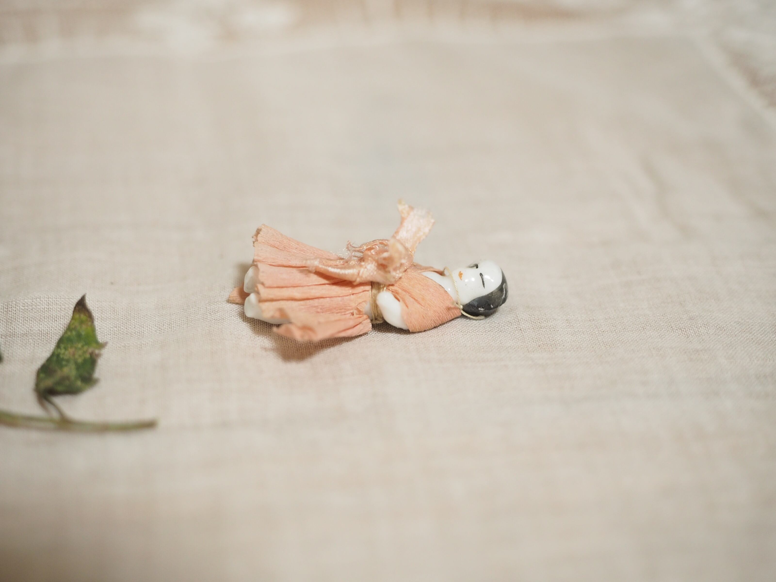 小さなドールは眉、瞳、リップも描かれていますが残念ながら左目ペイントがありません。