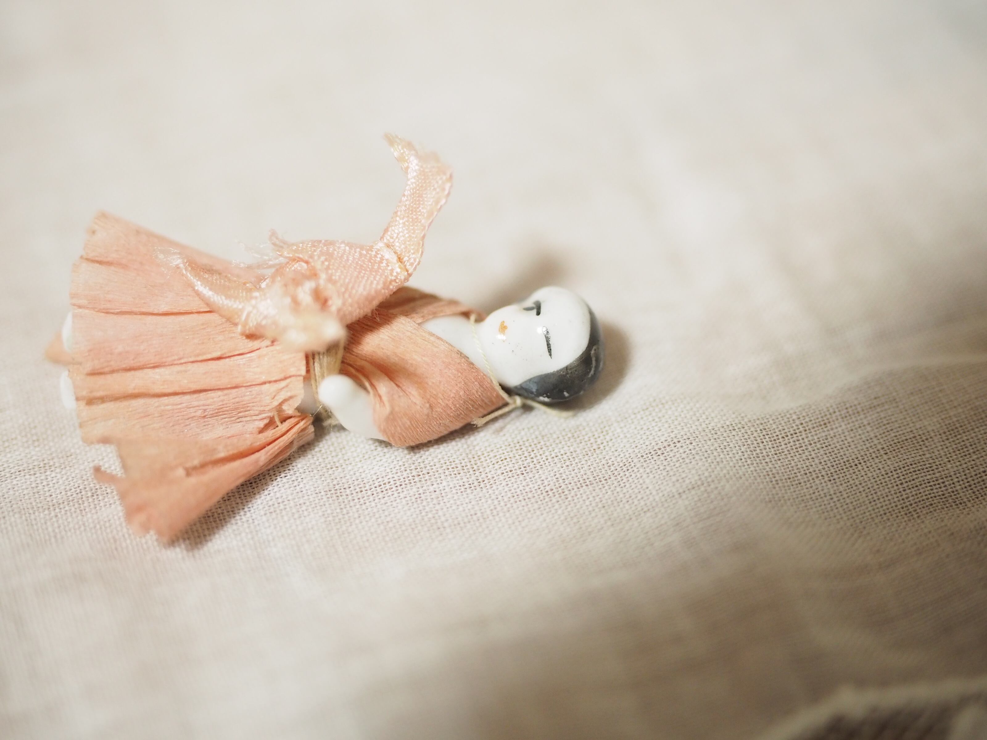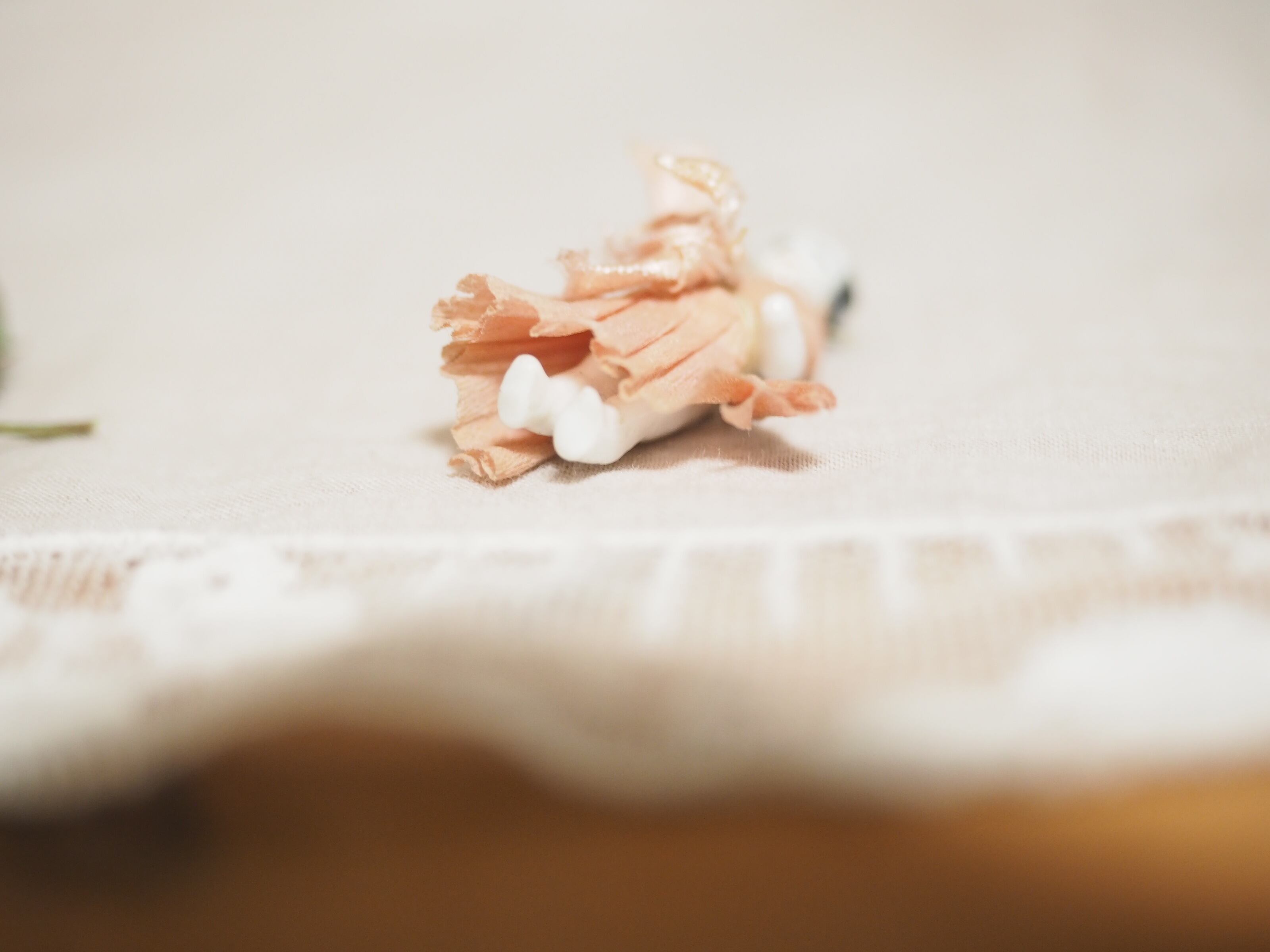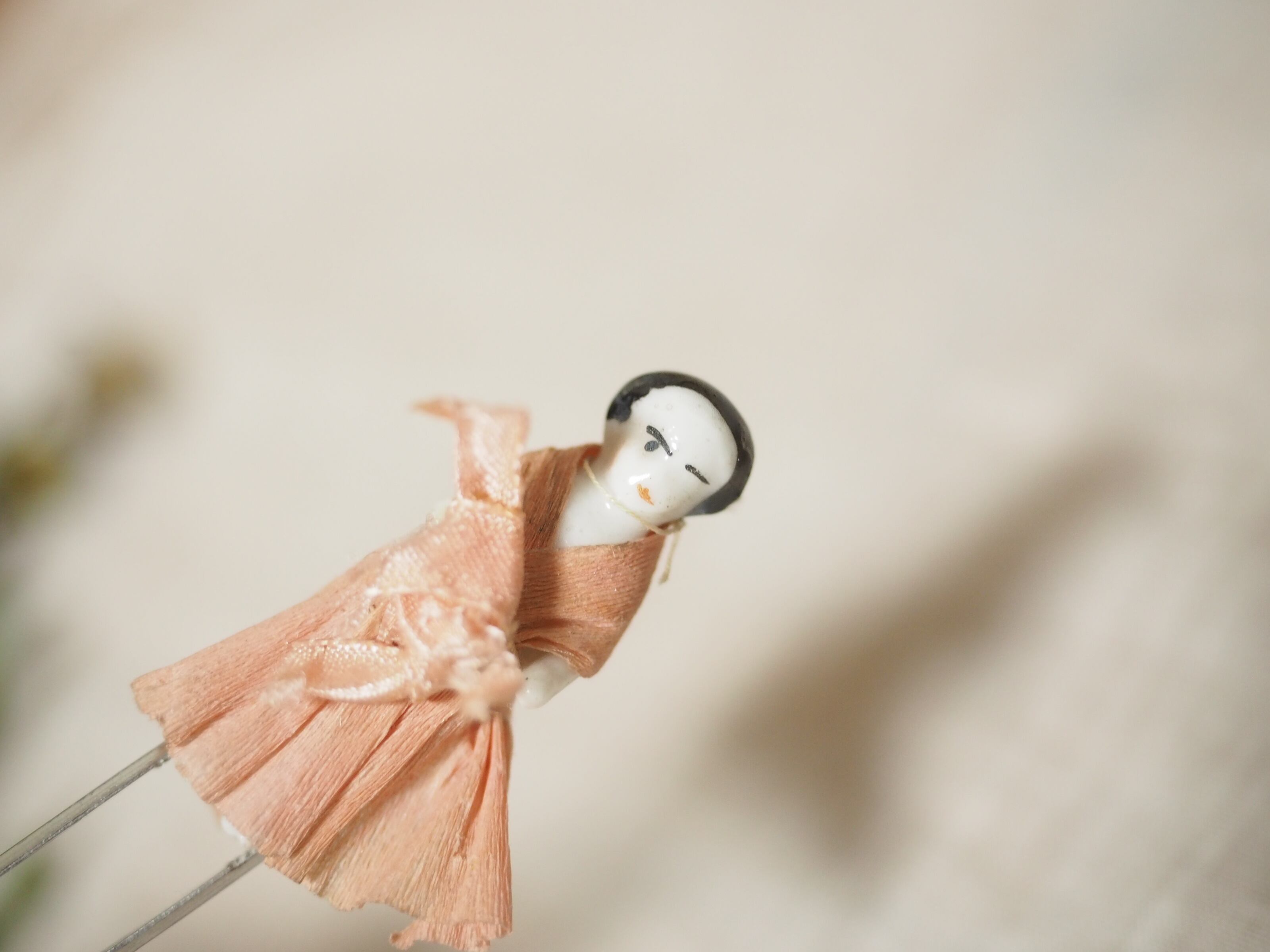 クレープ紙は小さなドールにくるっと巻かれたような作りですが、スカートにはひだがあり、細やかに作られています。