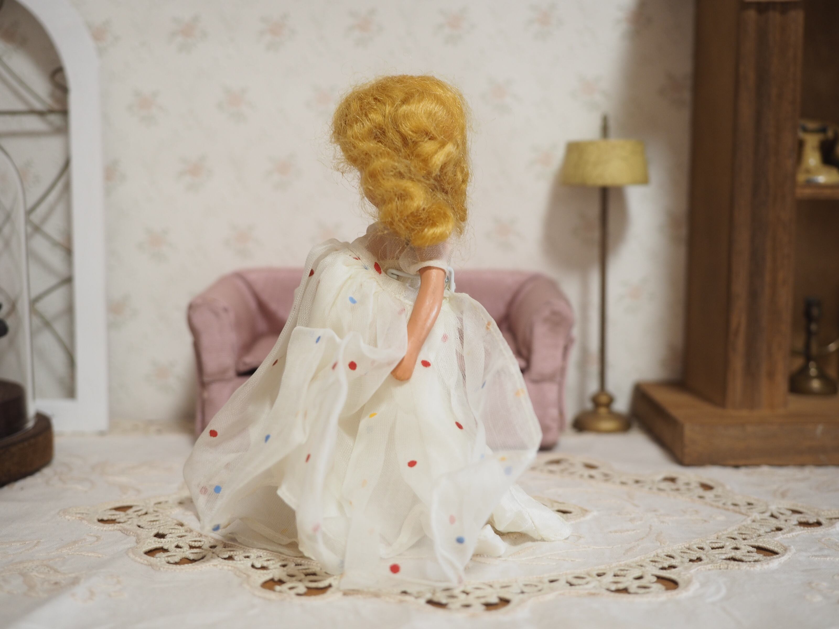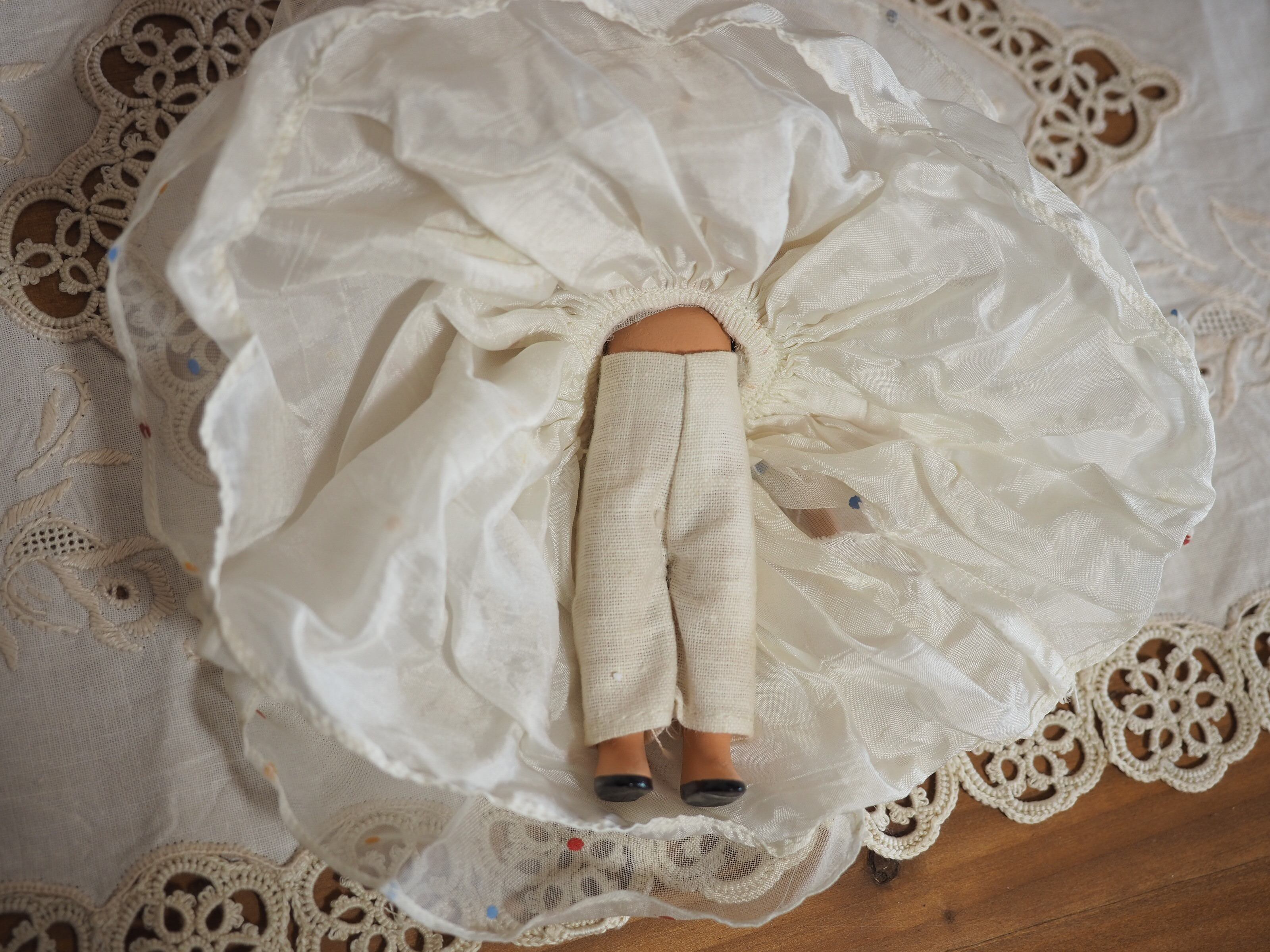 こちらのナンシーアンはドレスが安全ピンで留められており、スナップボタンの子よりも古いタイプです。