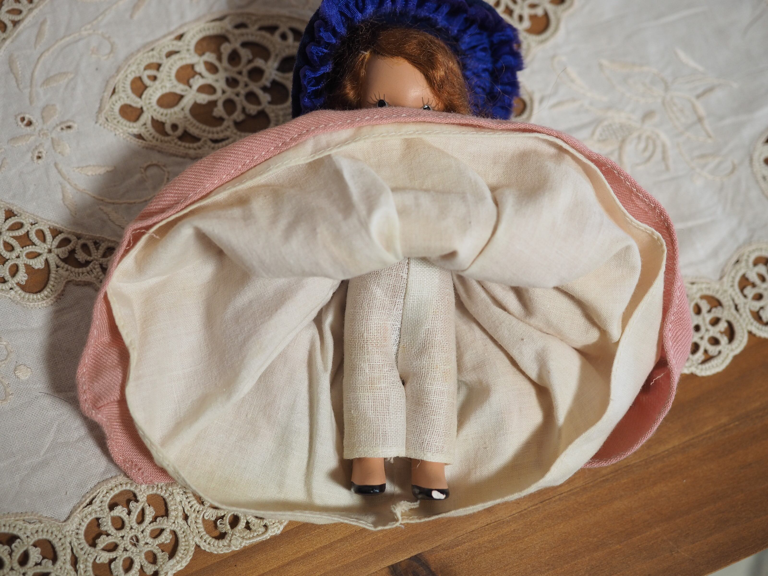 こちらのナンシーアンはドレスが安全ピンで留められており、スナップボタンの子よりも古いタイプです。