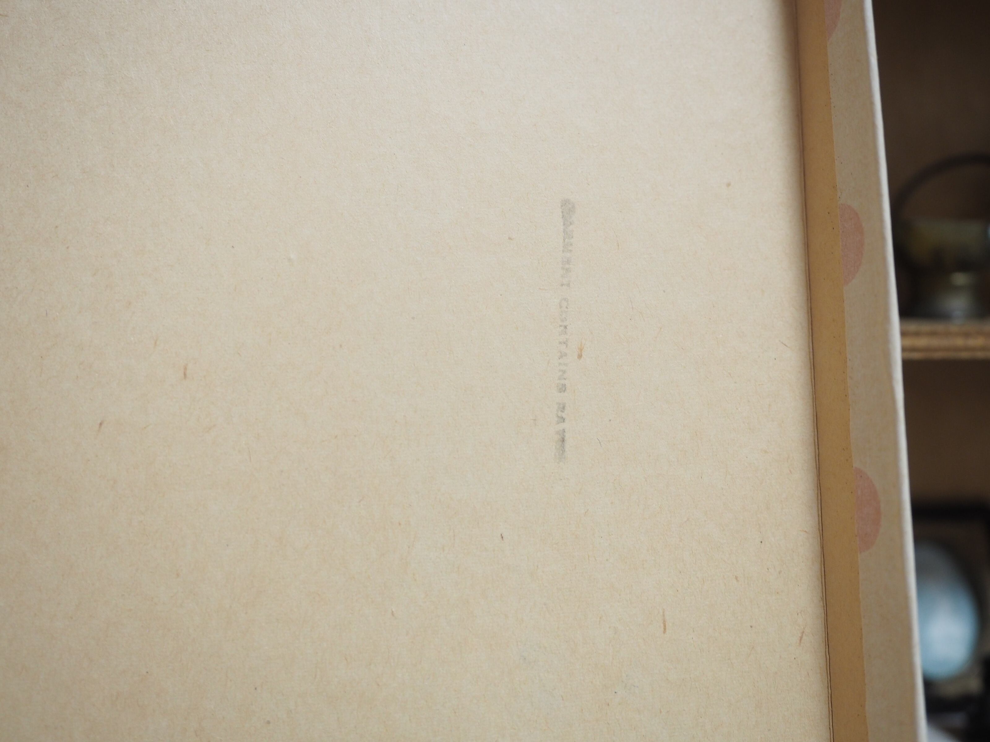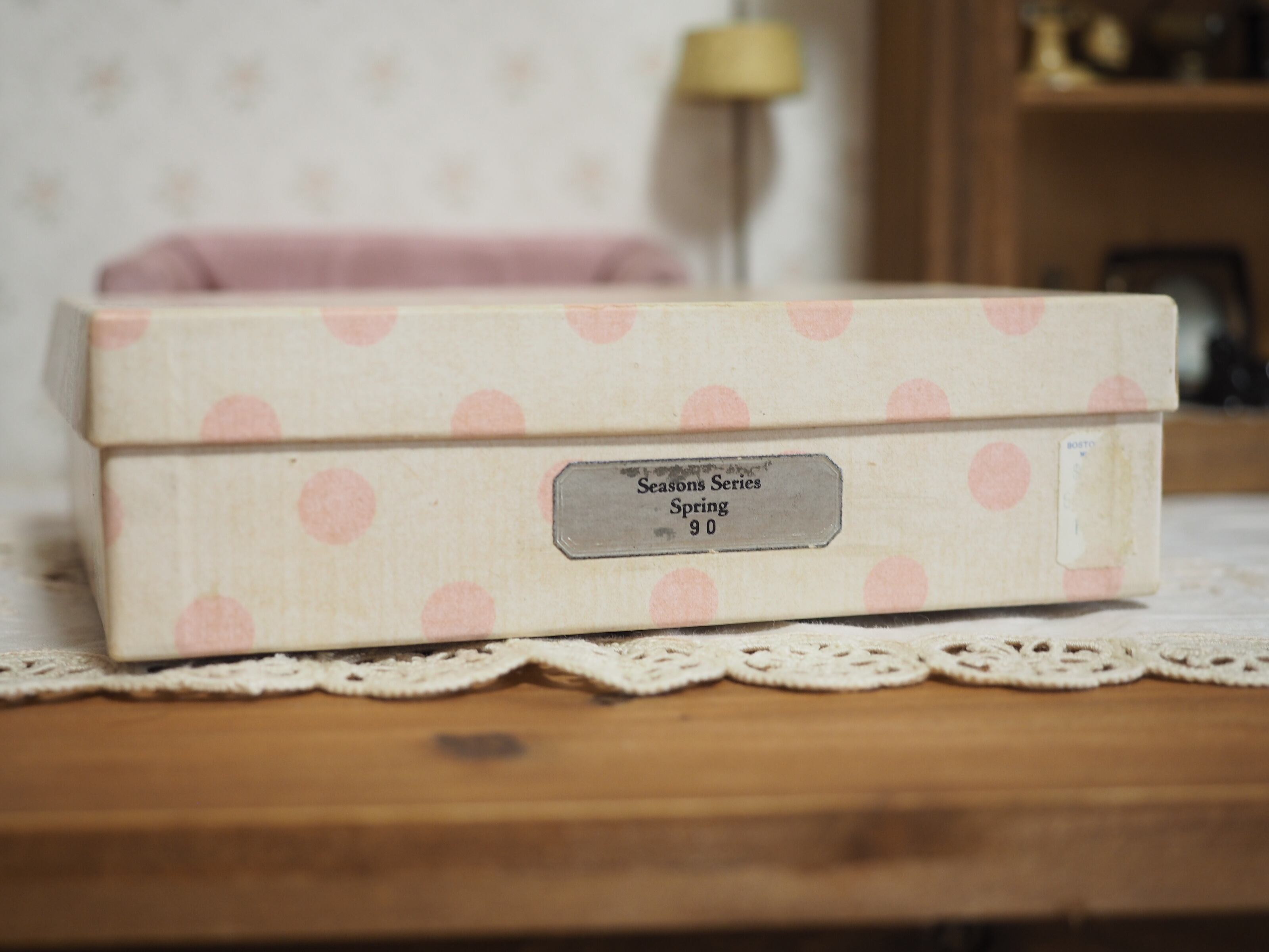 淡い水玉模様が素敵なオリジナルの箱付きです。箱も70年以上前のもので傷み、変色がございます。