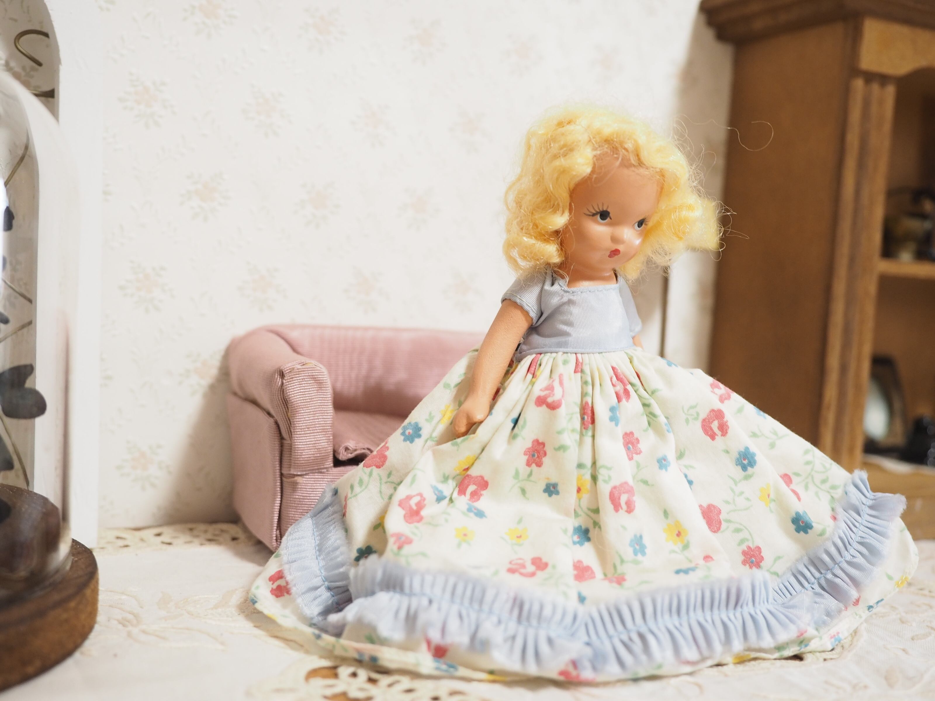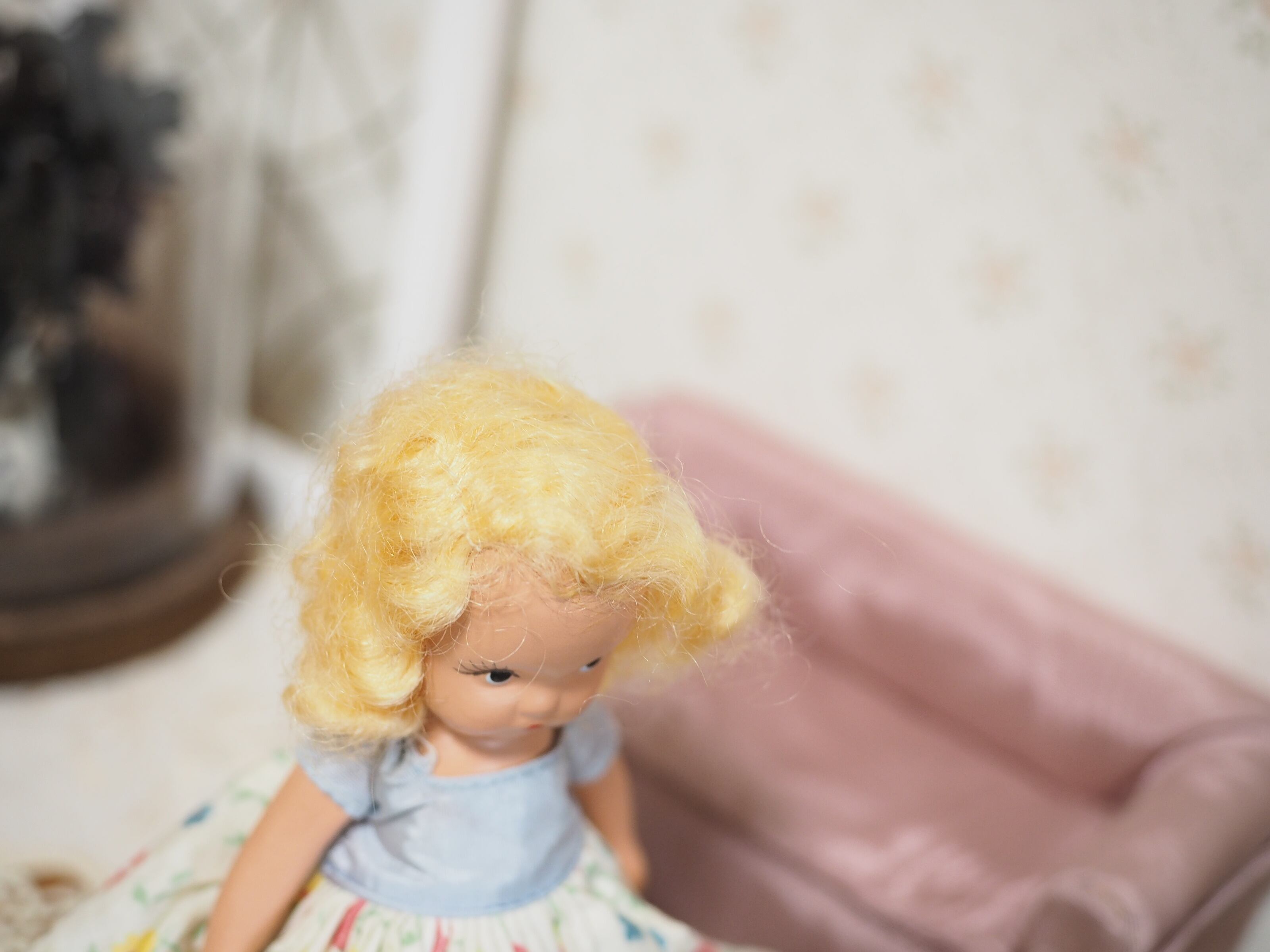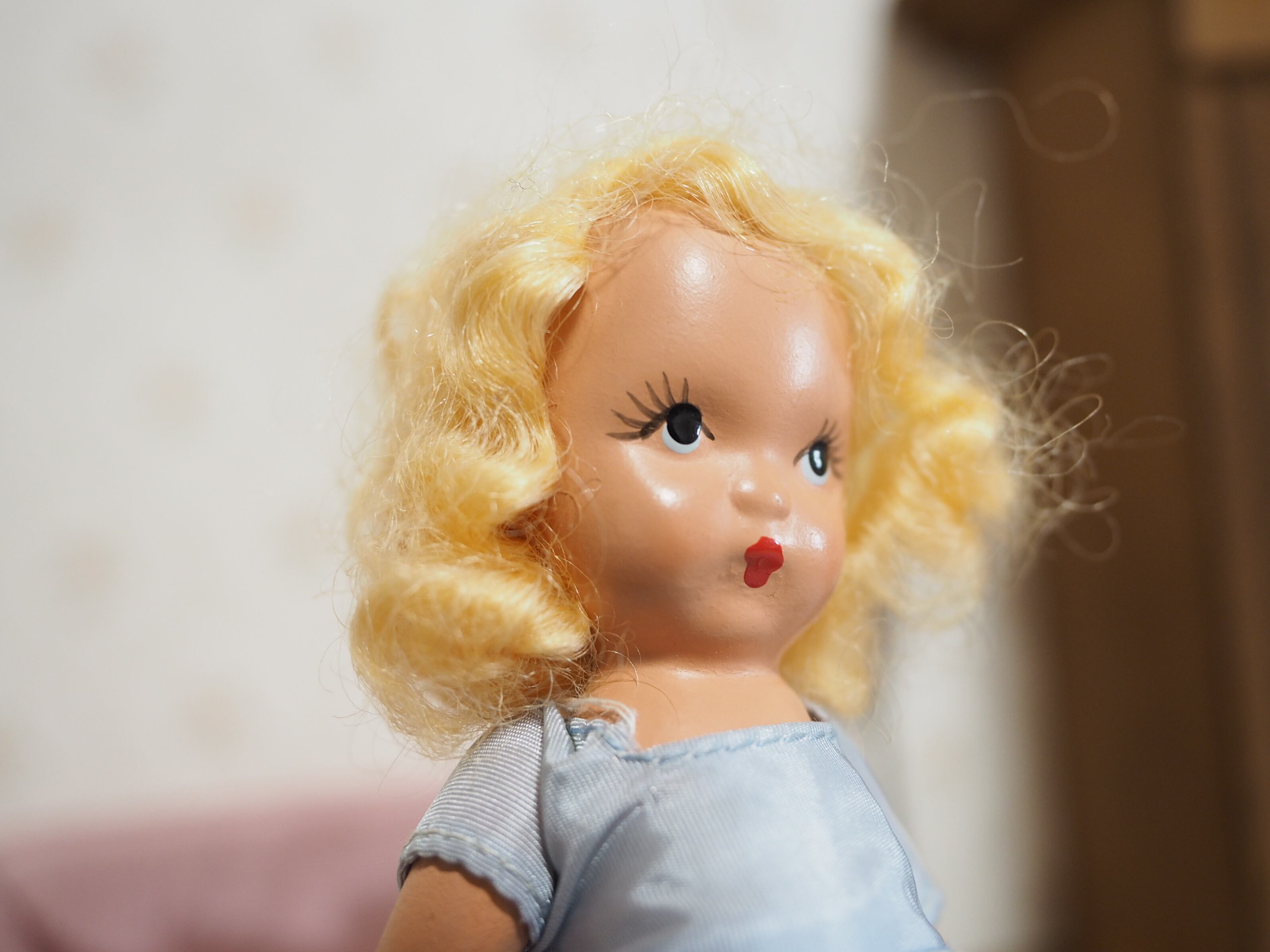 こちらのナンシーアンはドレスが安全ピンで留められており、スナップボタンの子よりも古いタイプです。