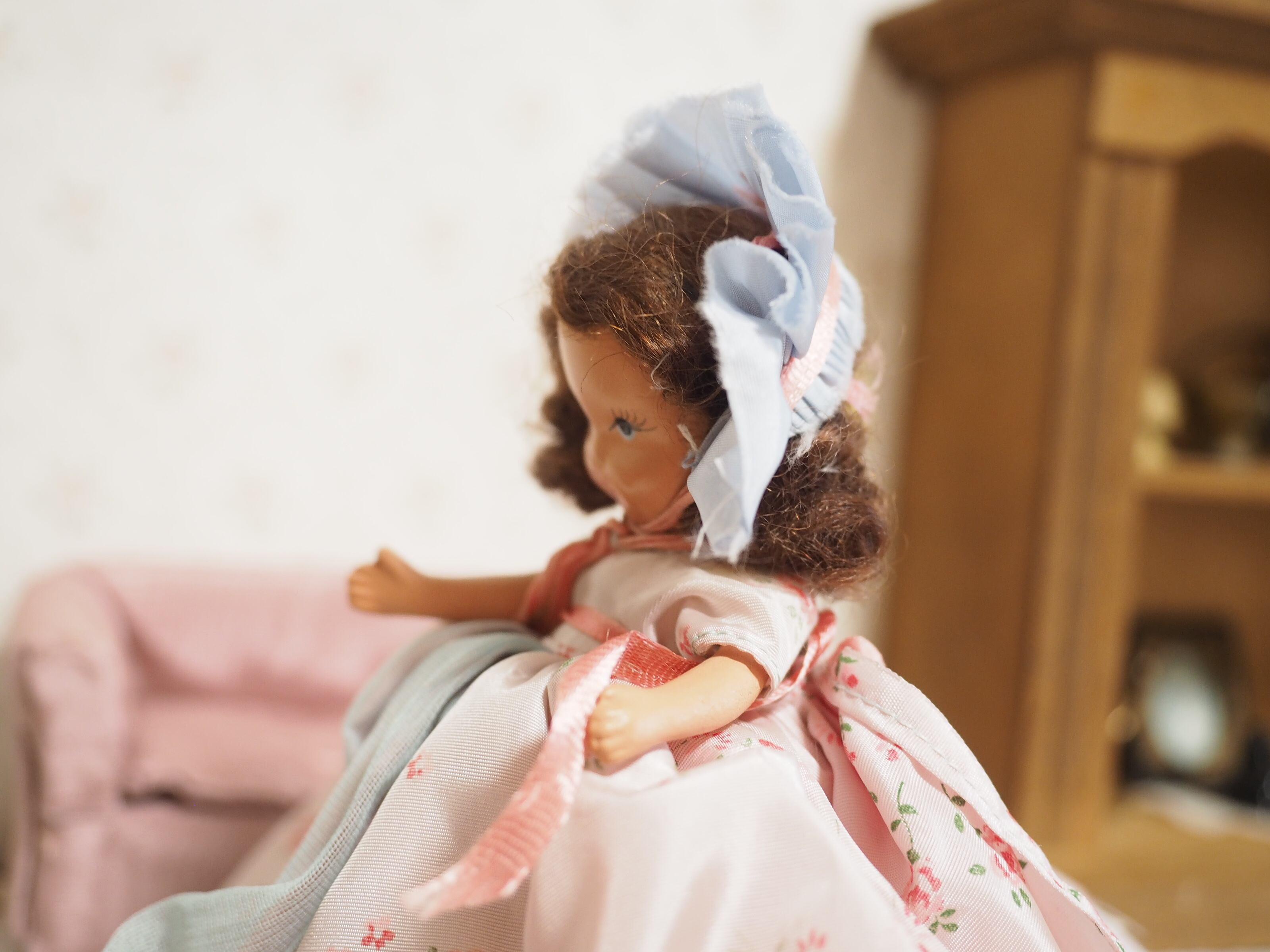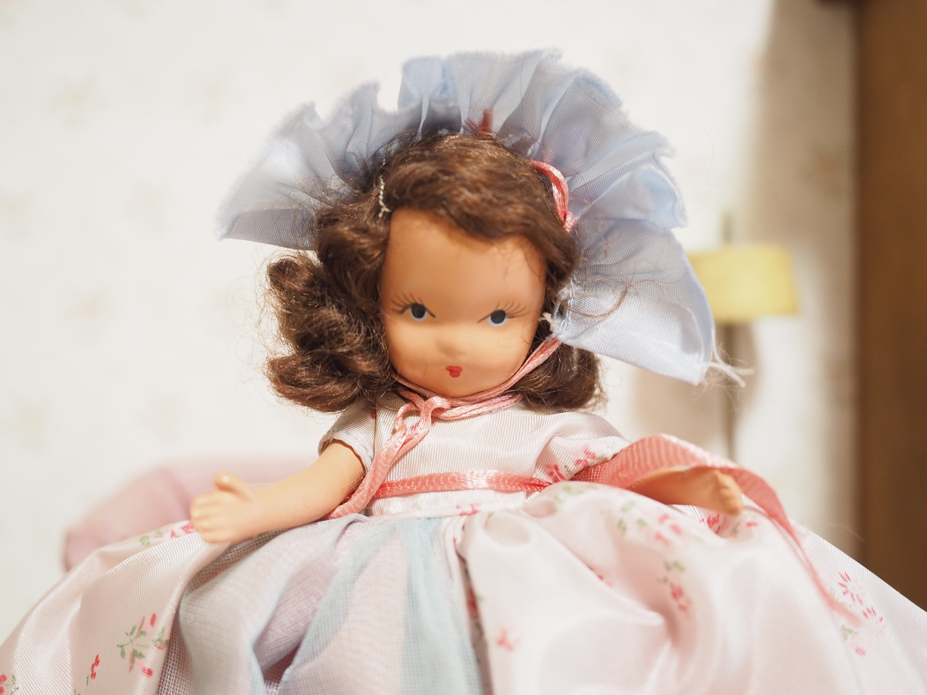 こちらのナンシーアンはドレスが安全ピンで留められており、スナップボタンの子よりも古いタイプです。