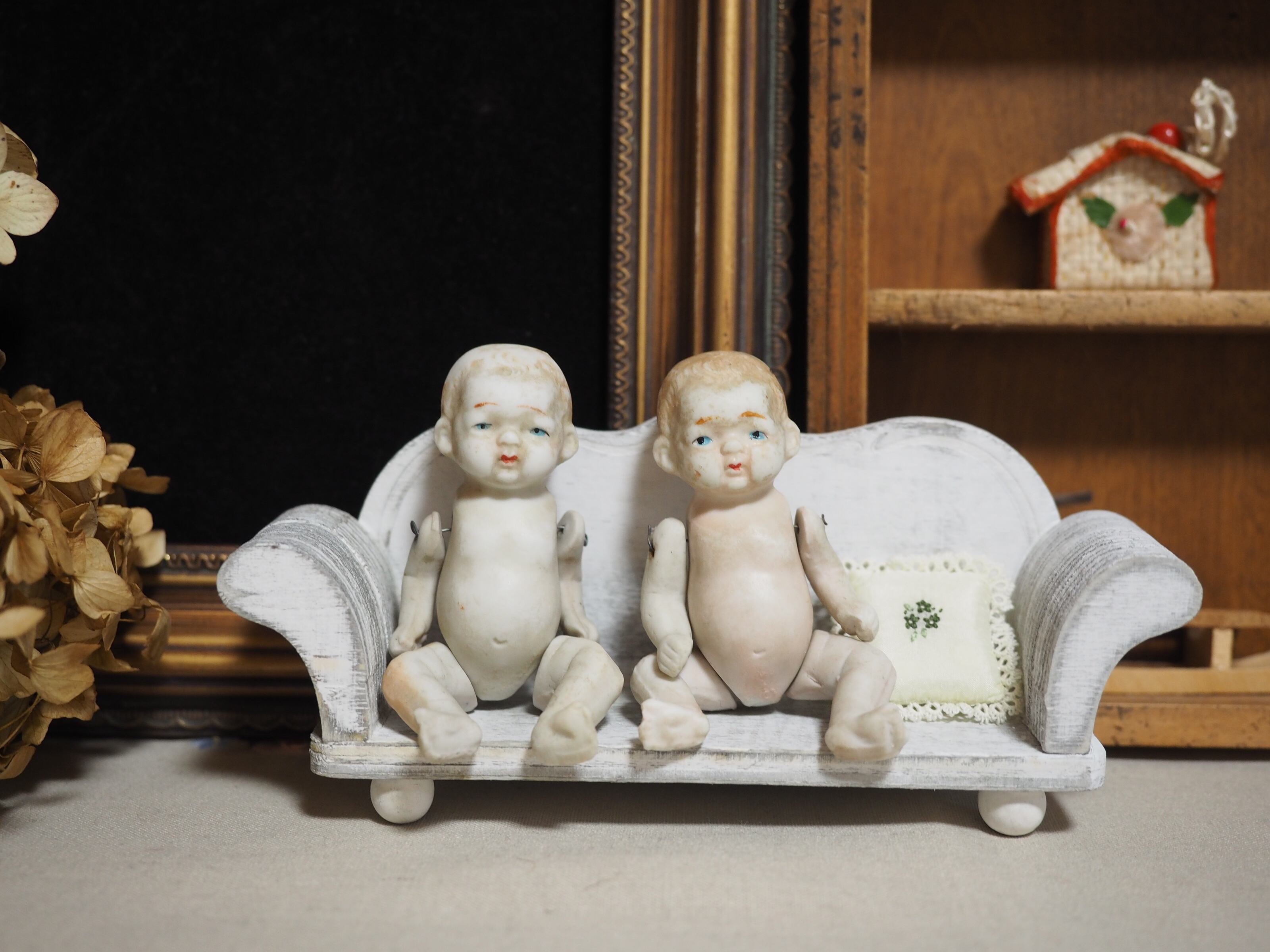 そっくりな姿に青い目が素敵な男の子ドール2体セットです。