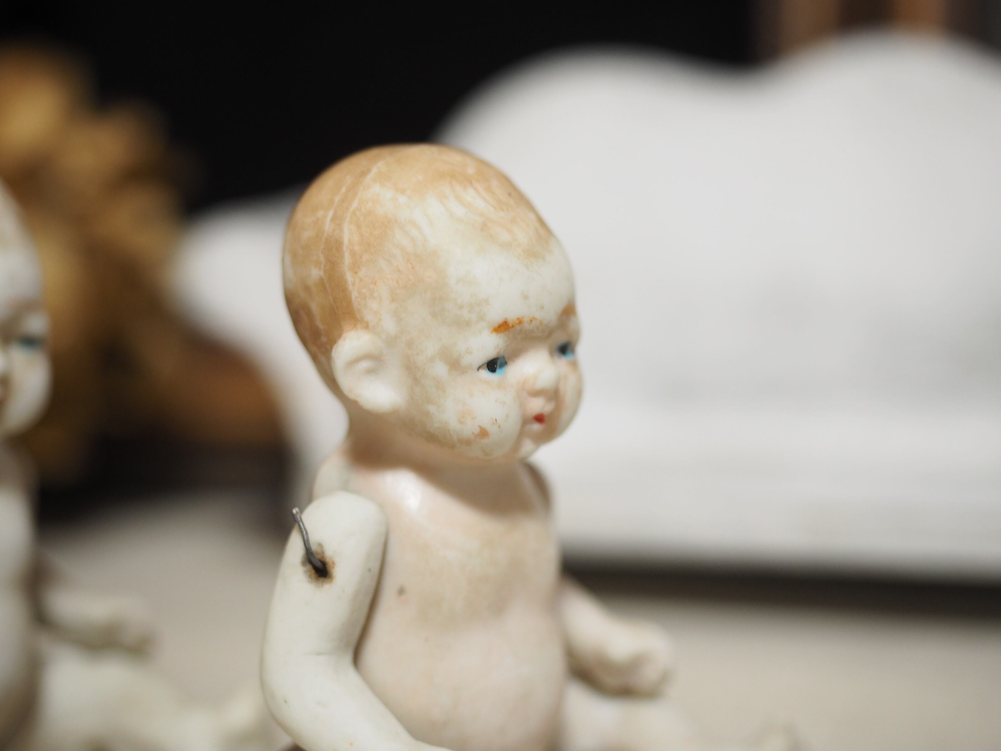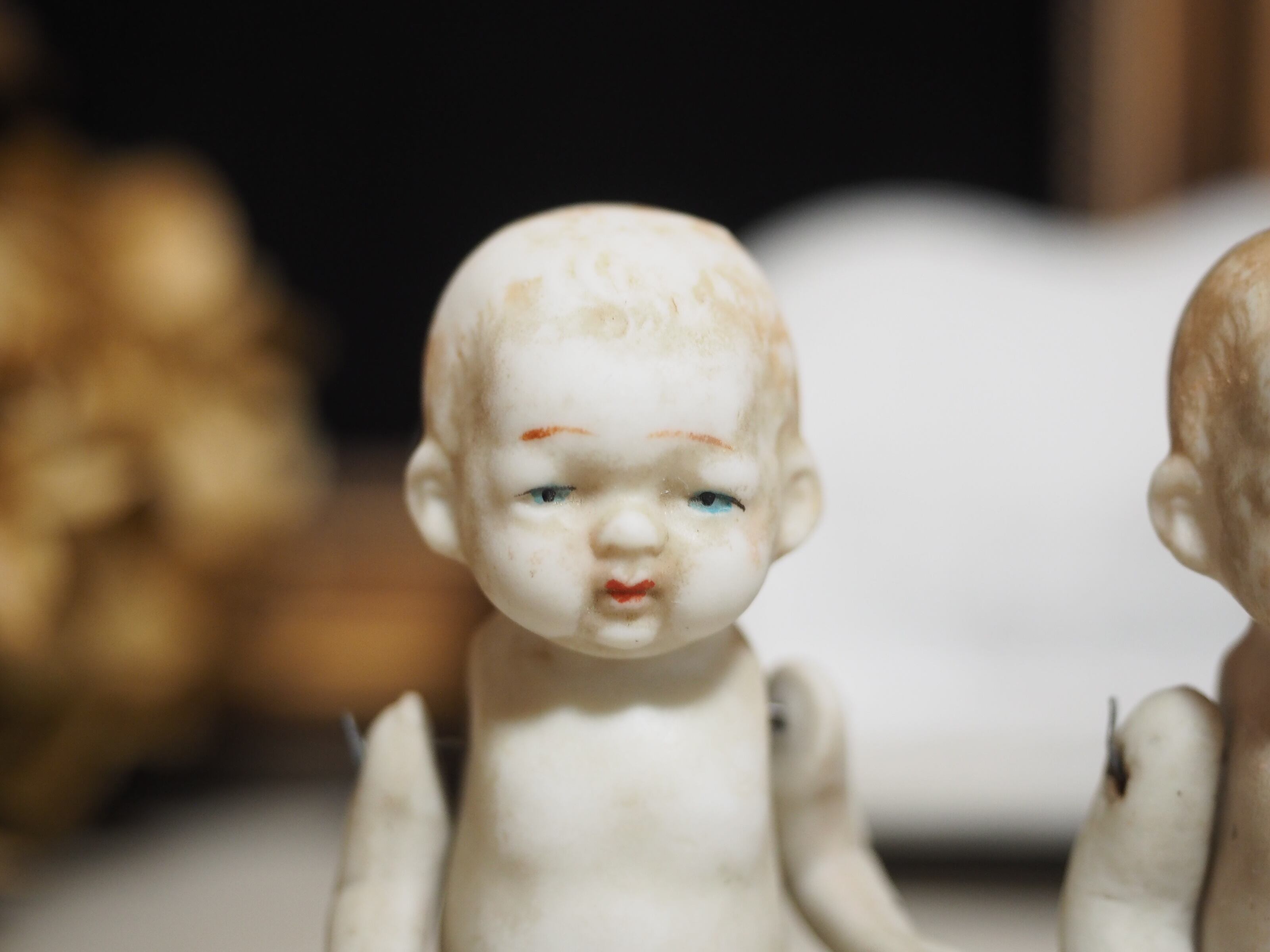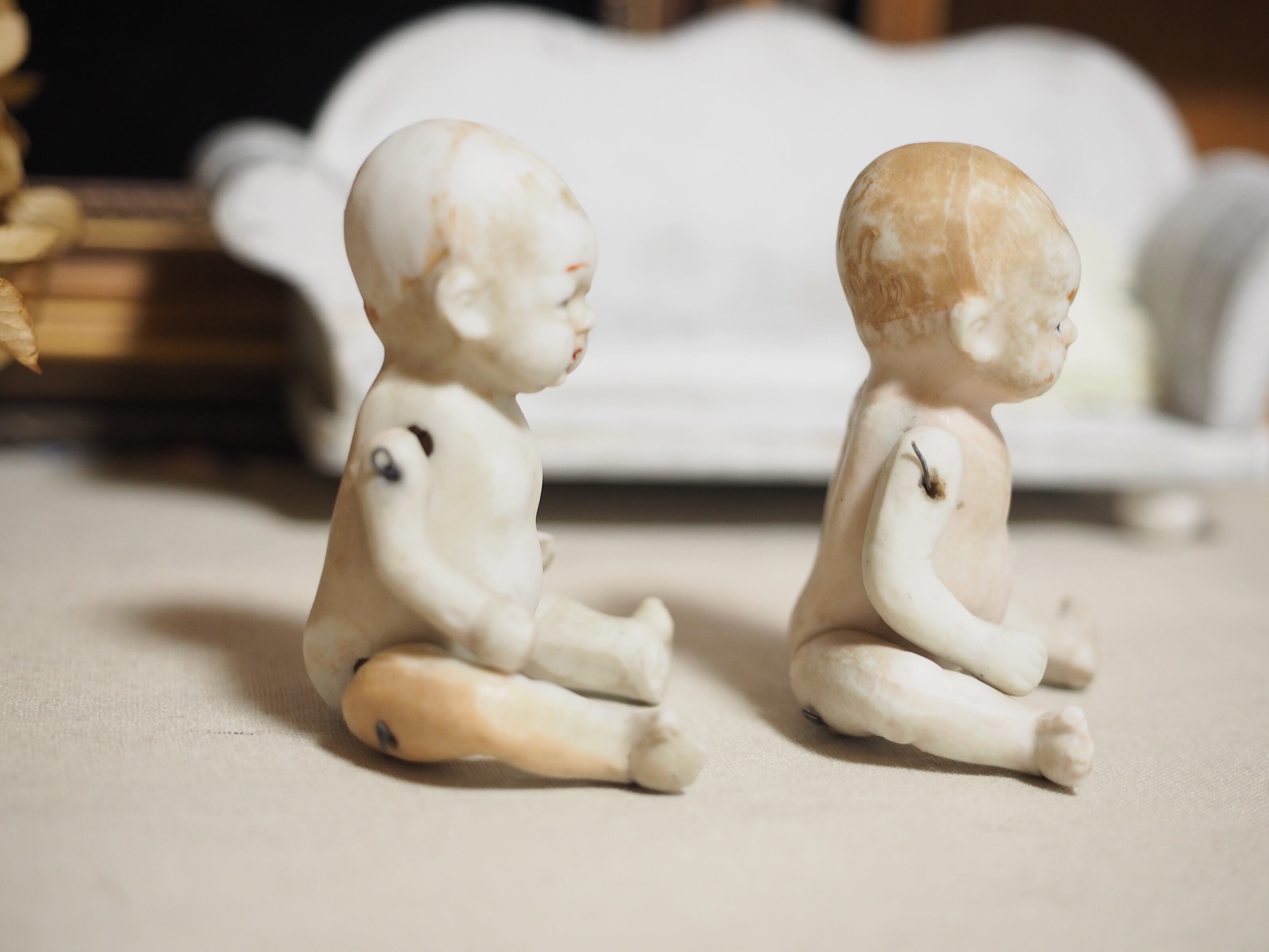 右の男の子の右脚付け根後ろ側に小さな欠けがあります。