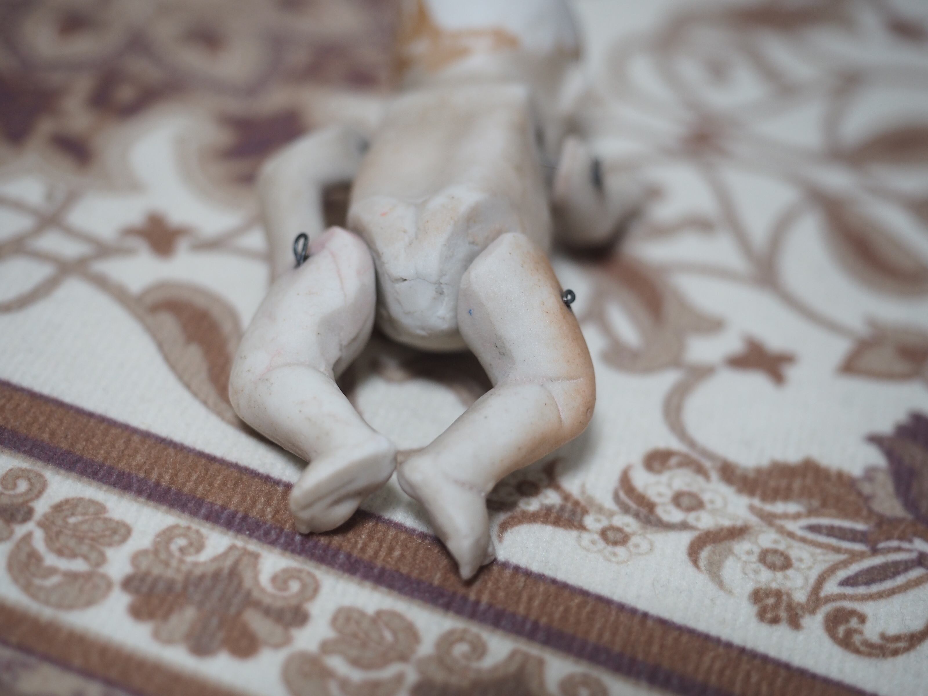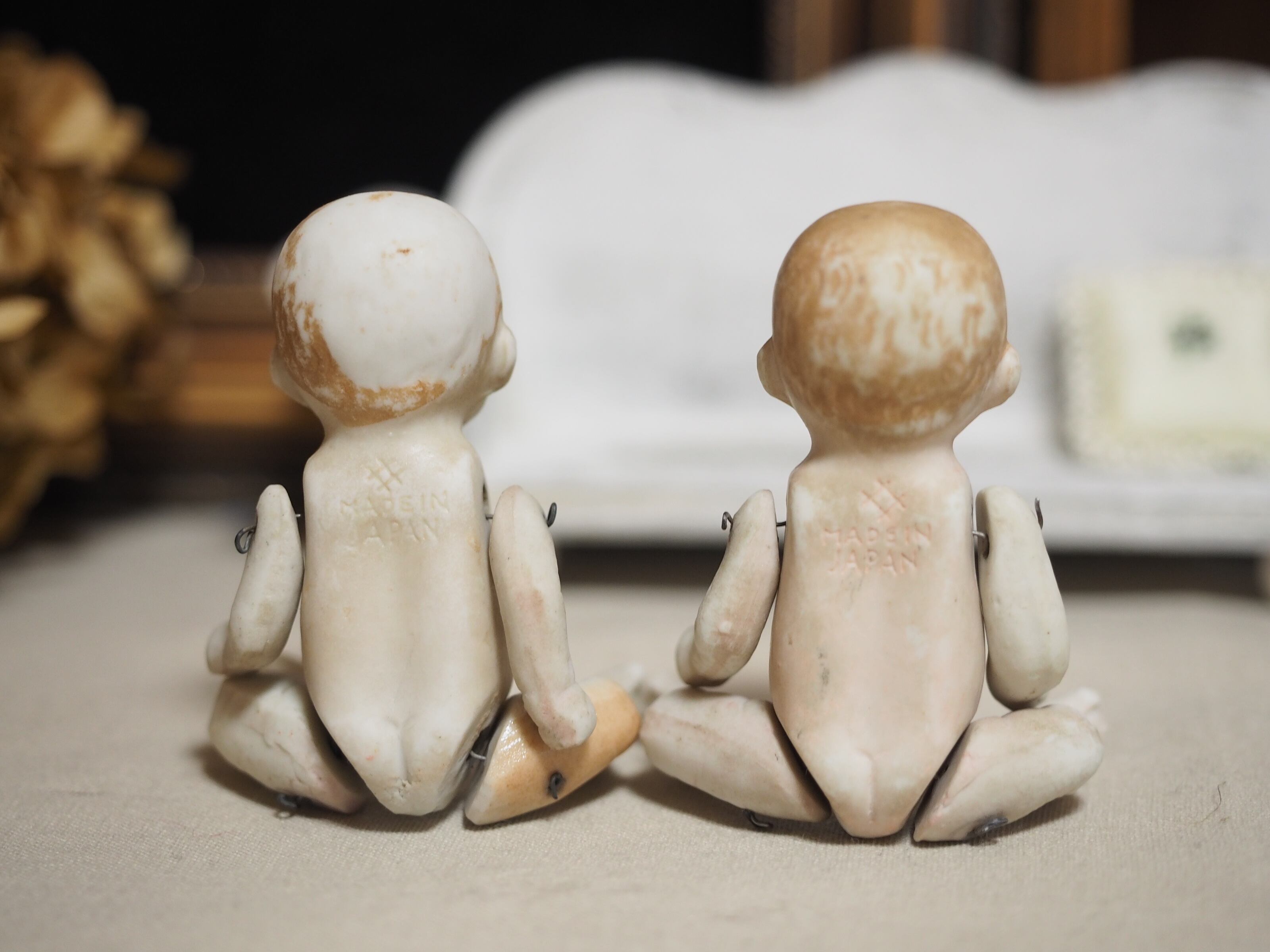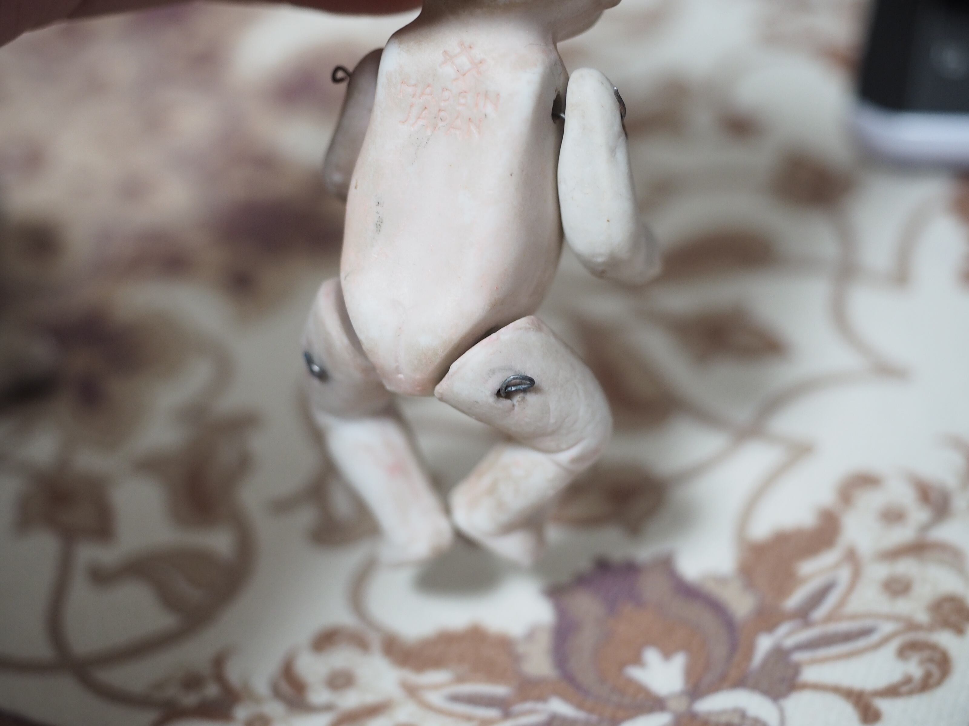 背中にひし形のメーカーマーク、MADE IN JAPAN 刻印、古い時代の四つ活人形